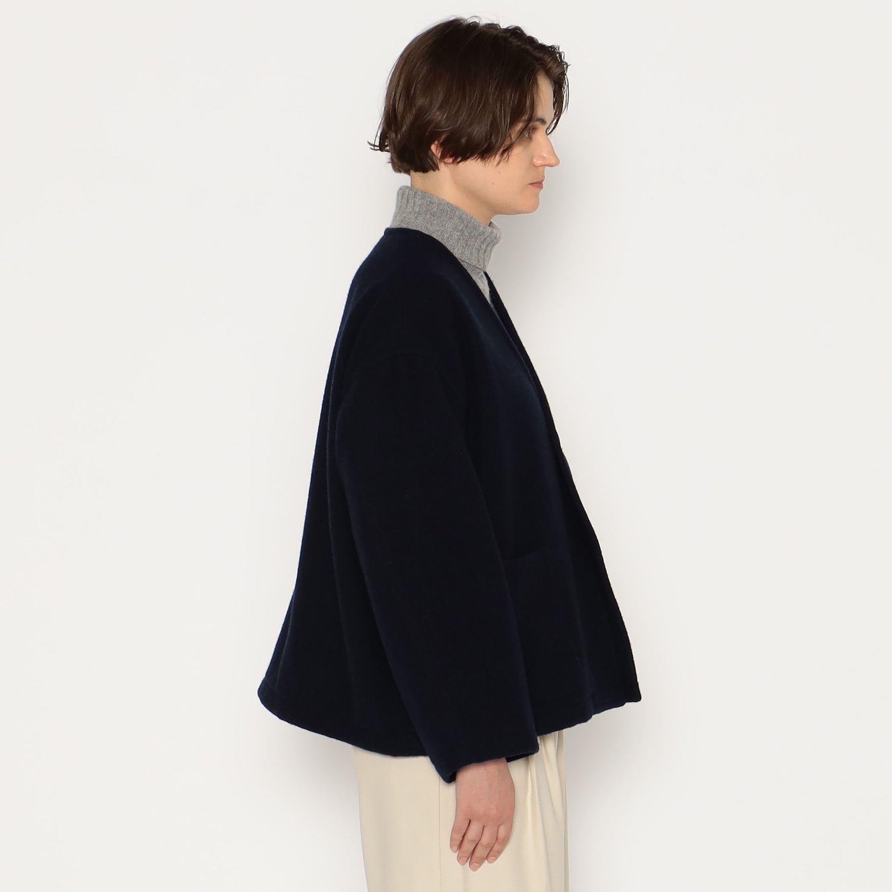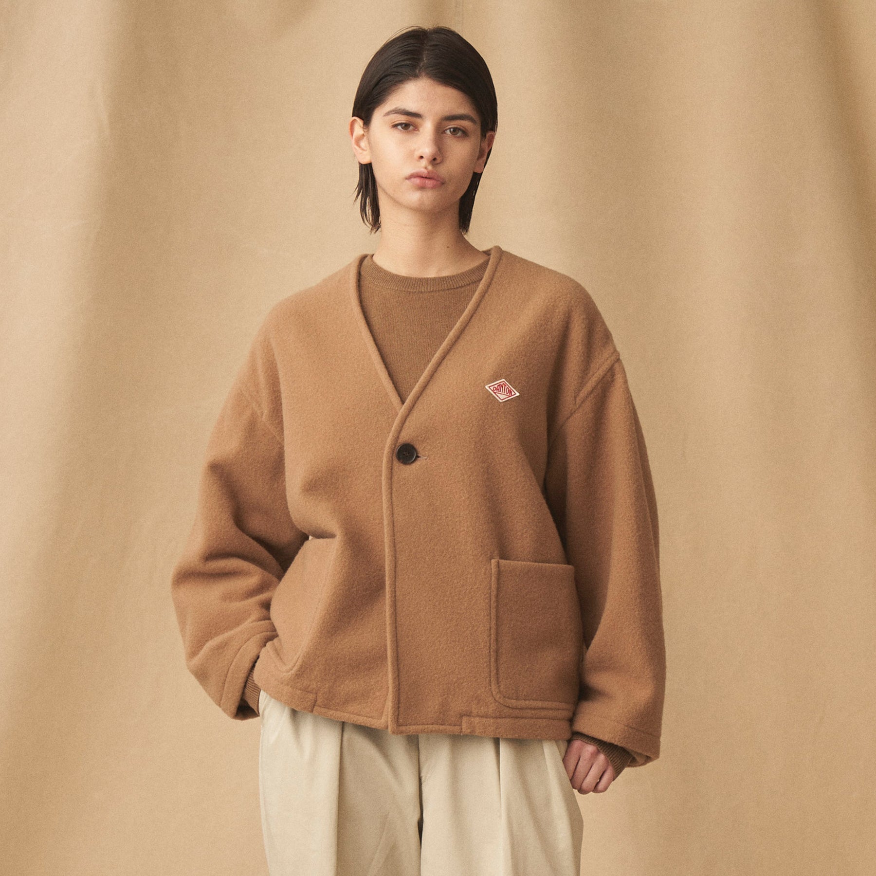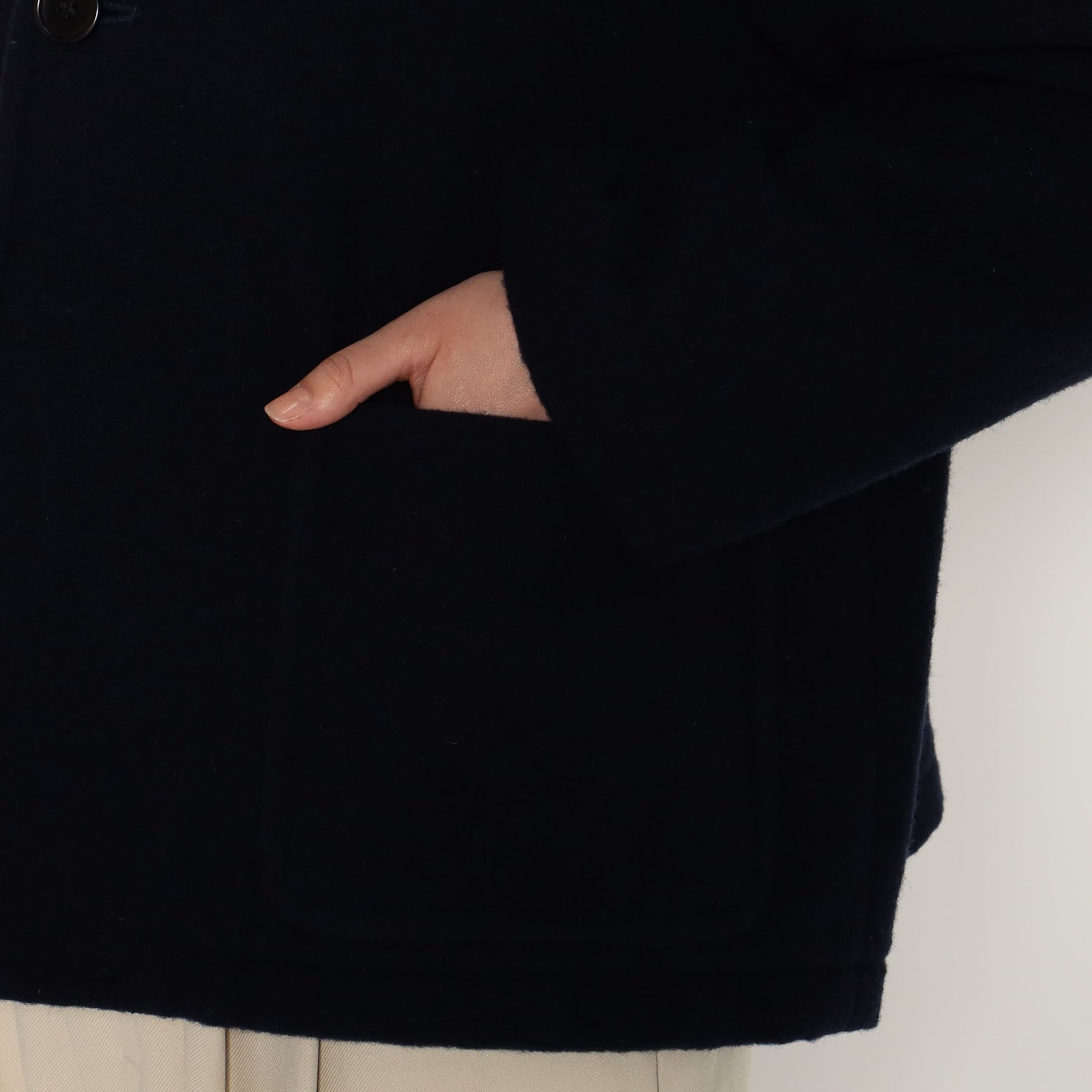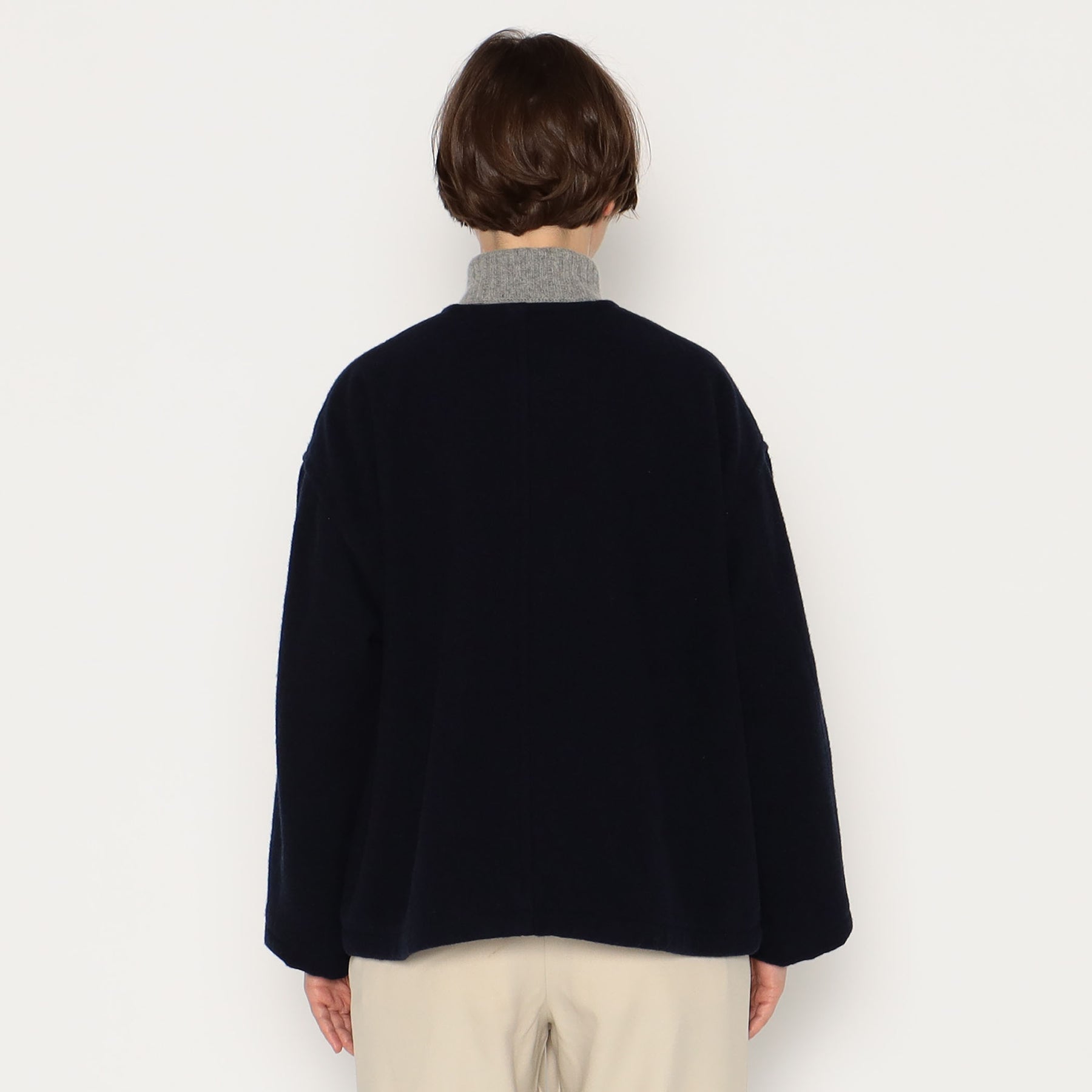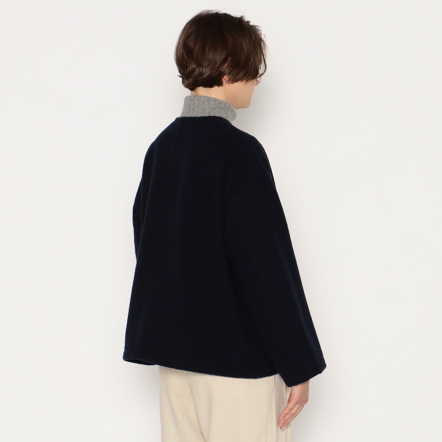 여유로운 핏의 재킷. 도톰한 브러시드 울 소재로 부드러운 핏을 위해 소매는 폴리에스테르 안감을 사용합니다. 전면에 버튼 하나로 심플한 디자인입니다. 양쪽 사이드에 포켓이 있습니다.