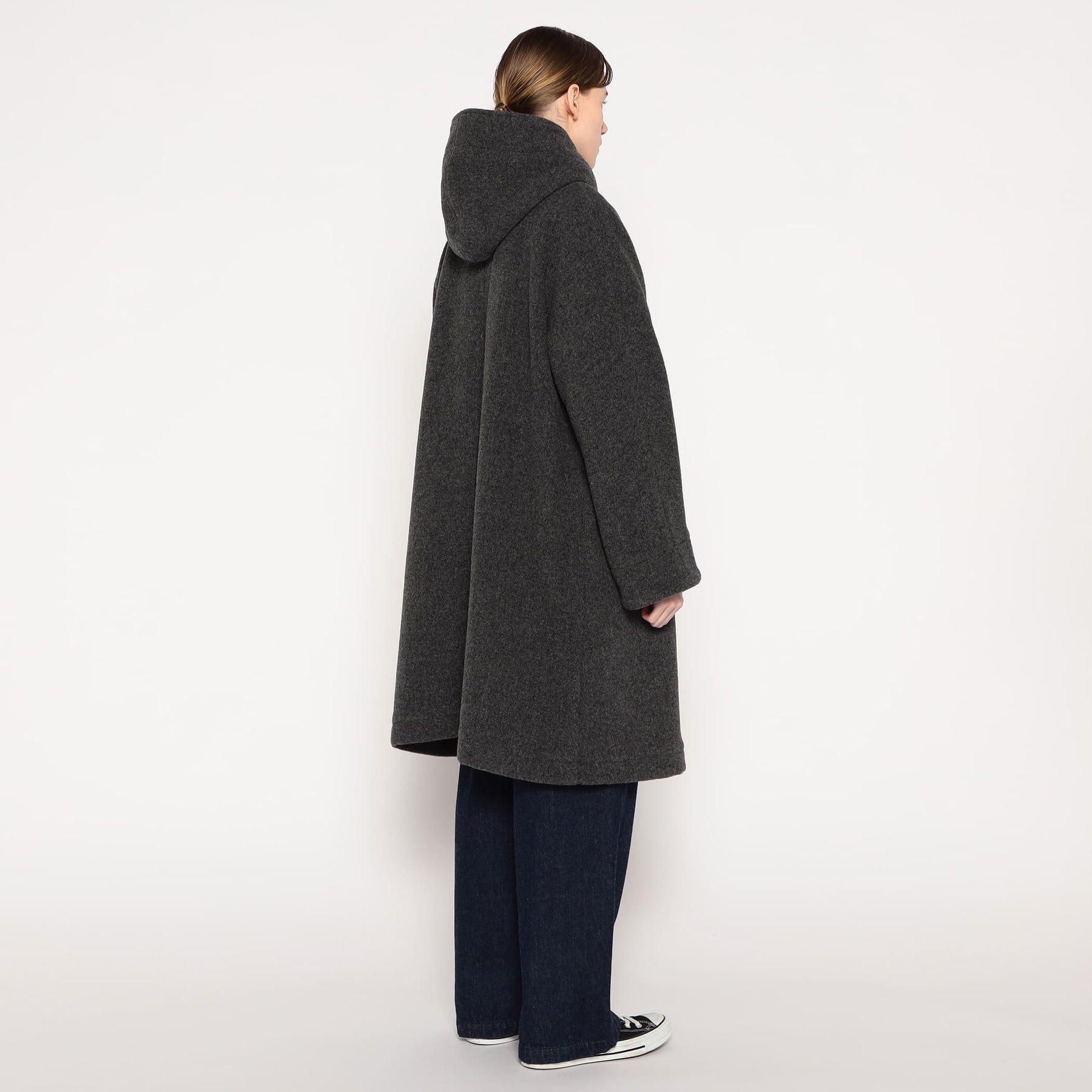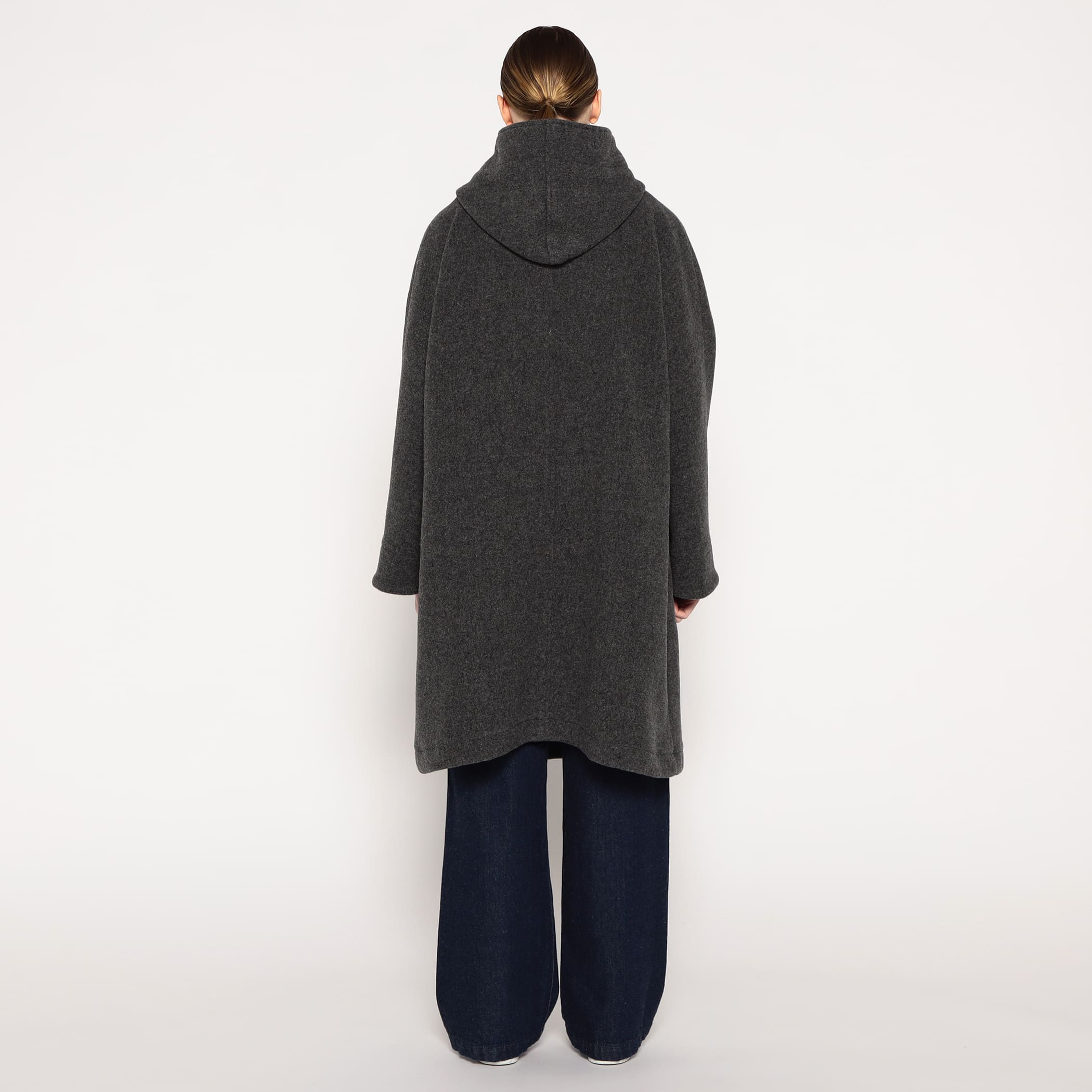 보송보송한 이중 기모 텍스처가 특징인 경량 울 파일 소재의 코트. 여유롭게 떨어지는 바디와 돌먼 슬리브로 편안한 착용감입니다.