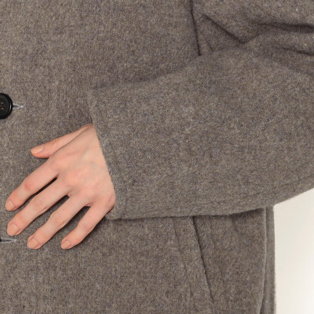 플러시 질감의 양면 블러셔 울 모슬린 원단으로 제작되었습니다.