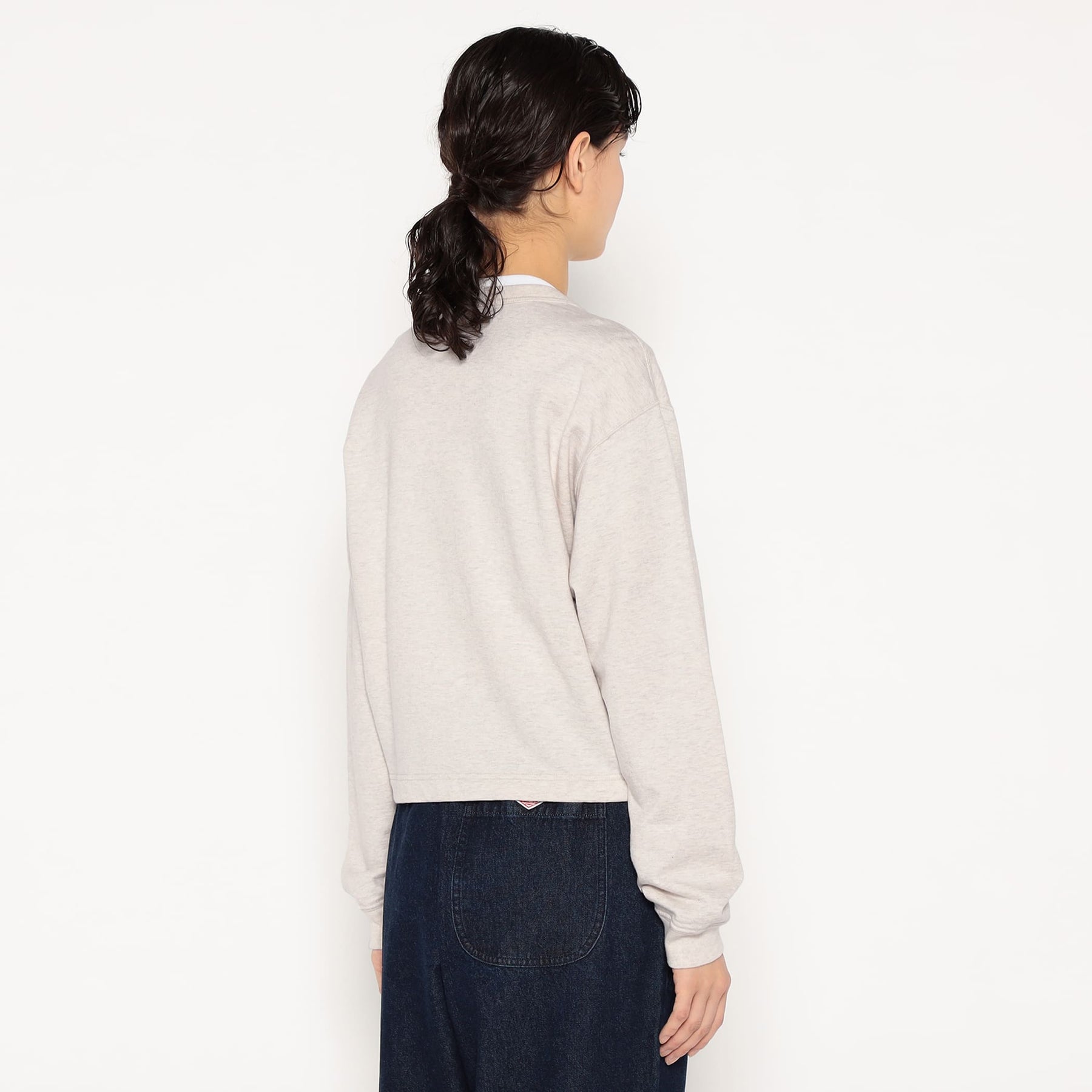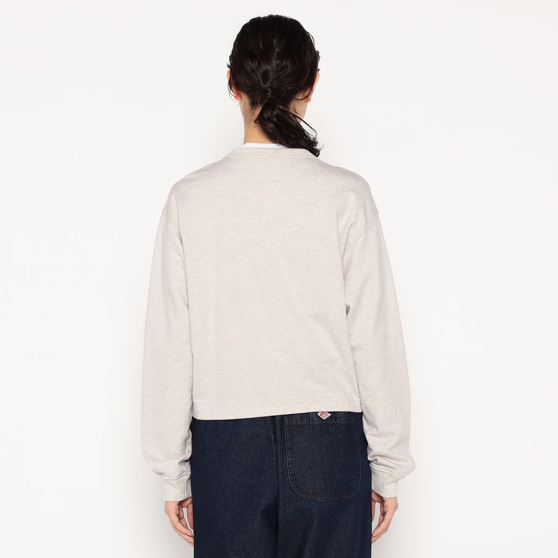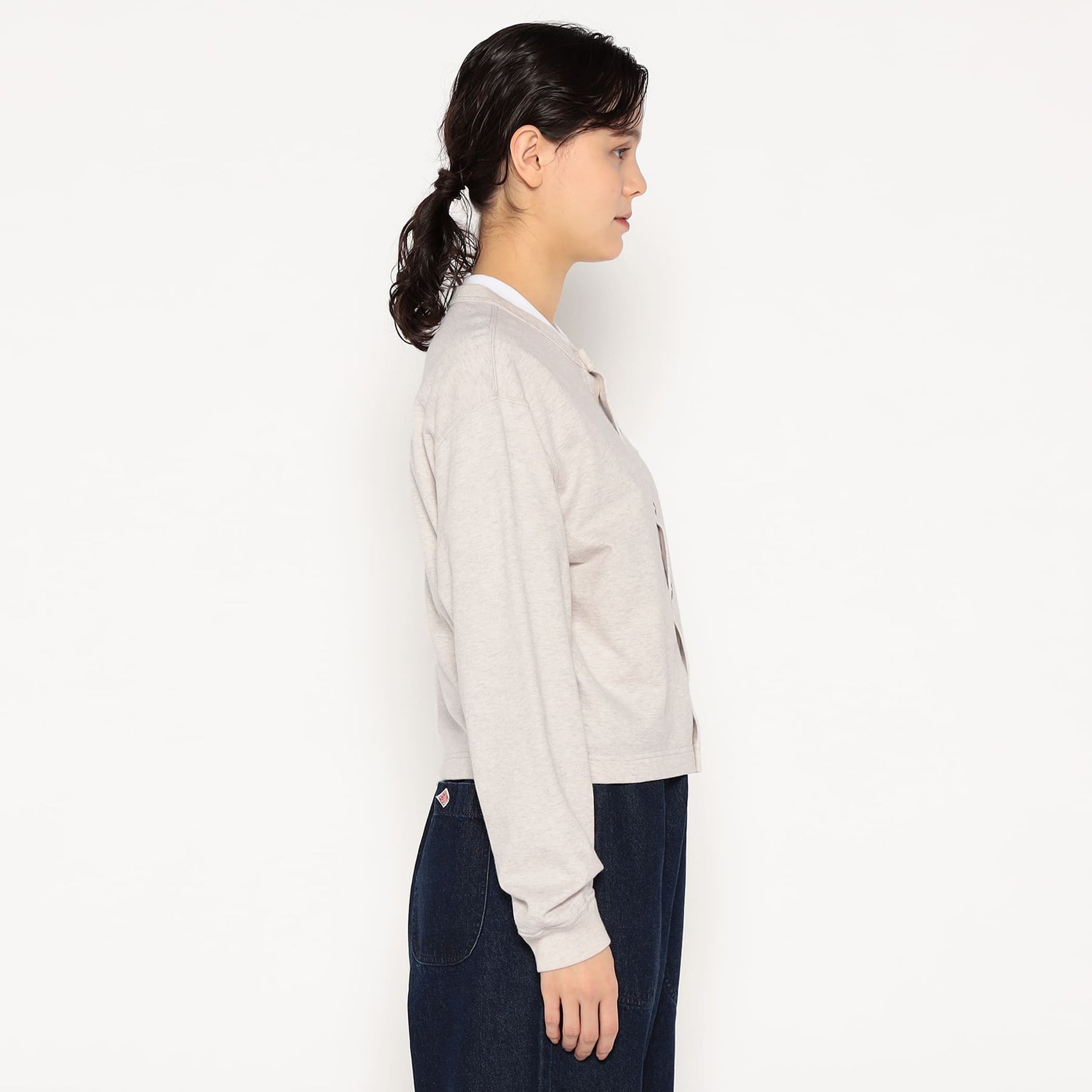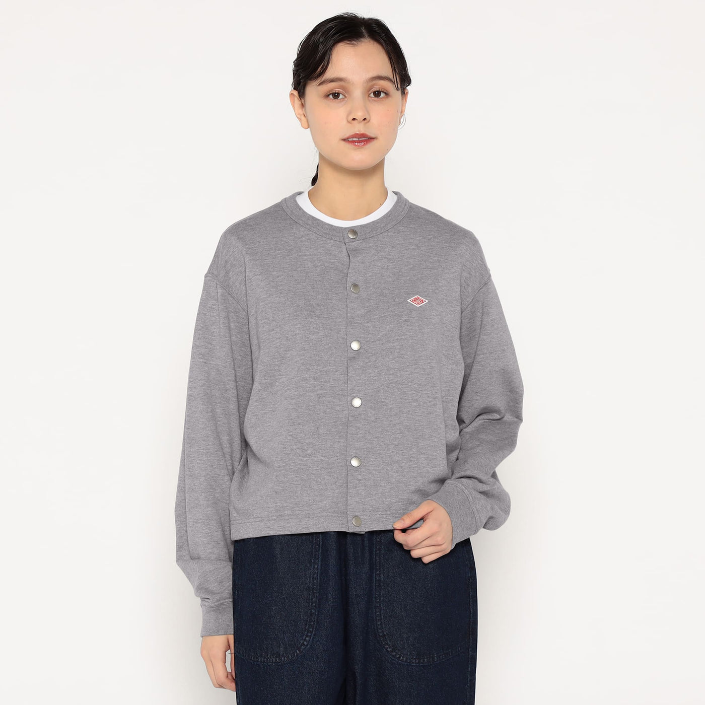 약간 넓은 네크라인, 짧은 길이, 넓은 박시한 실루엣이 특징입니다. 단톤 로고가 새겨진 도트 버튼을 사용합니다.