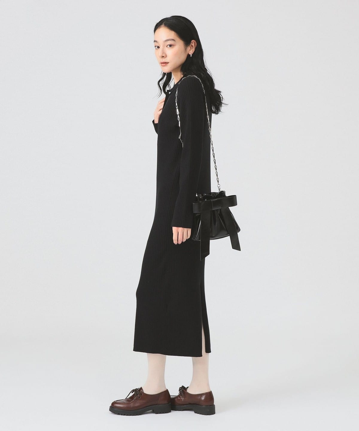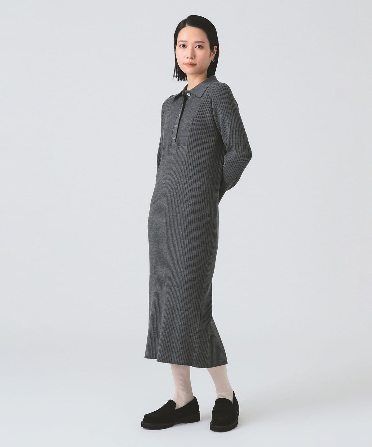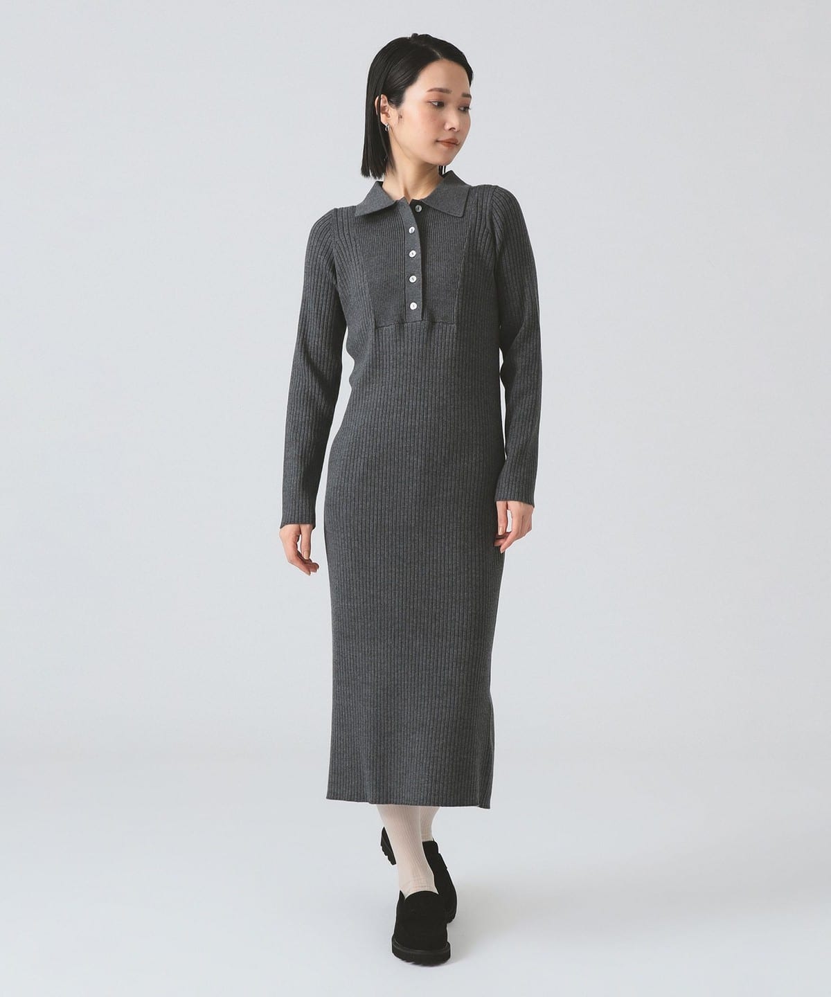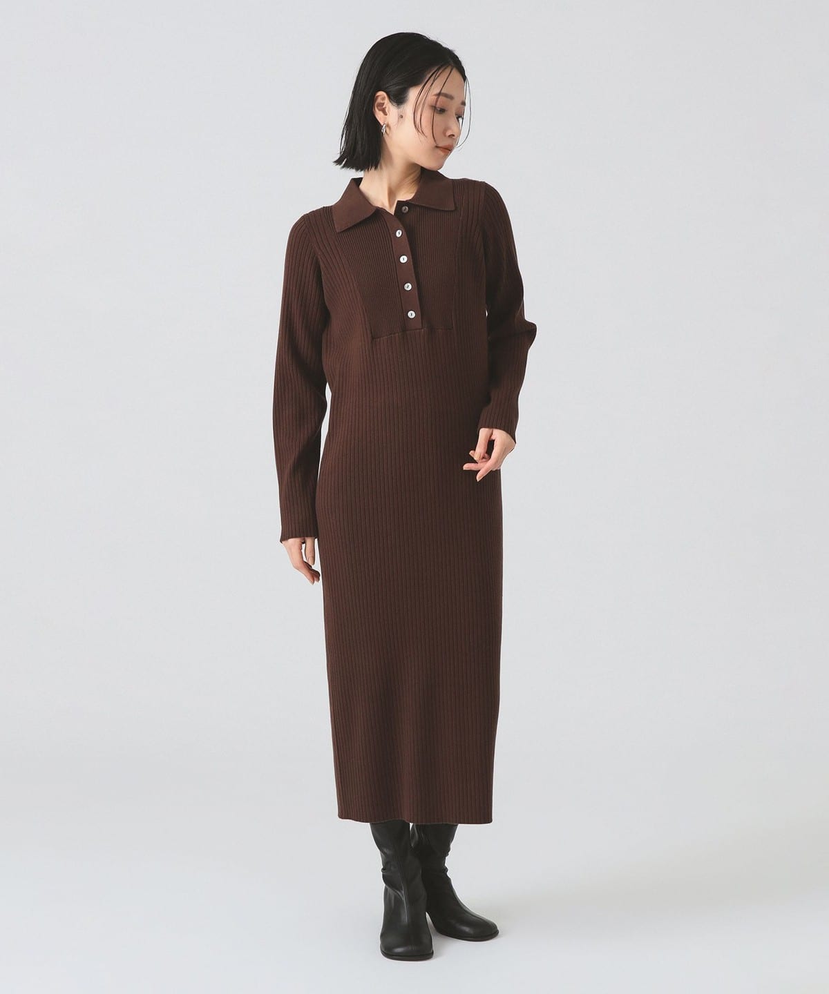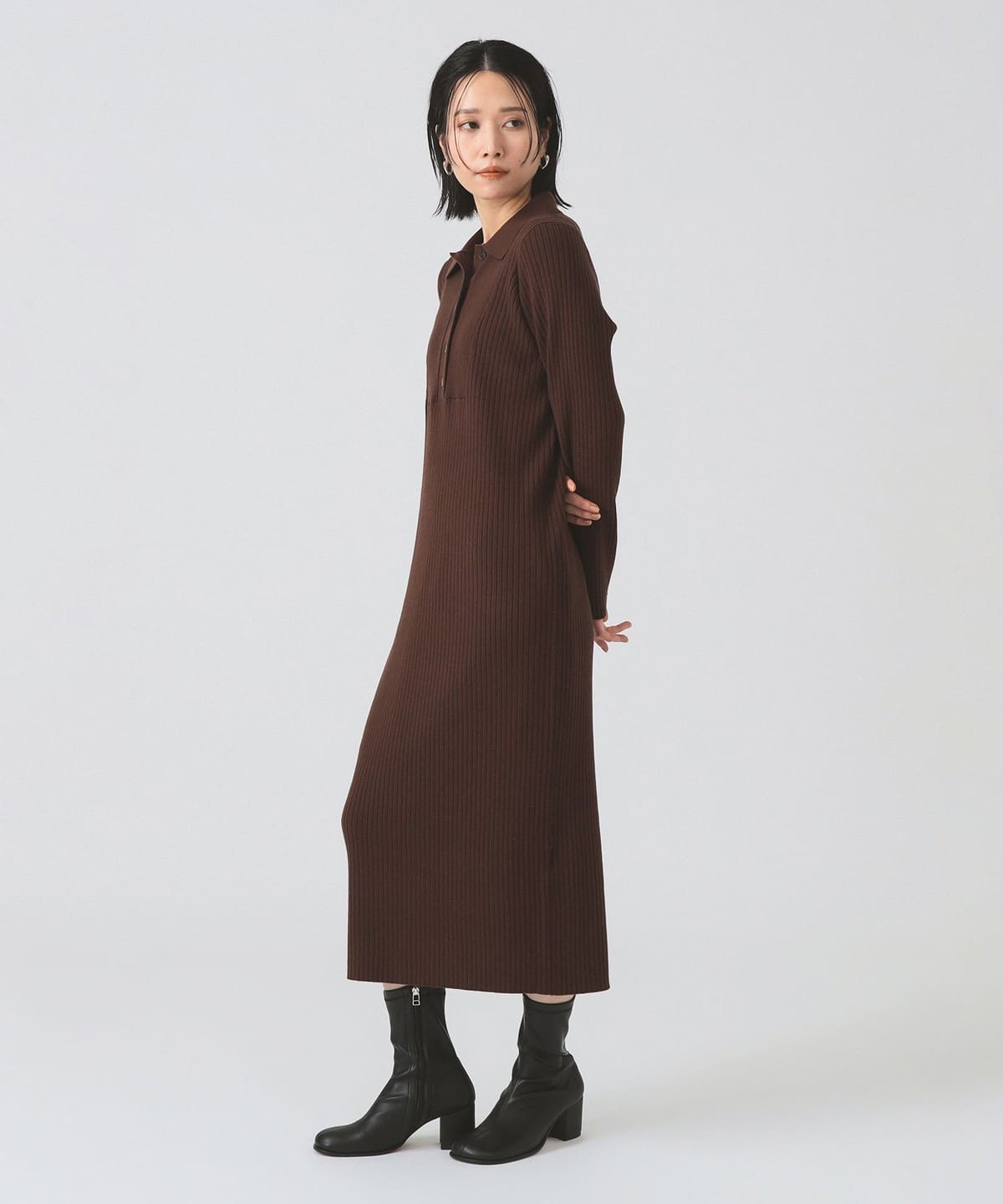 신축성 좋은 골지 니트 소재로, 바디라인을 은은하게 살려주는 폴로 스타일 롱 원피스입니다.
