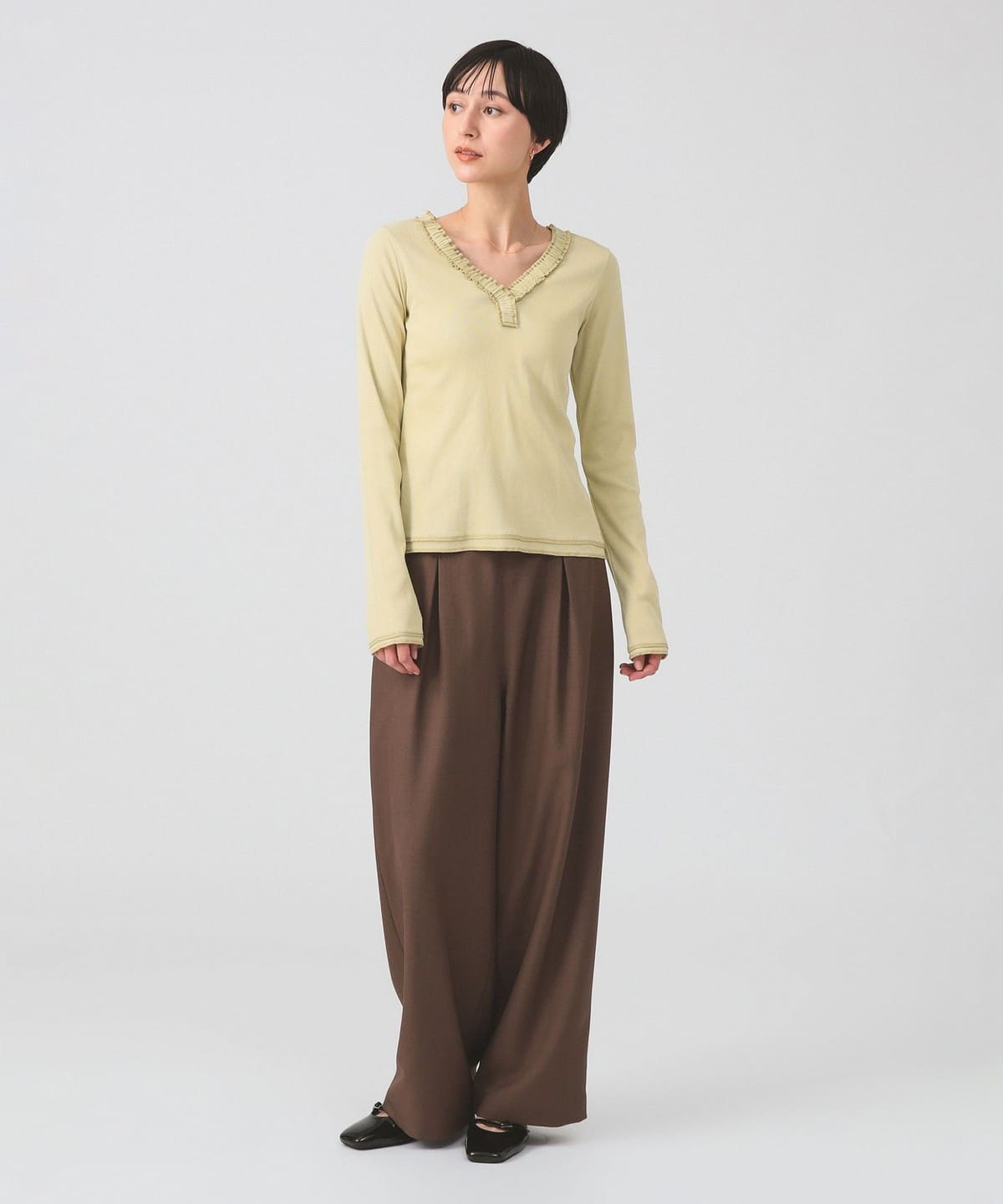 넥 라인에 더해진 잔잔한 셔링 디테일이 포인트가 있습니다.