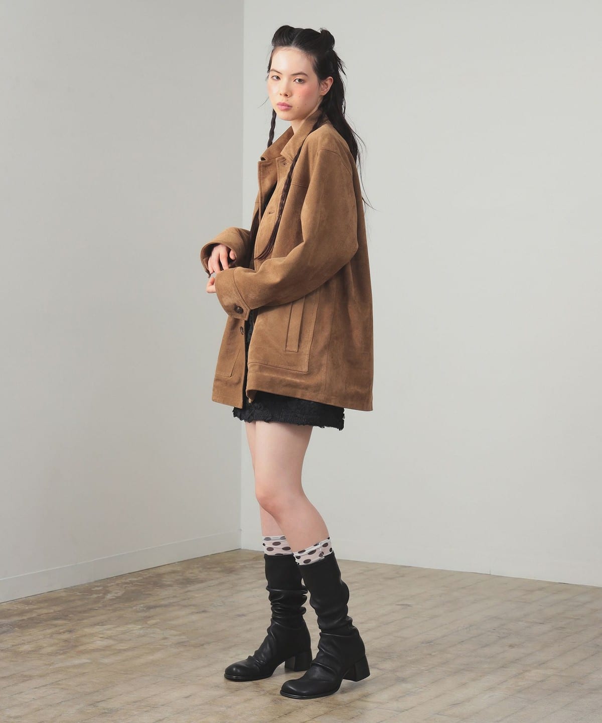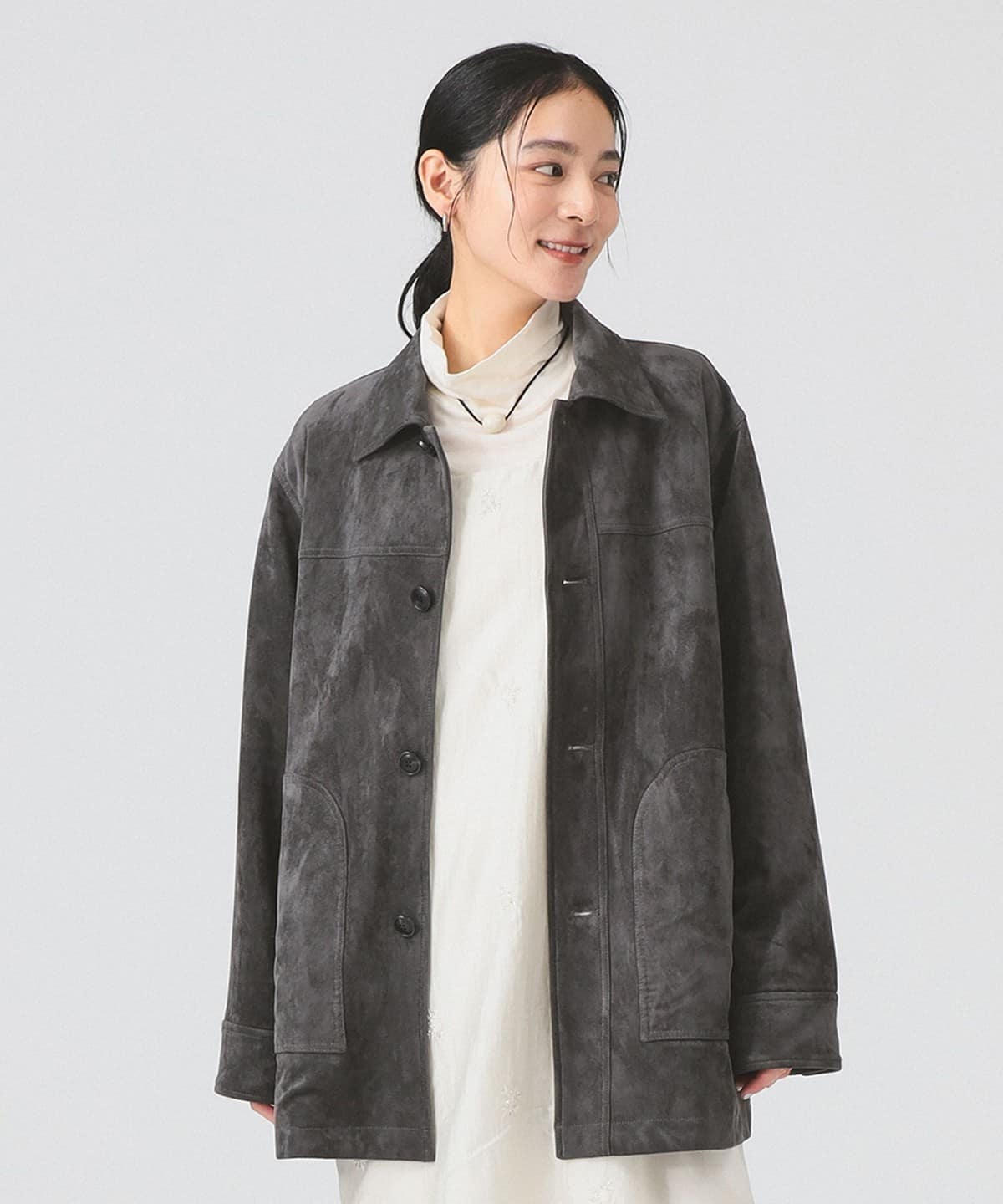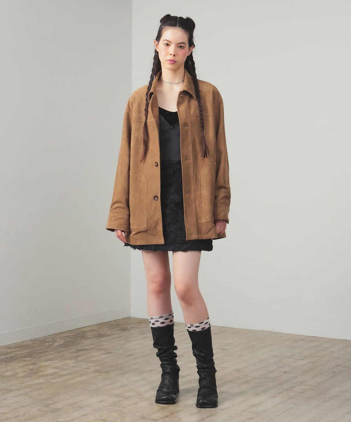 커버올 형태의 디자인을 모티프로 한 하프코트입니다. 은은한 드레이프감이 느껴지는 원단이며 부드럽고 매끄러운 촉감의 페이크 스웨이드 원단을 사용합니다. 여유로운 실루엣으로 이너를 겹쳐 입기에도 편안합니다.