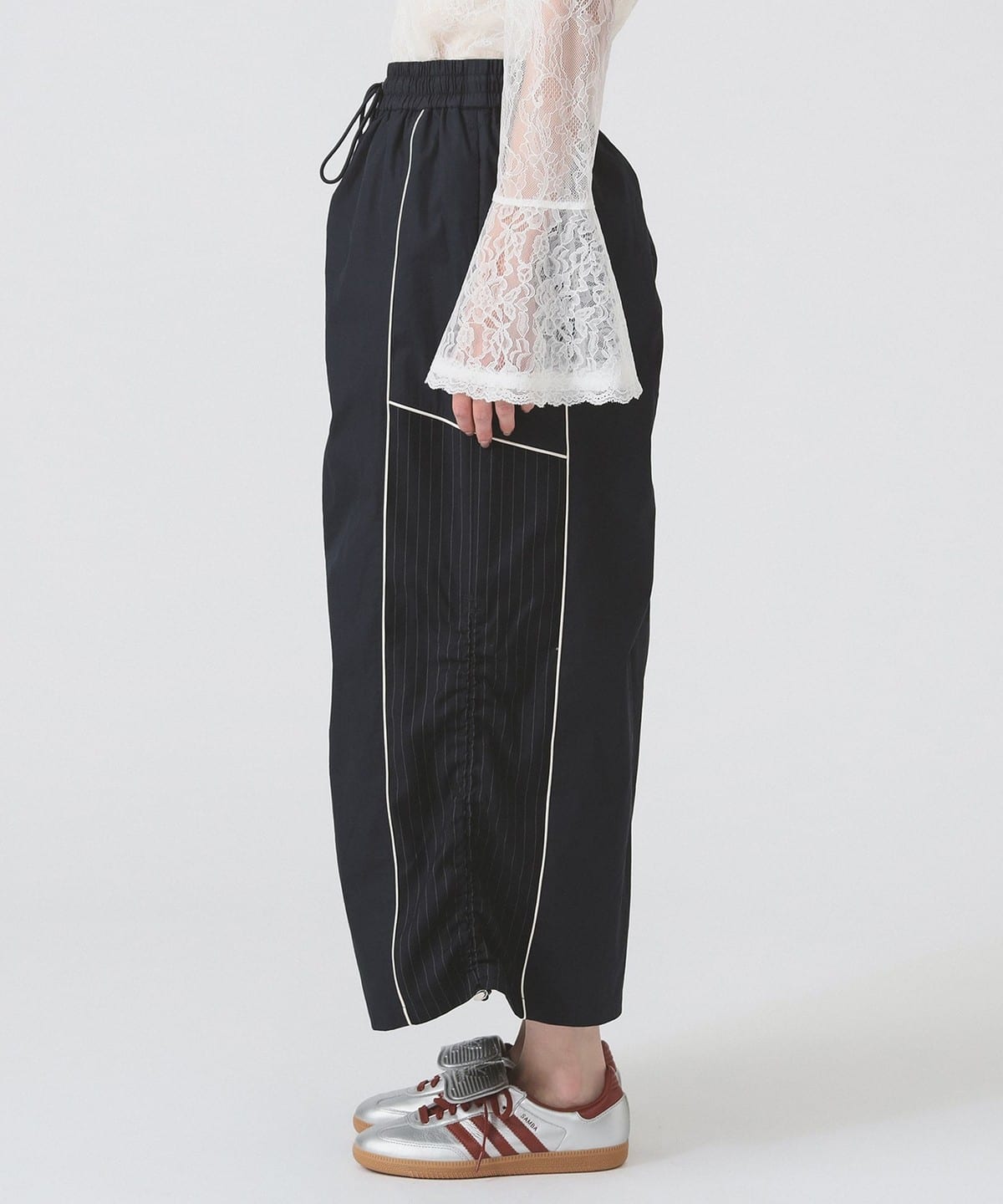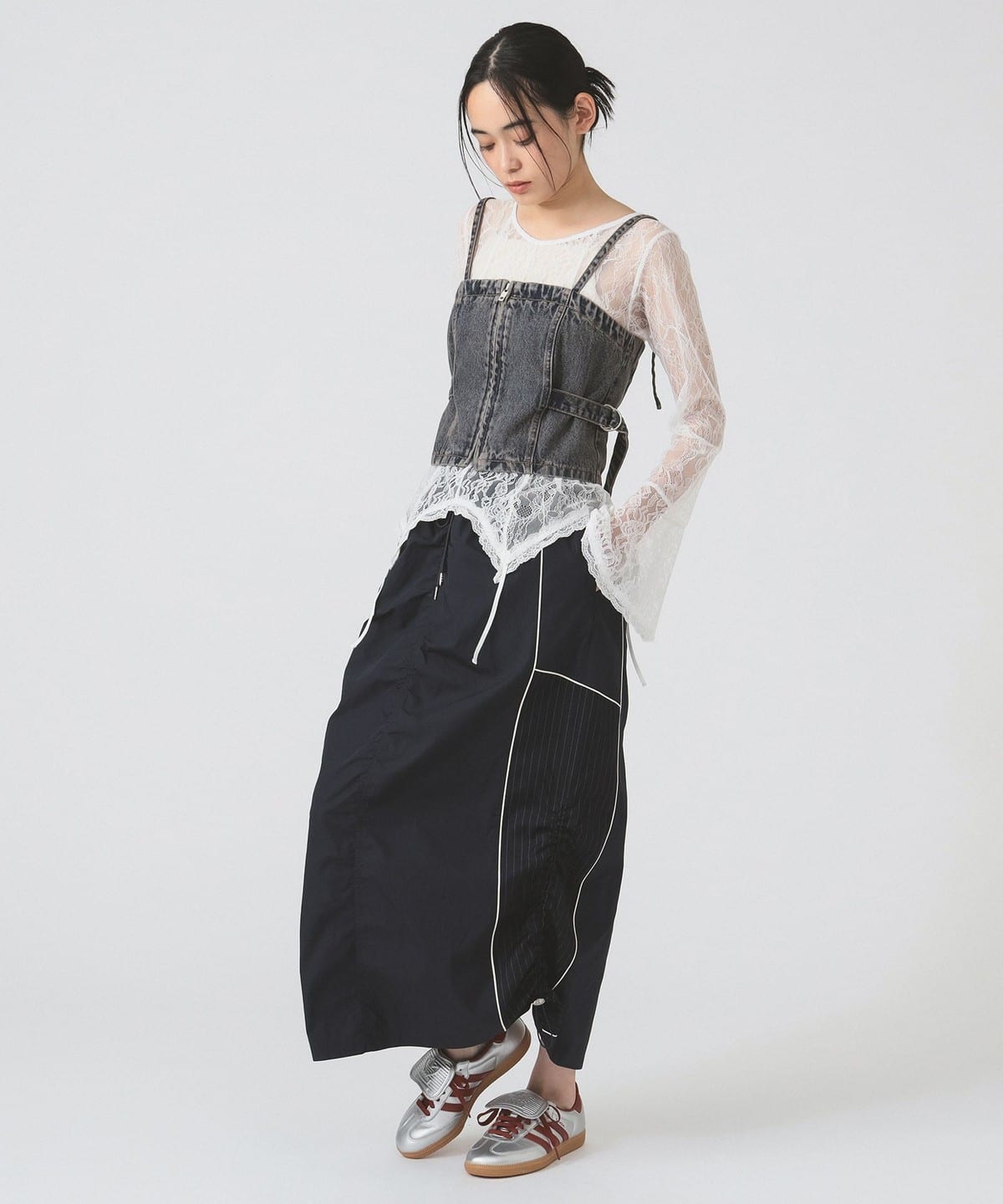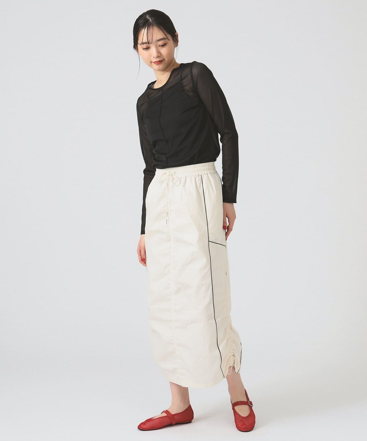사이드에 스트라이프 배색을 더해 입체적인 포인트를 준 롱스커트입니다.