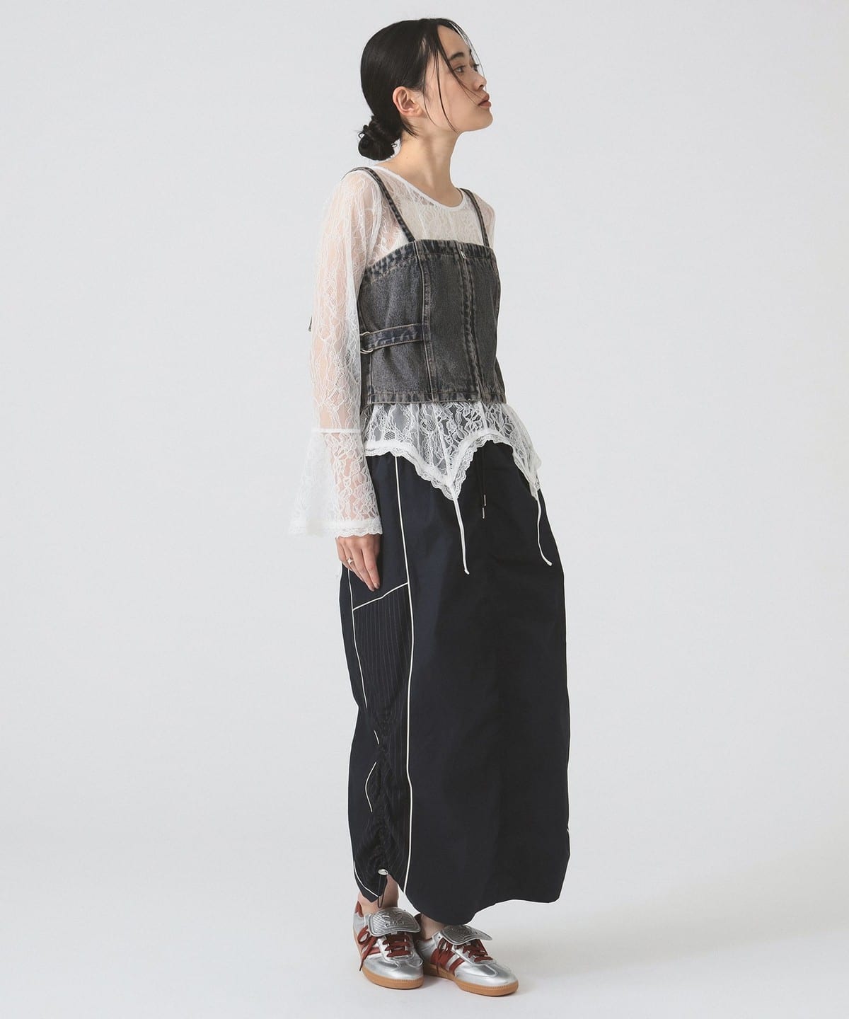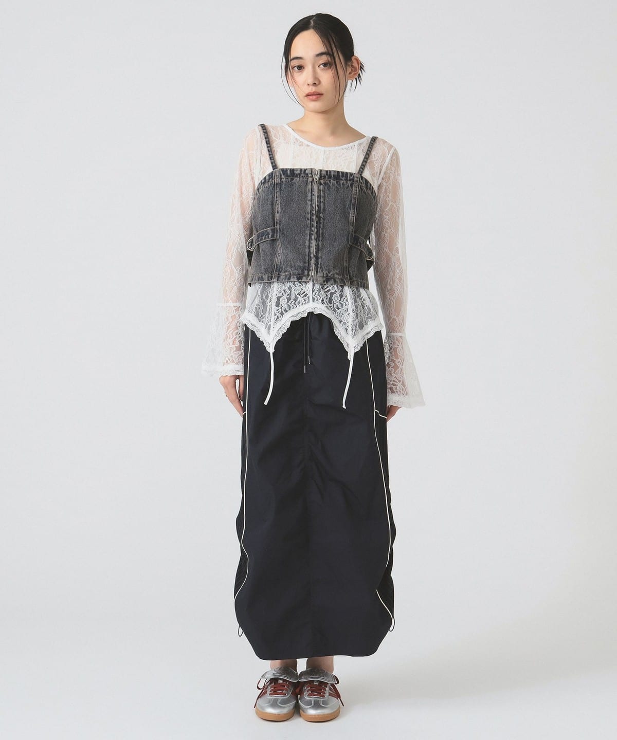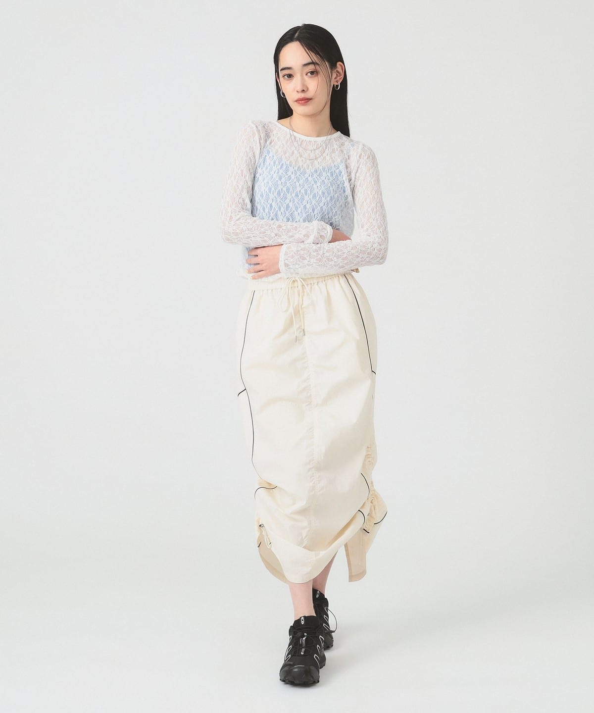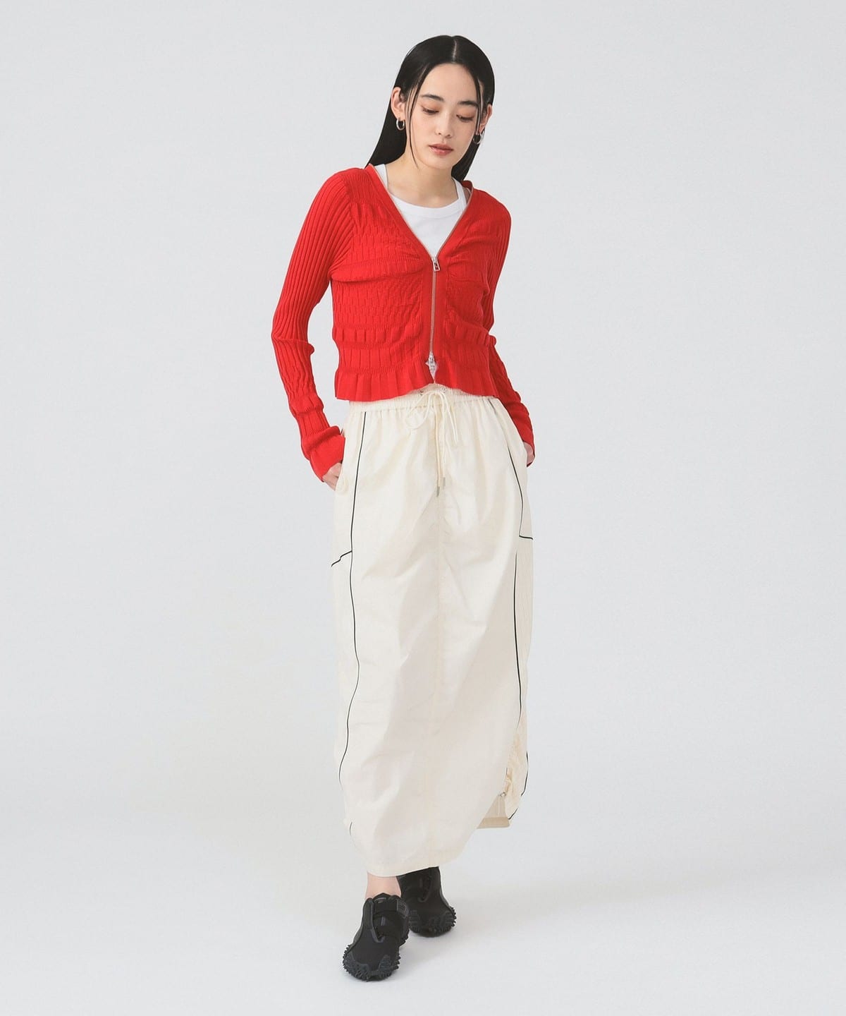 사이드에 스트라이프 배색을 더해 입체적인 포인트를 준 롱스커트입니다.