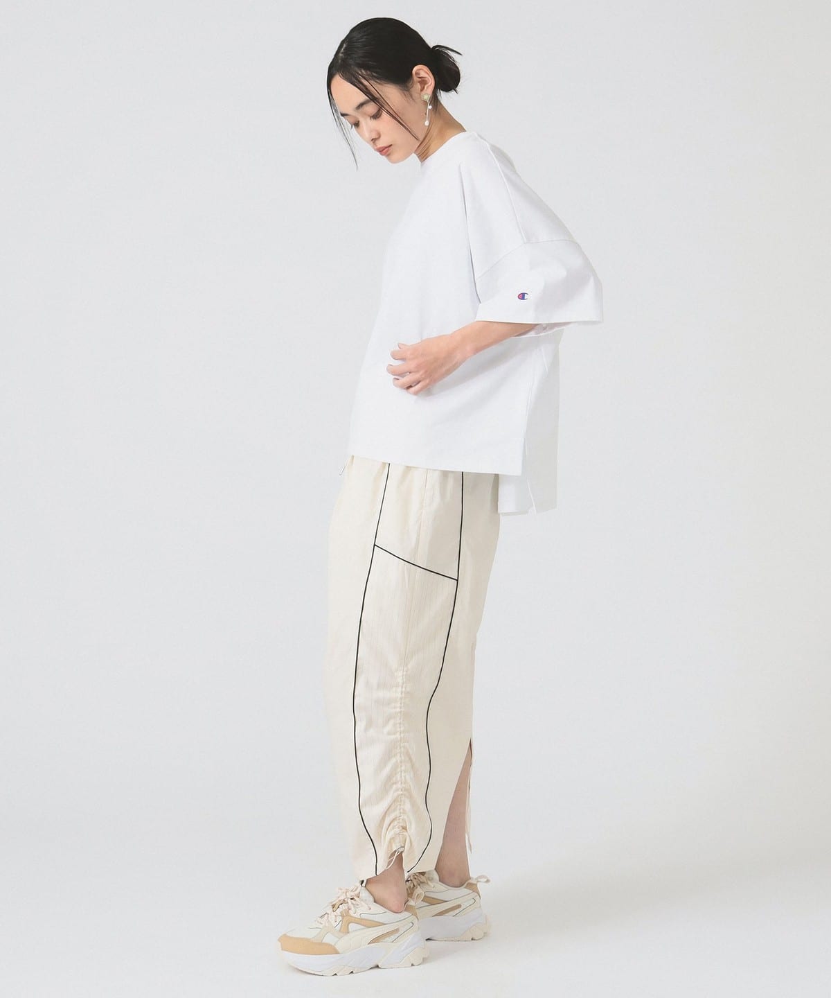 또한 사이드 부분에도 드로스트링이 있어 실루엣을 다양하게 조절할 수 있습니다.