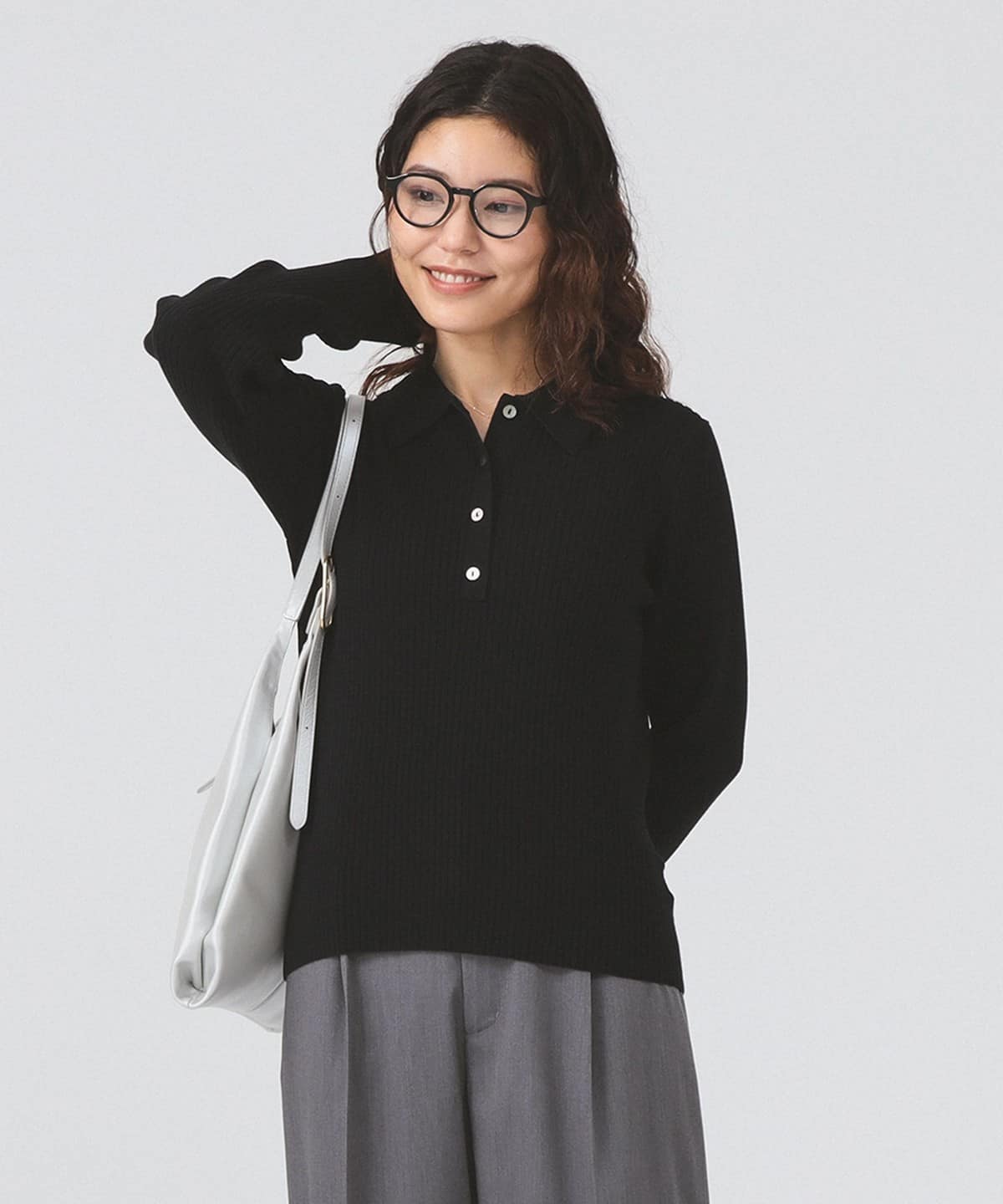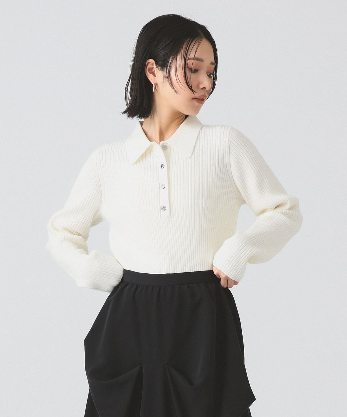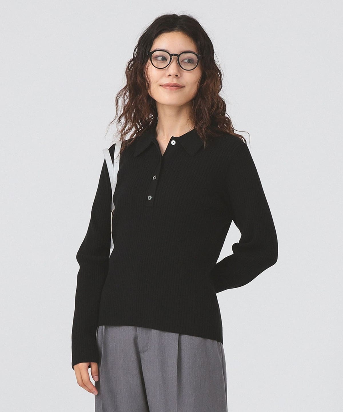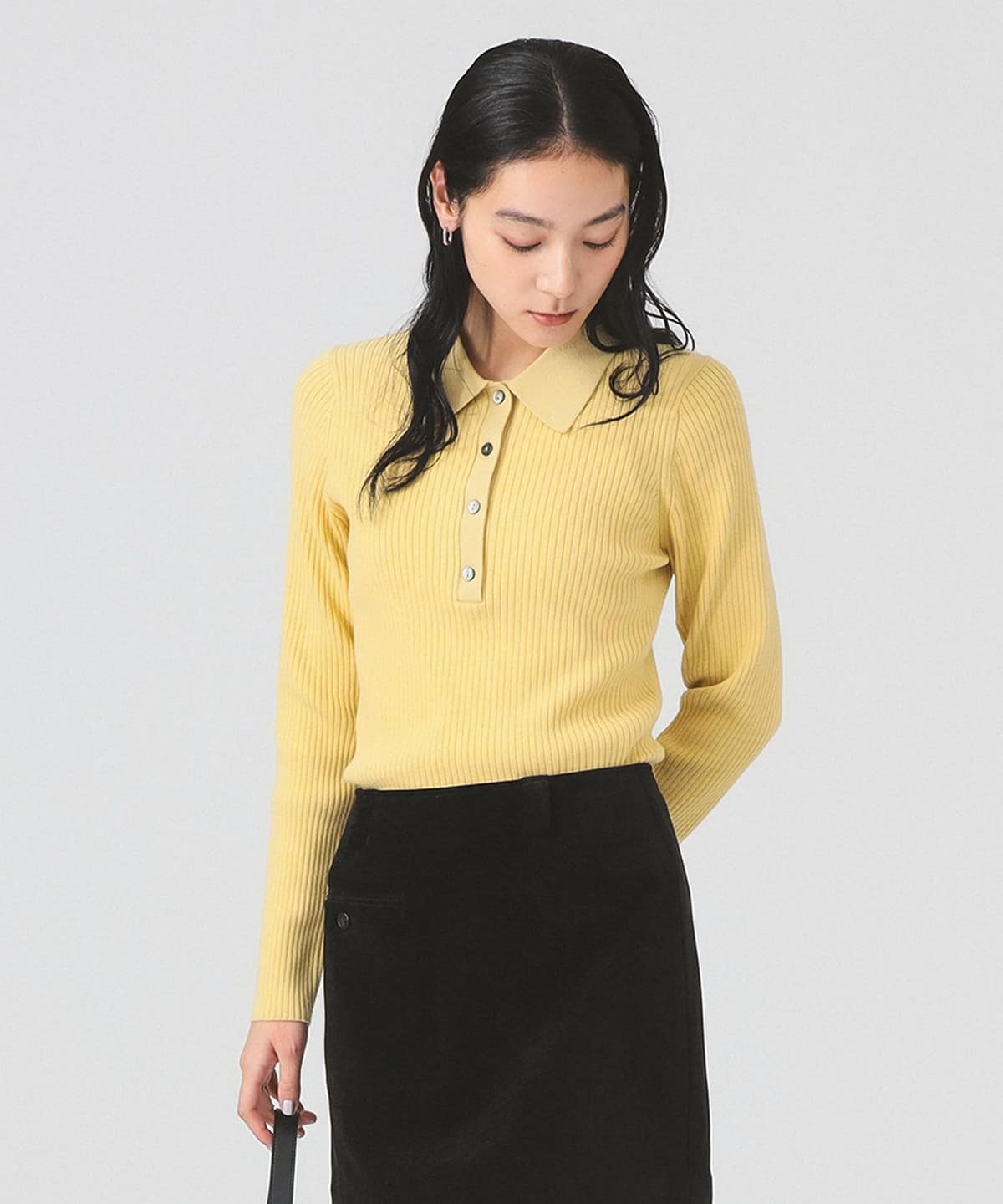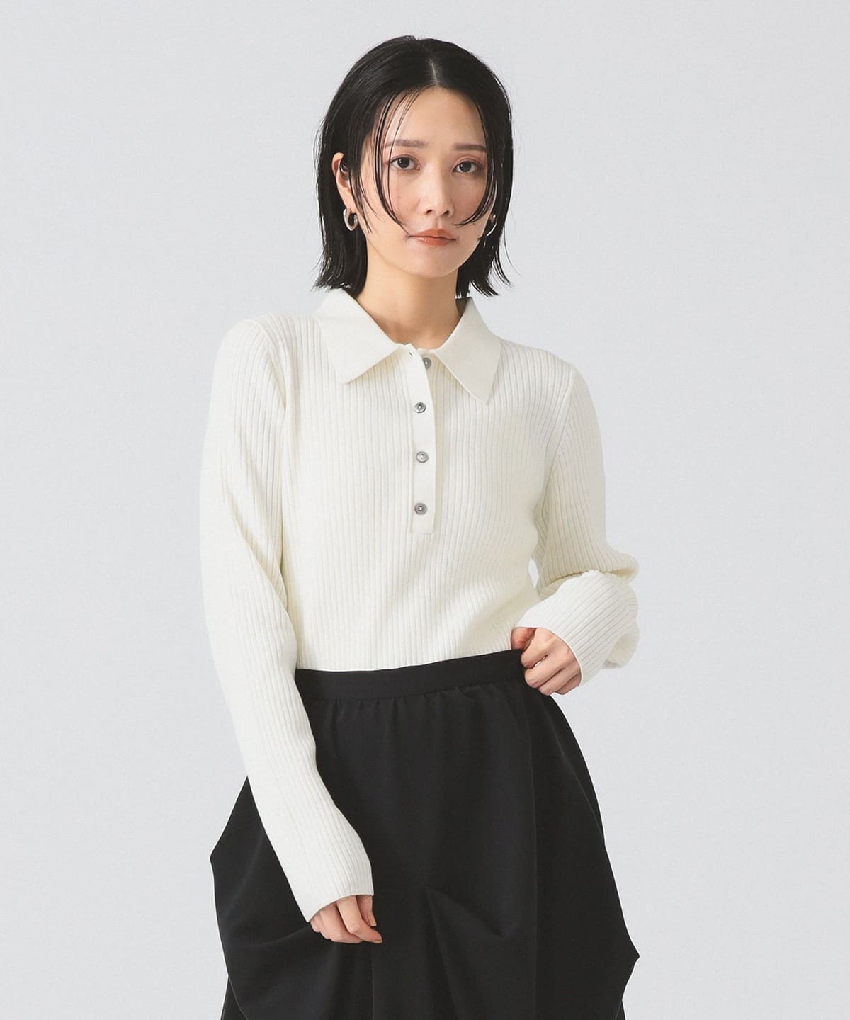 심플한 디자인의 폴로 니트. 몸에 적당히 밀착되는 골지 짜임으로 실루엣입니다.