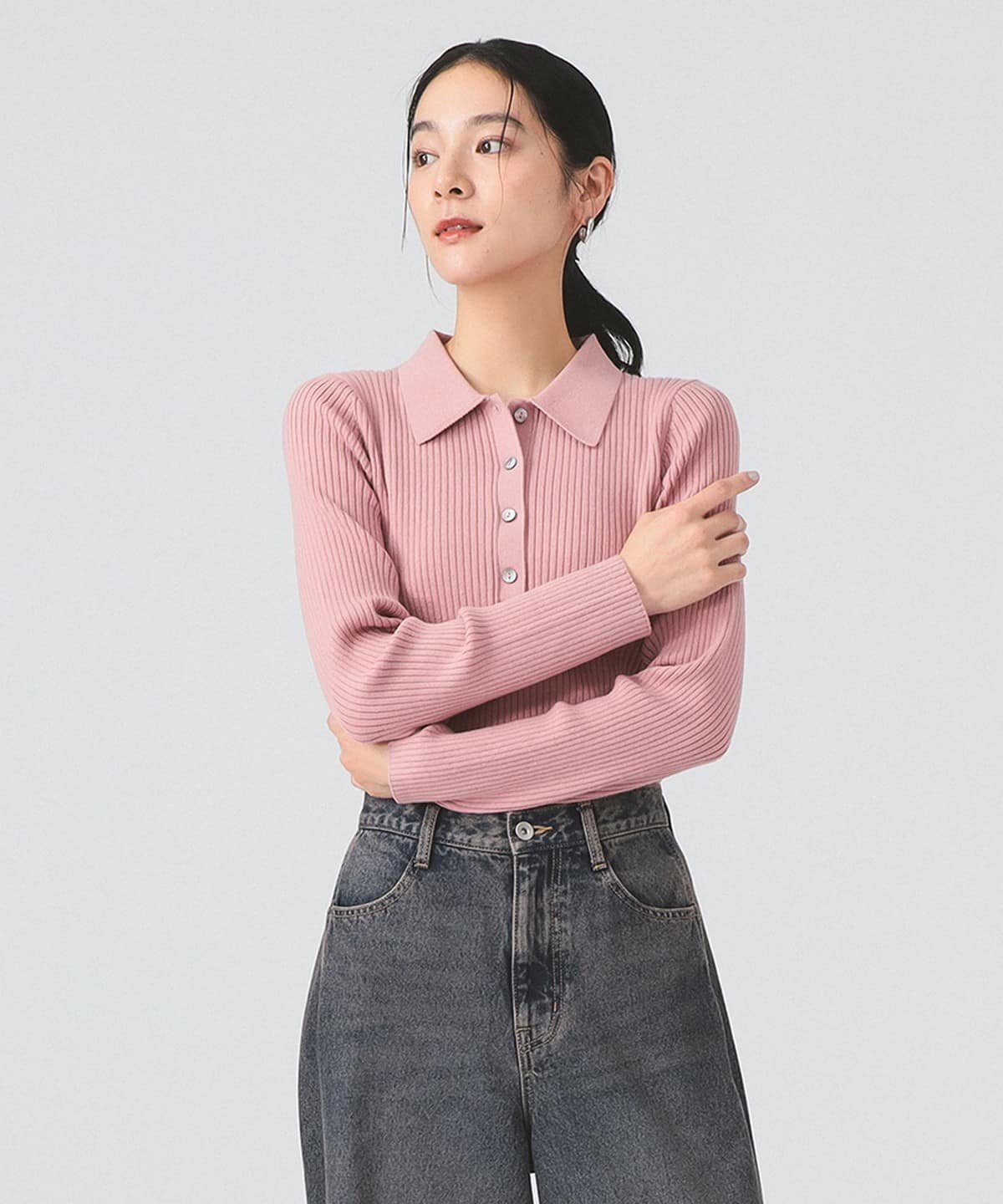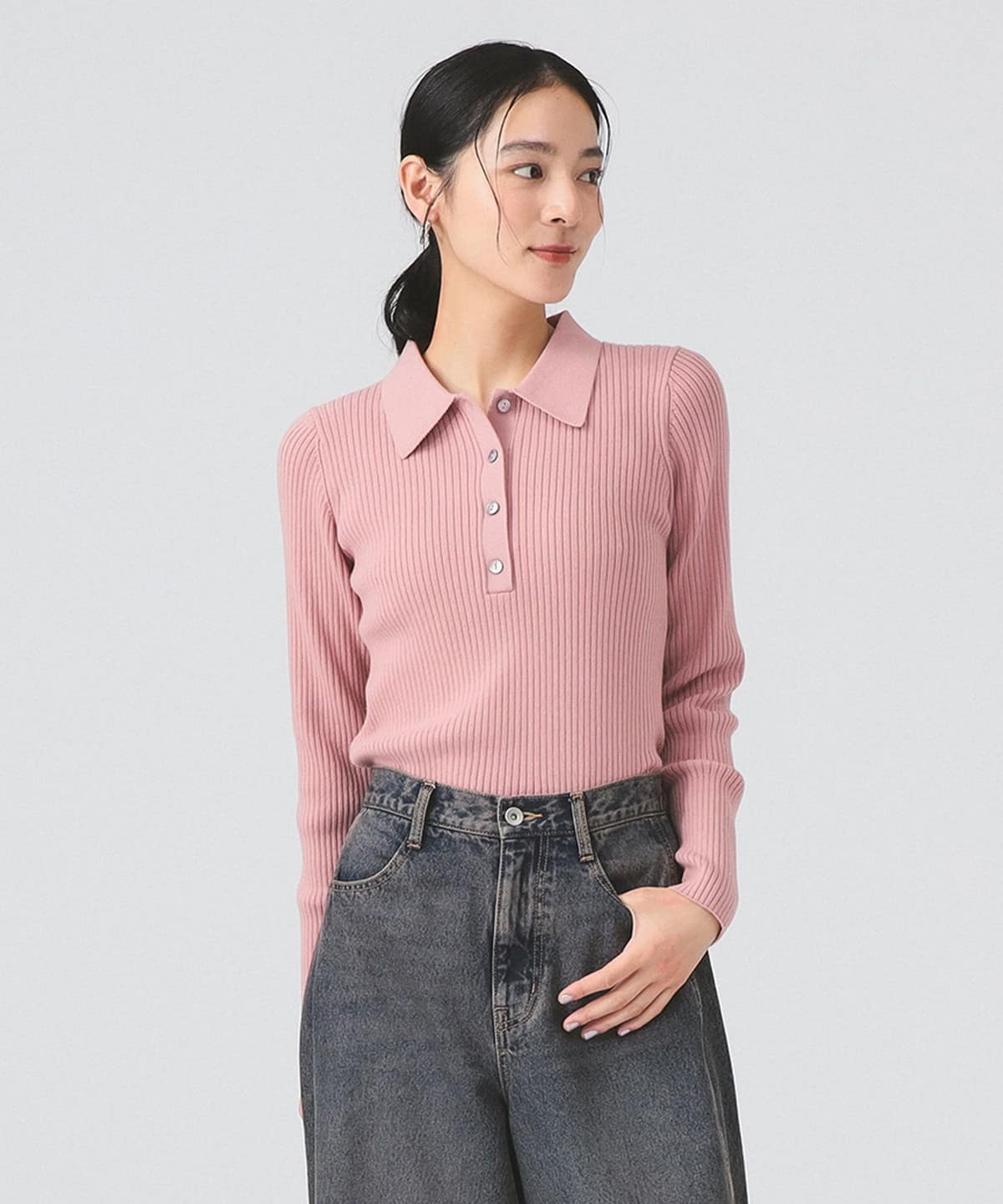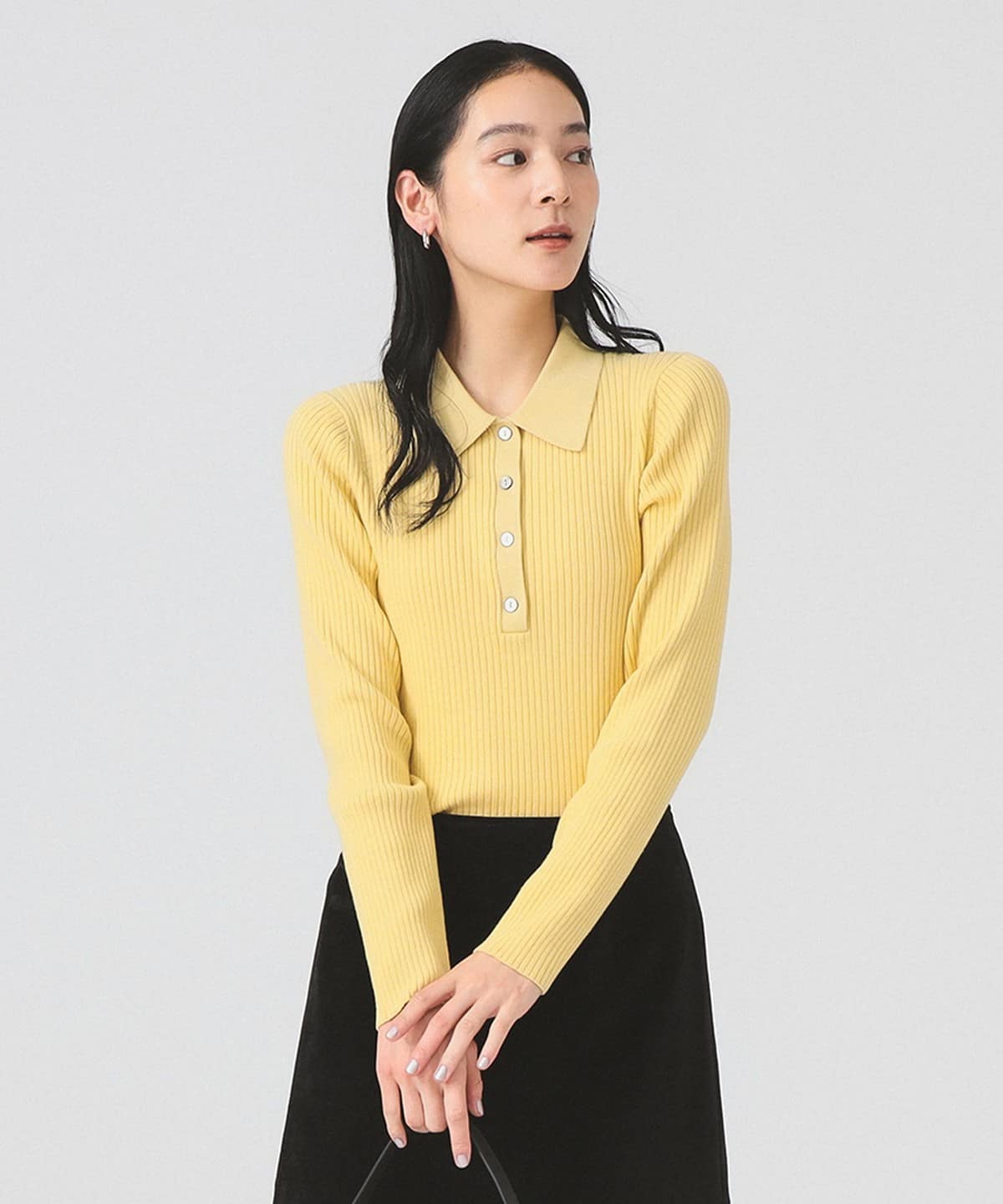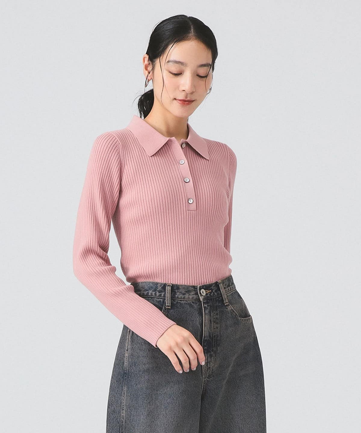 심플한 디자인의 폴로 니트. 몸에 적당히 밀착되는 골지 짜임으로 실루엣입니다.