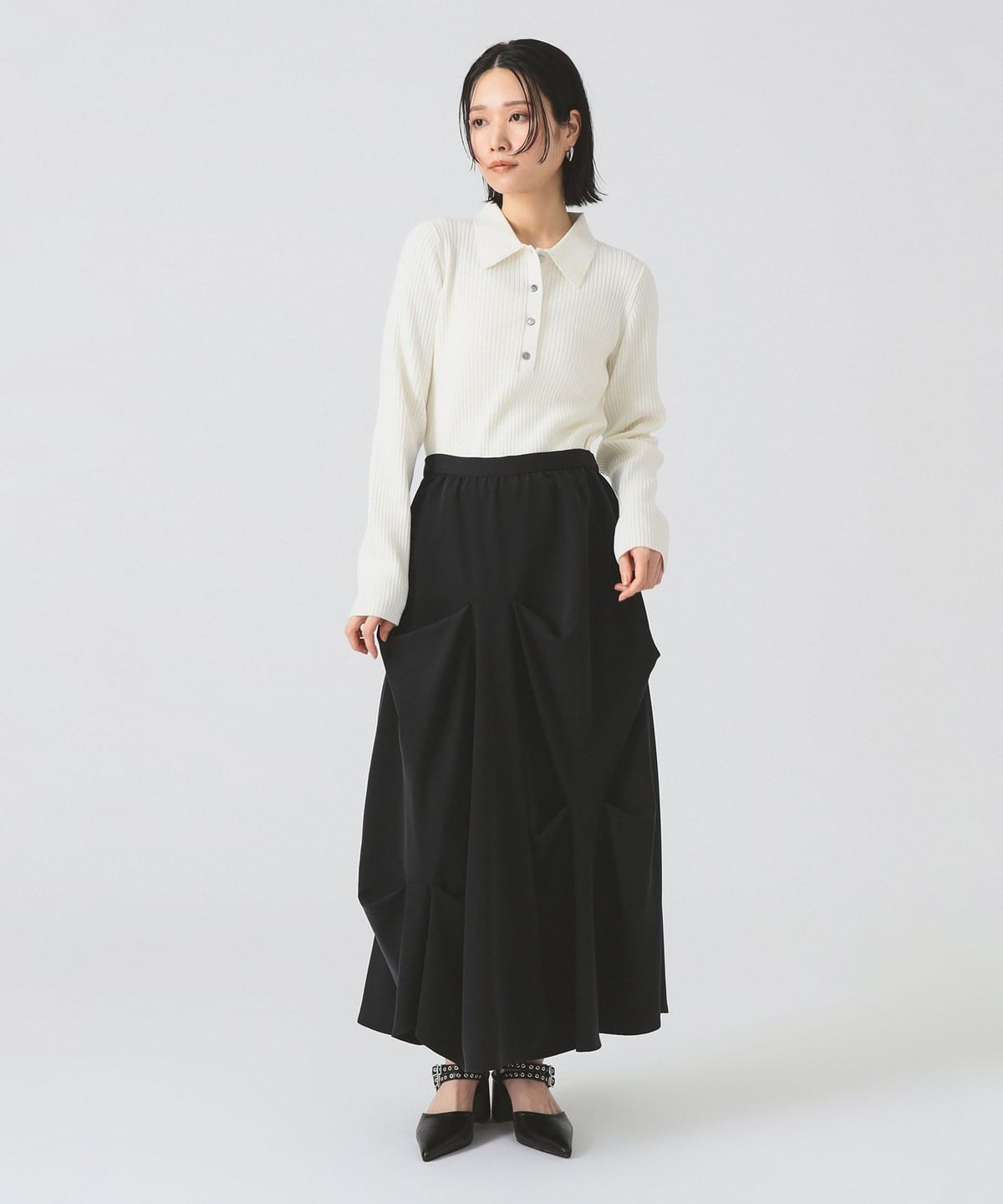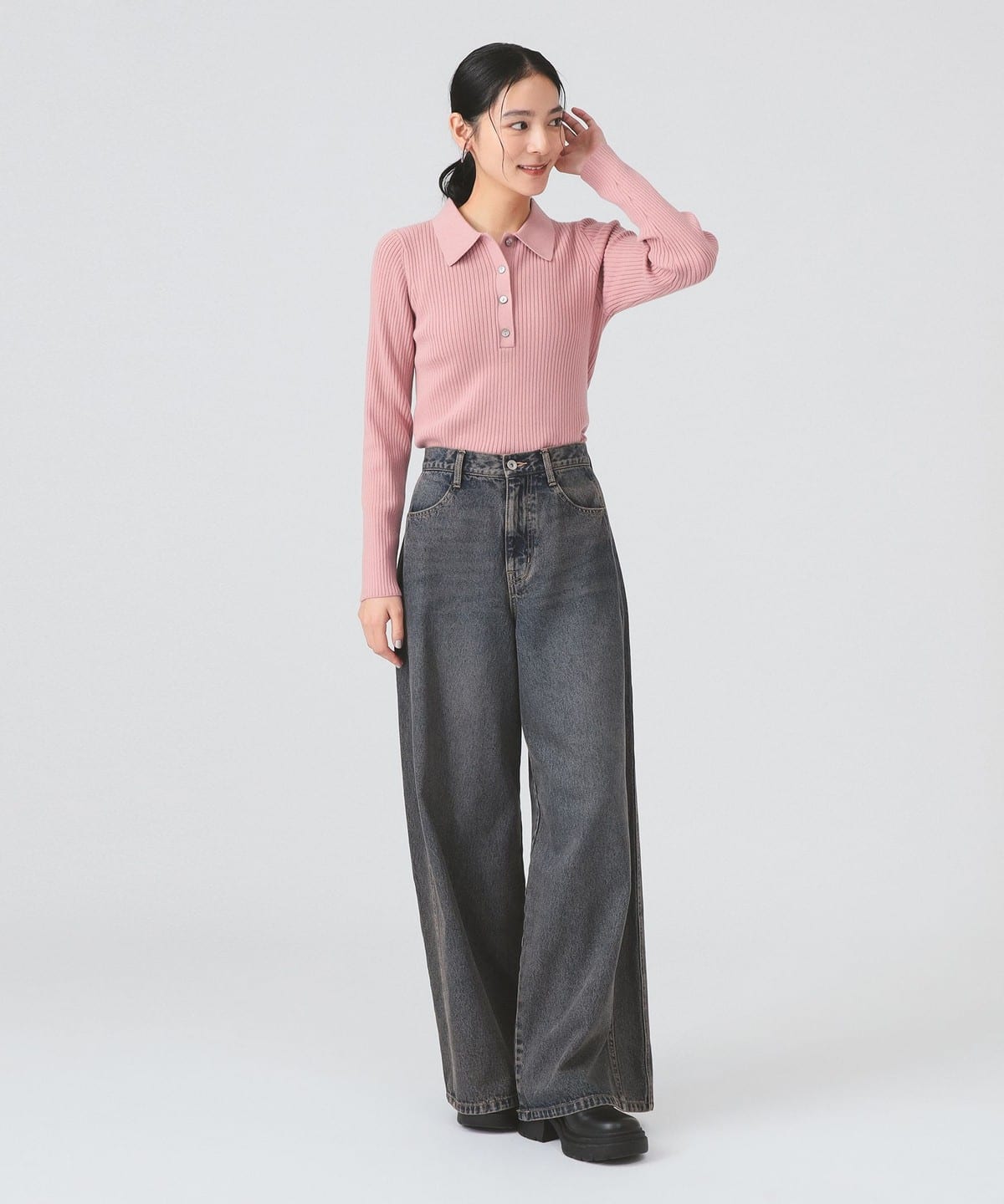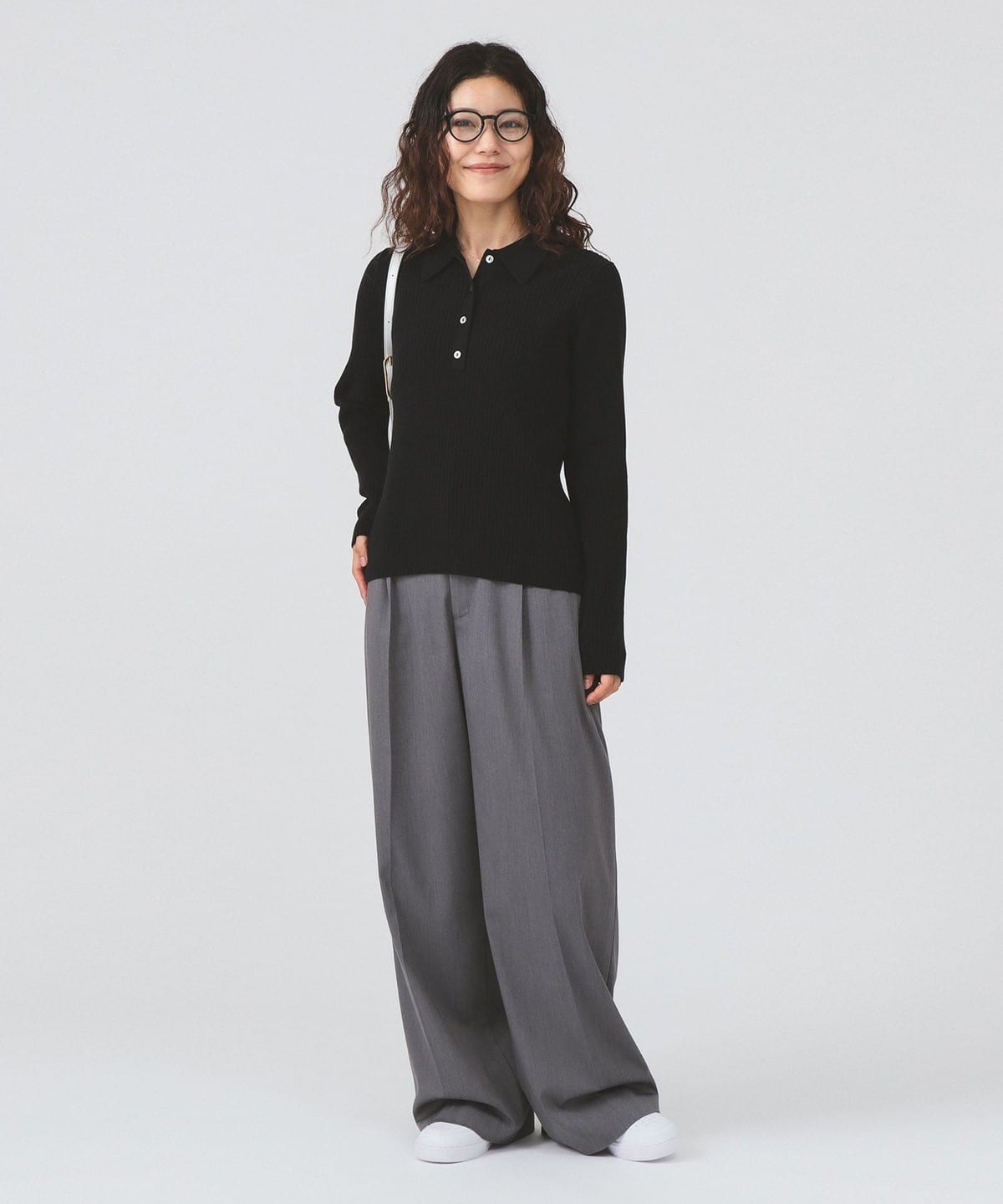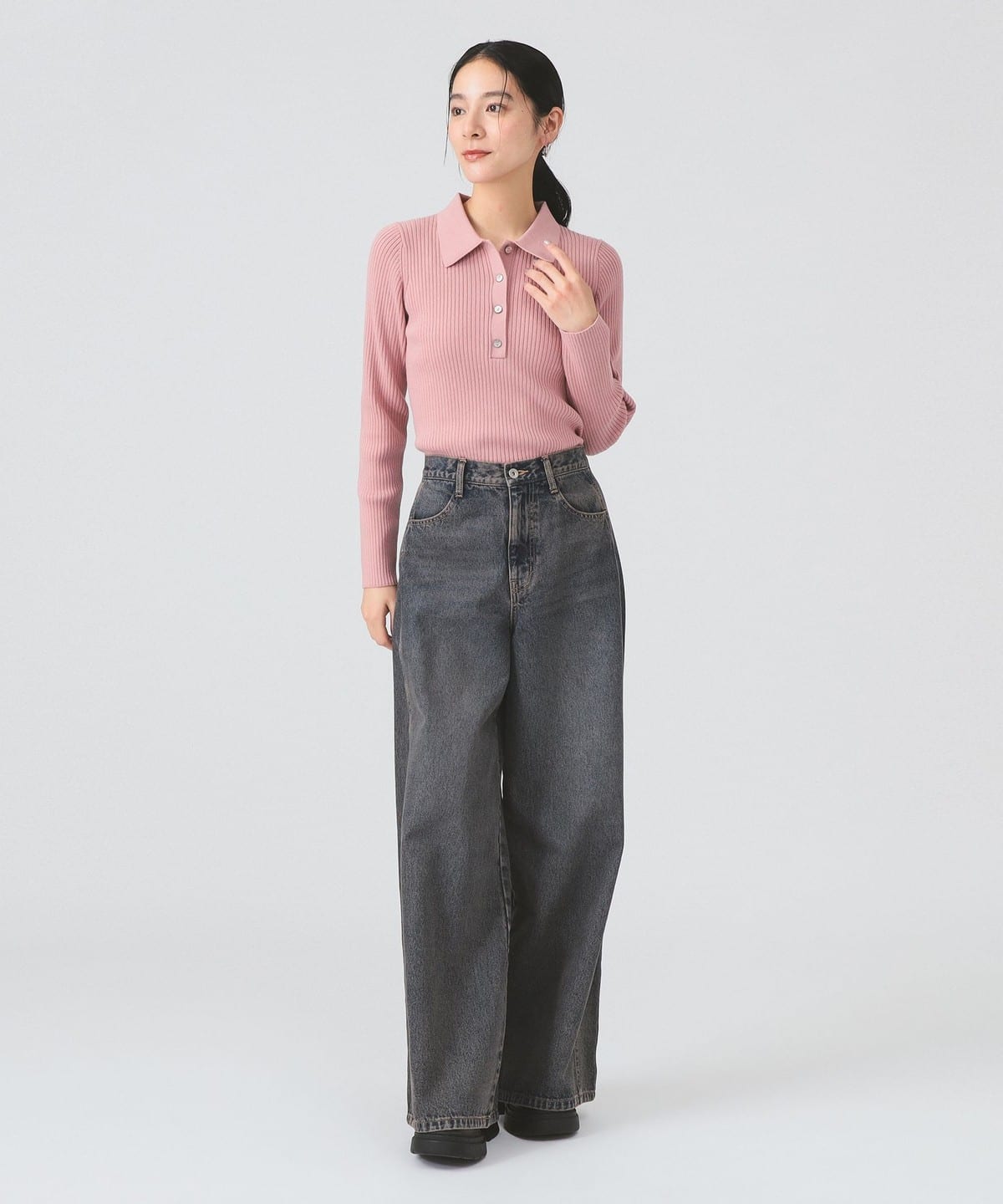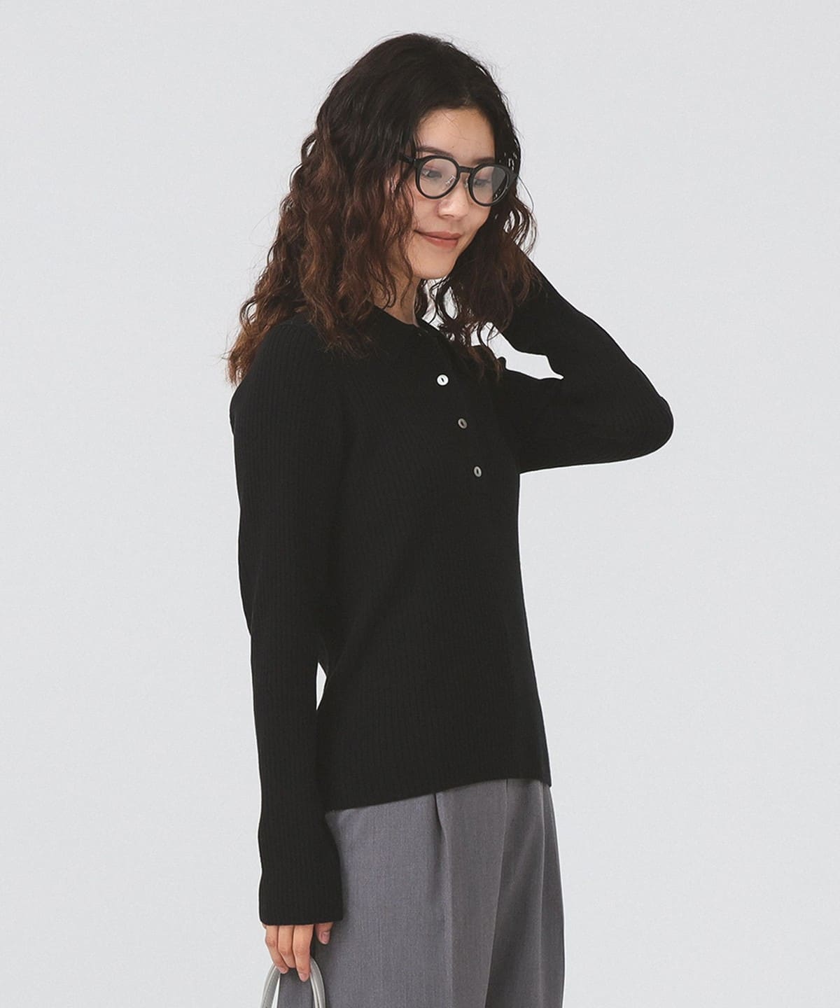 심플한 디자인의 폴로 니트. 몸에 적당히 밀착되는 골지 짜임으로 실루엣입니다.