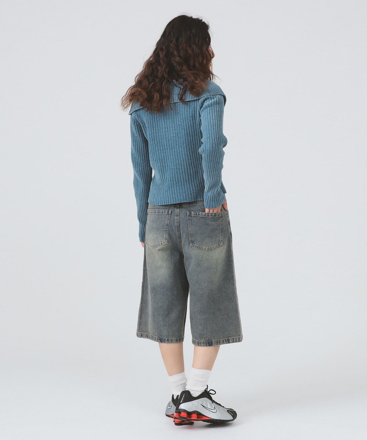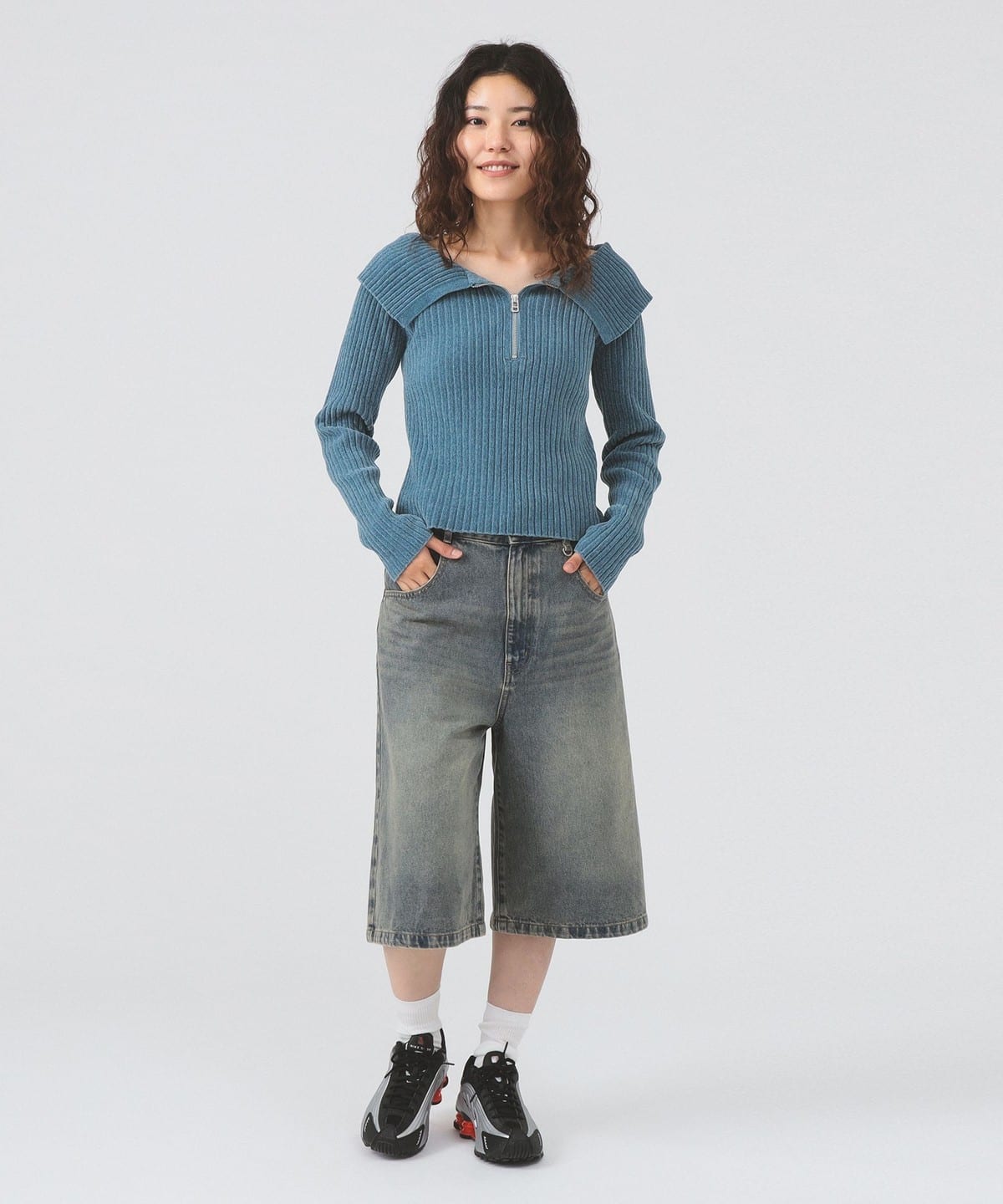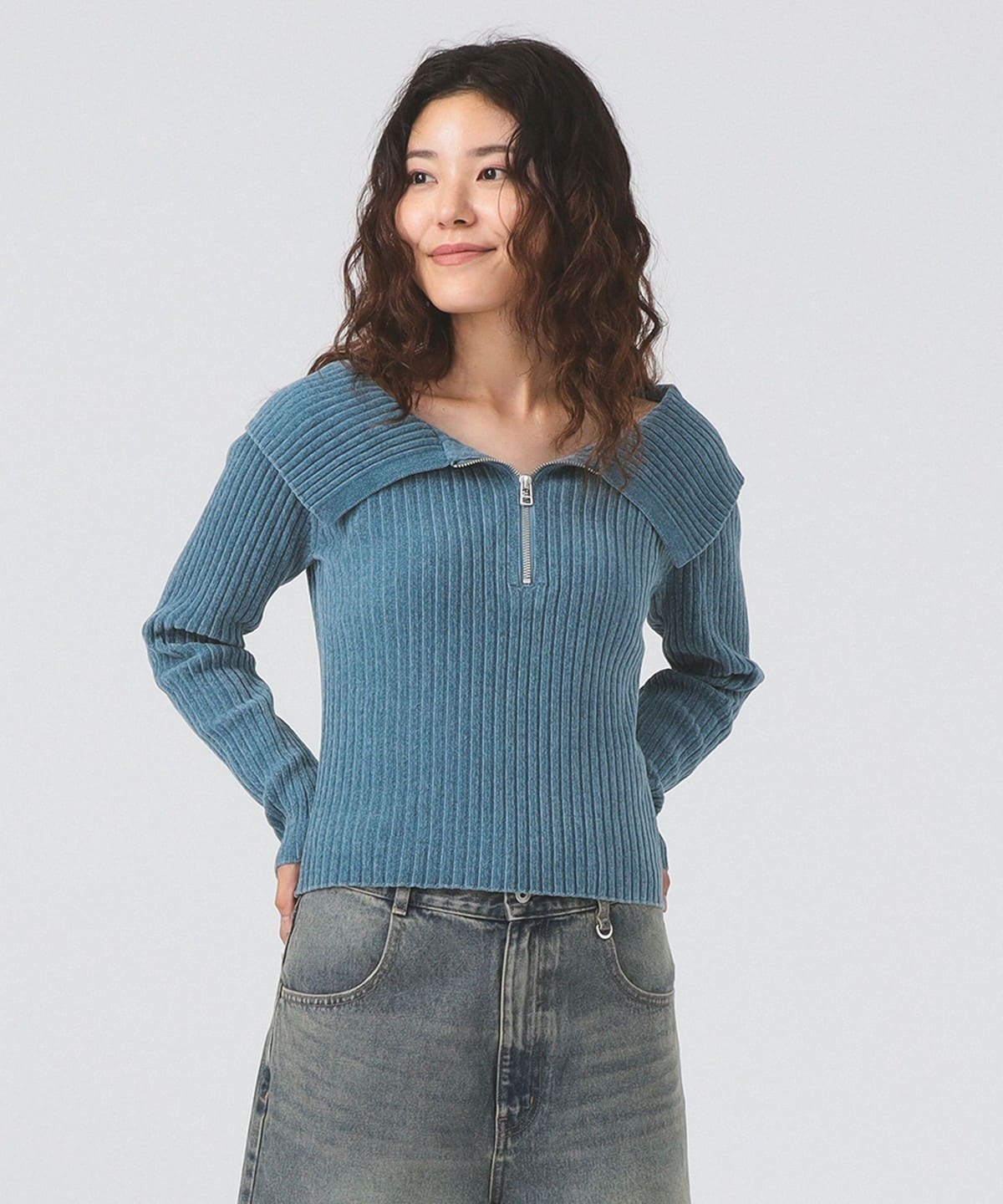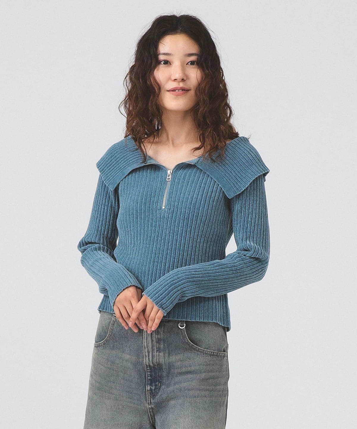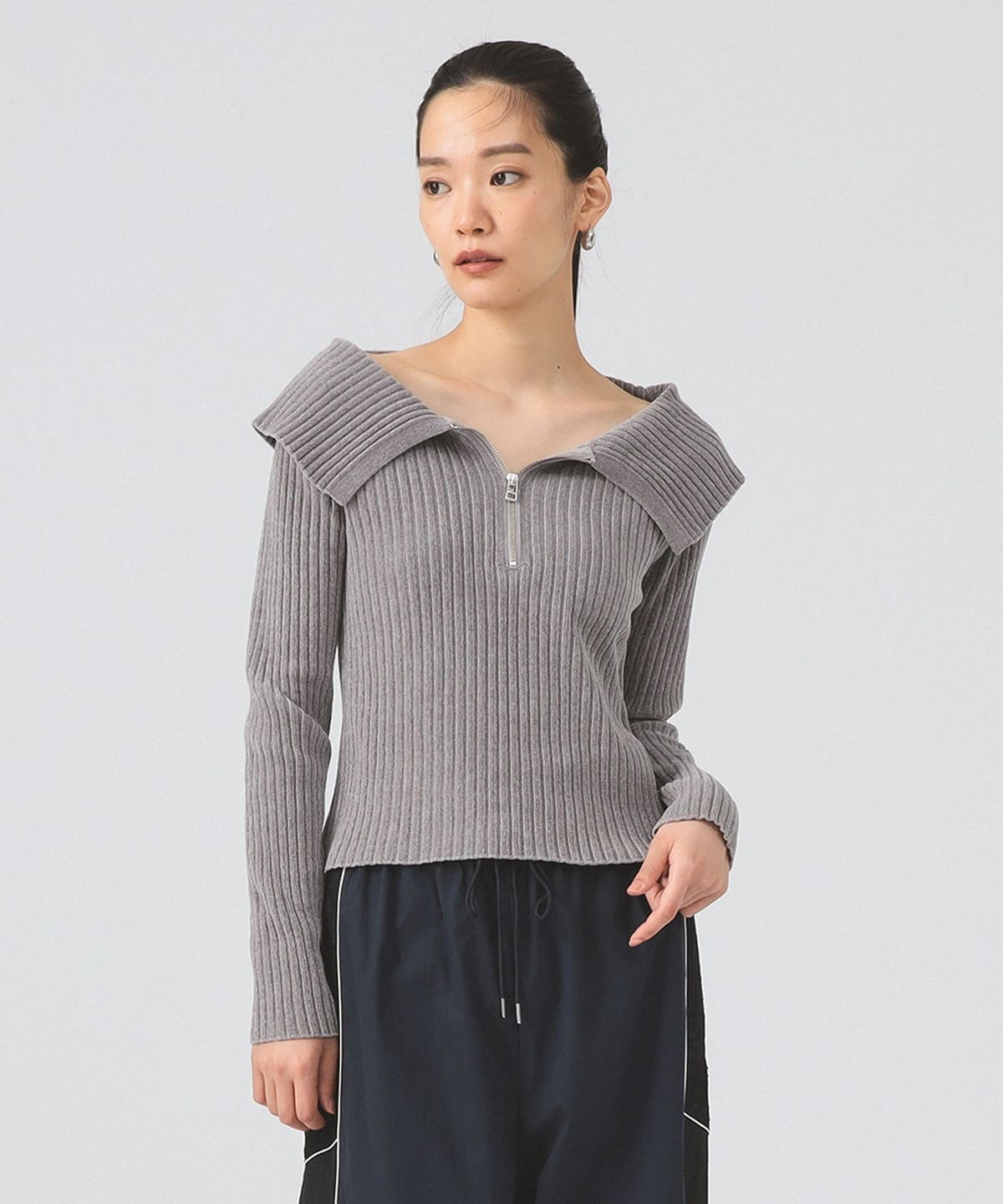 레이 빔즈 하프 지퍼 빅 칼라 니트