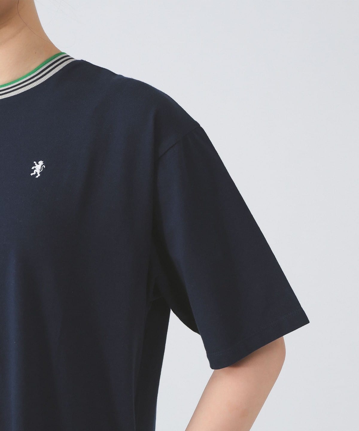 - 넥라인에는 멀티컬러 라인 리브 포인트