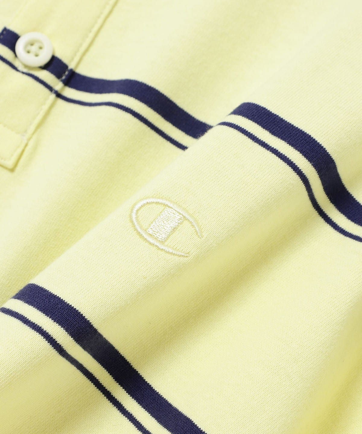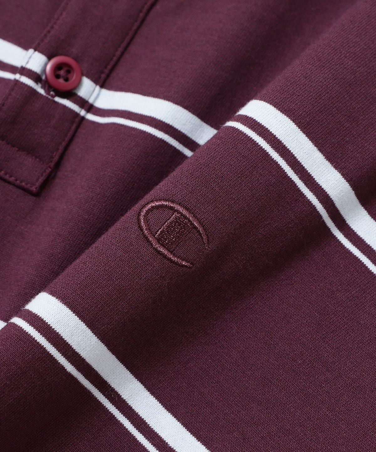 클래식한 분위기의 스탠드 칼라 디테일이며 가슴에 동일 톤의 챔피온 자수 로고가 있습니다.