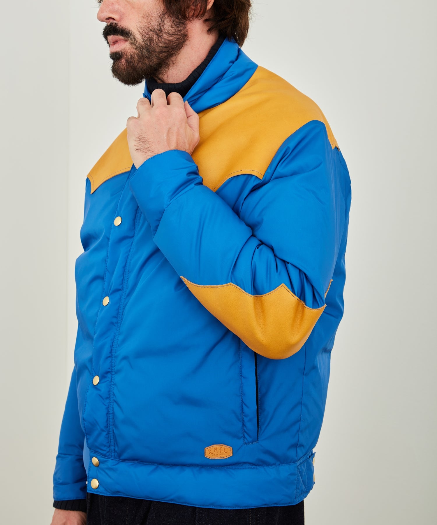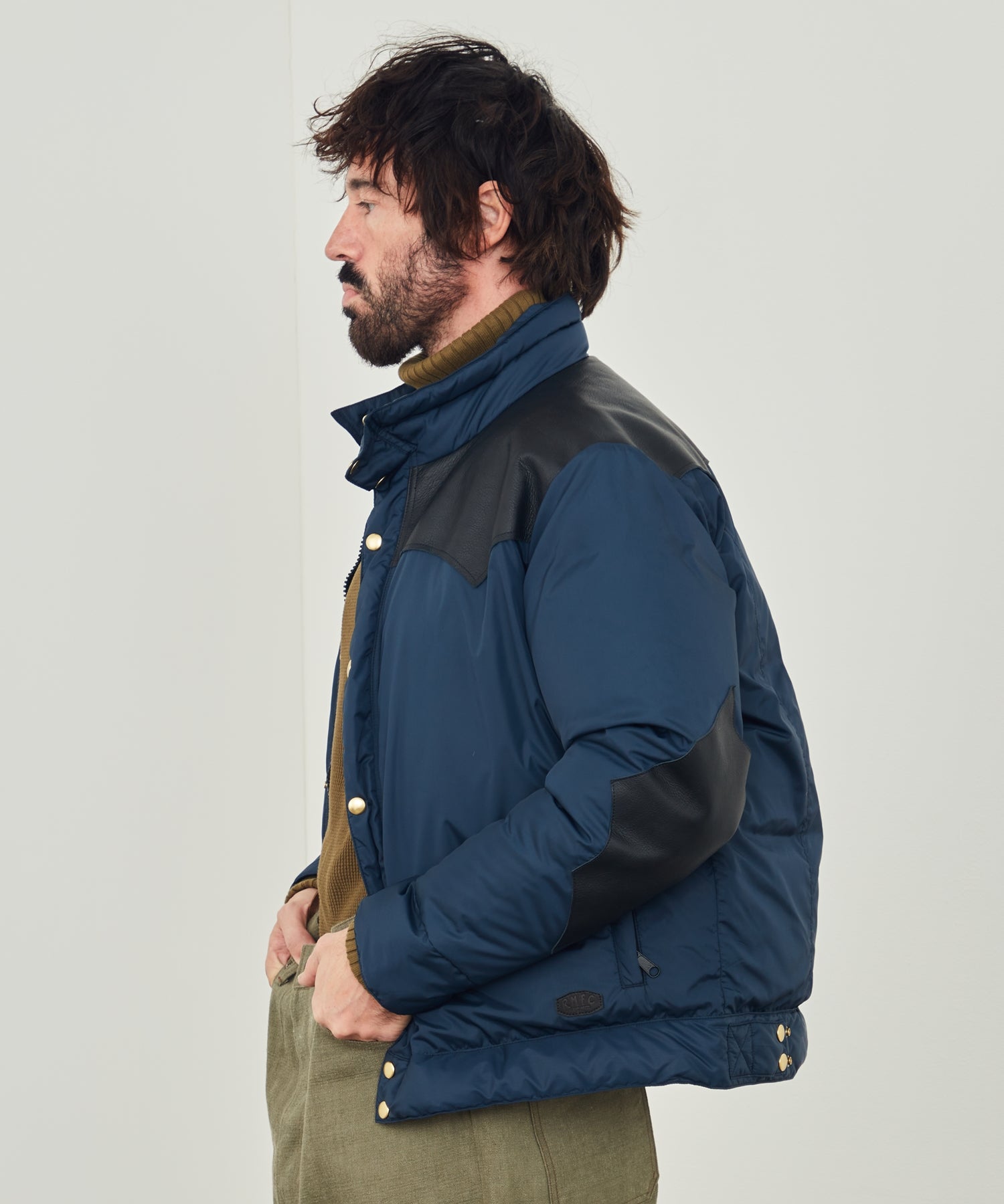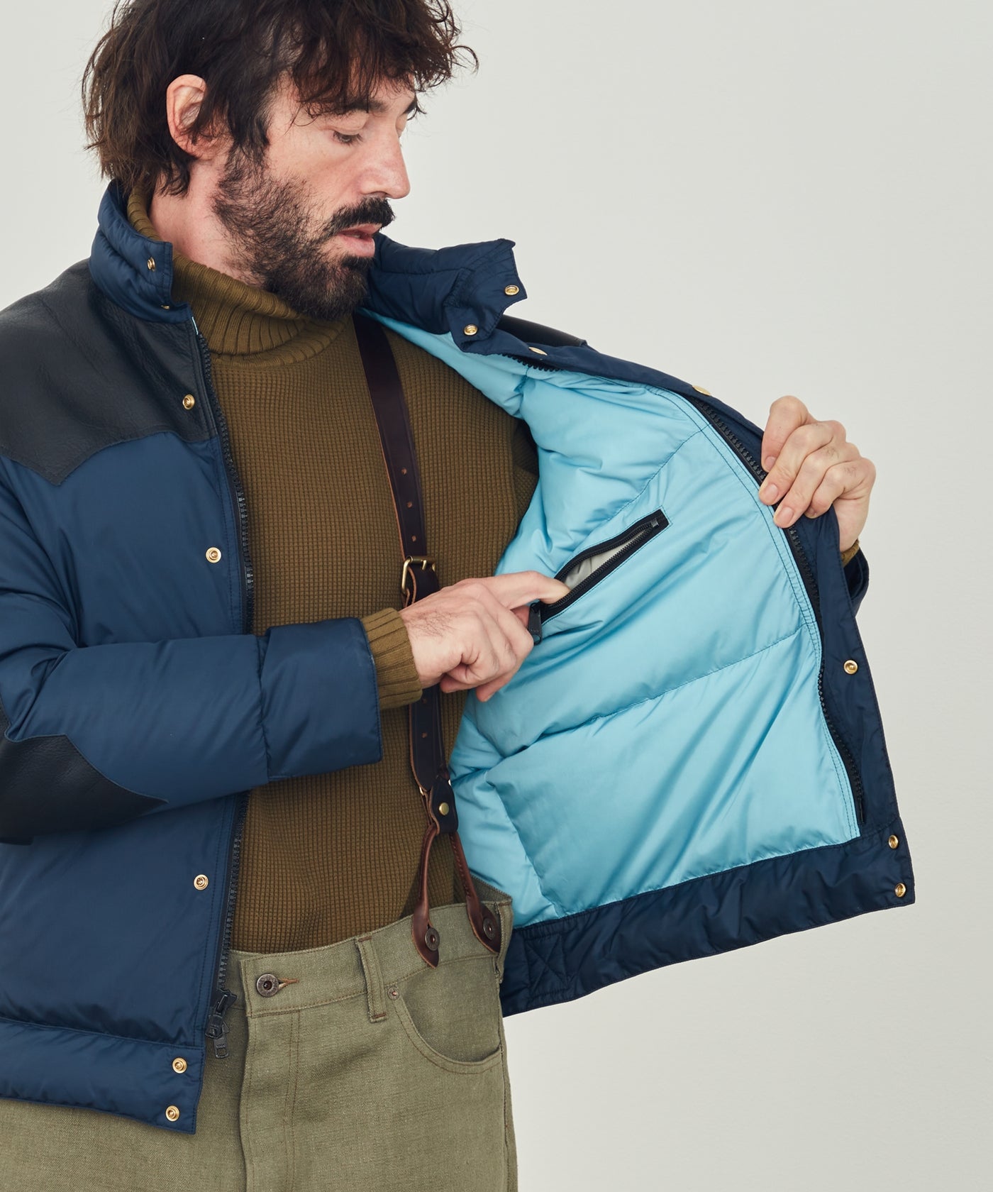 겉감과 안감은 70 데니어 오리지널 나일론 태피터를 사용했으며 충전재는 다운 90% 깃털 10%의의 700FP으로 보온성, 가벼움이 특징입니다. 유럽산 발수 다운을 사용하여 보온성이 뛰어납니다. 요크 부분의 가죽은 탄닌과 크롬의 콤비네이션 무두질의 표혁과 유연한 스웨이드 가죽을 사용했습니다.