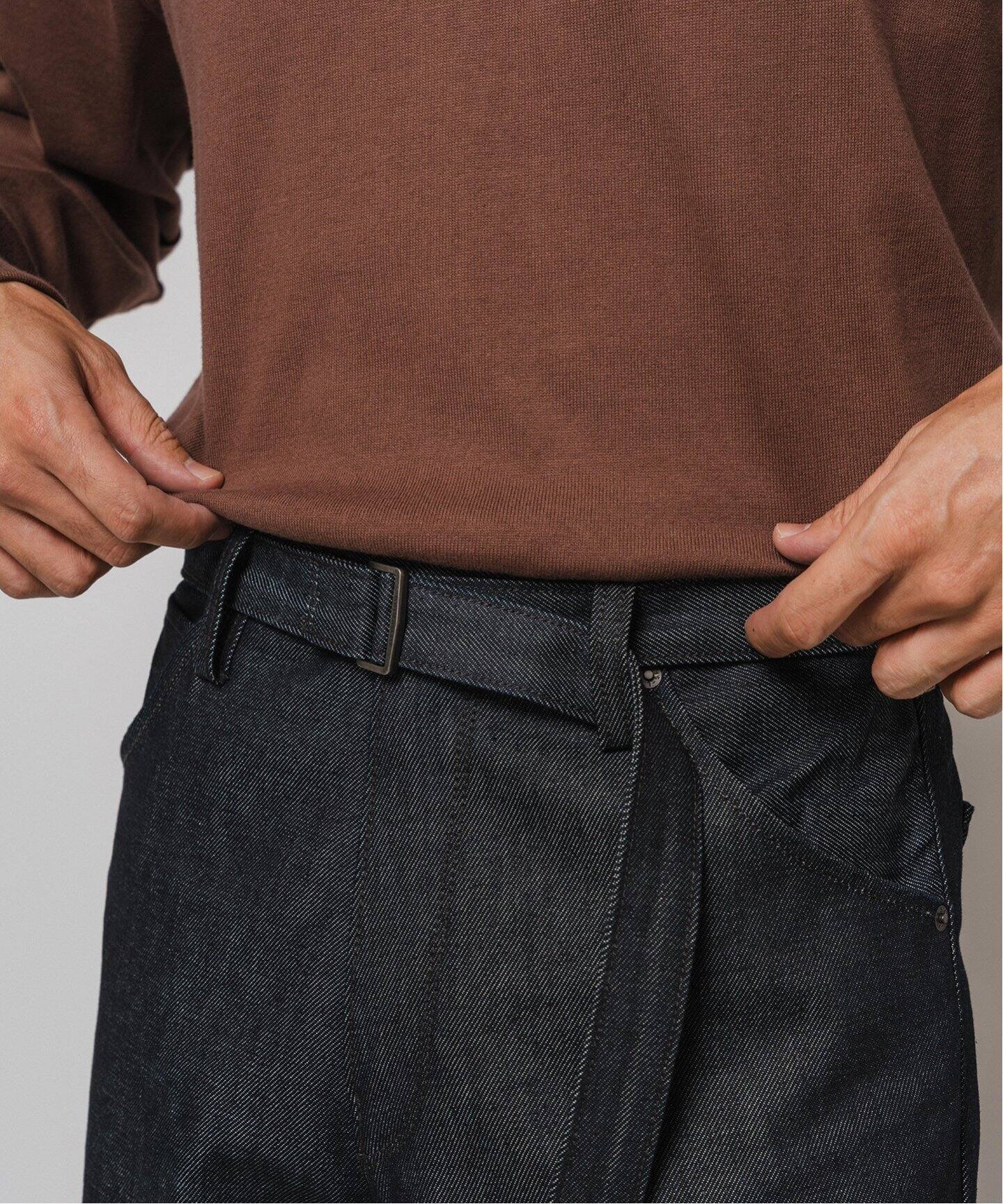 - 패턴에 정교하게 삽입된 비틀림 디테일 은 빈티지 데님의 멋을 현대적으로 재해석한 포인트.