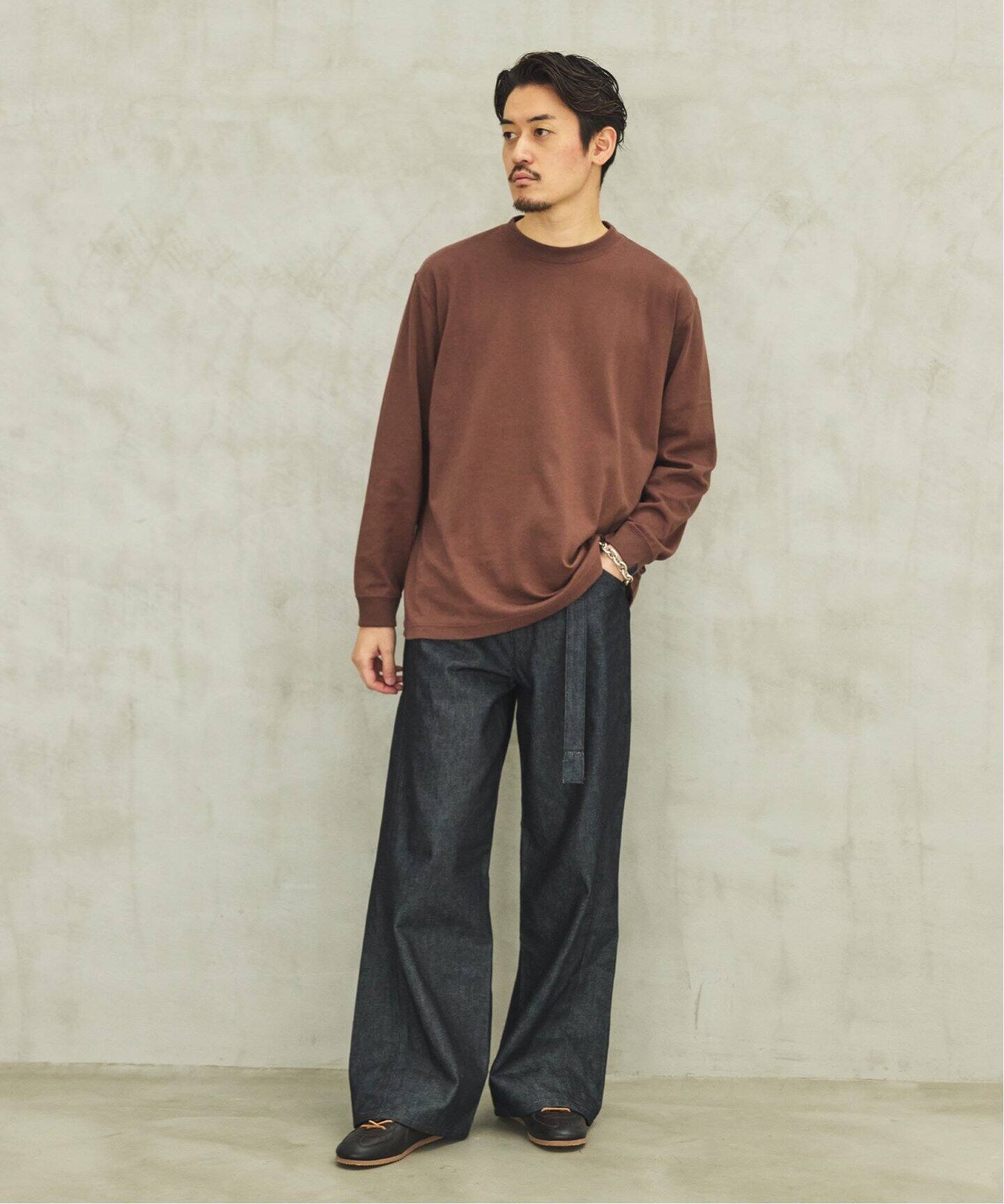 LEVI’S®의 벨트 포함 데님 팬츠 를 기반으로, 섬세한 디테일과 소재의 변화를 통해 고급스러움과 여유로운 무드 를 동시에 담아냈습니다.