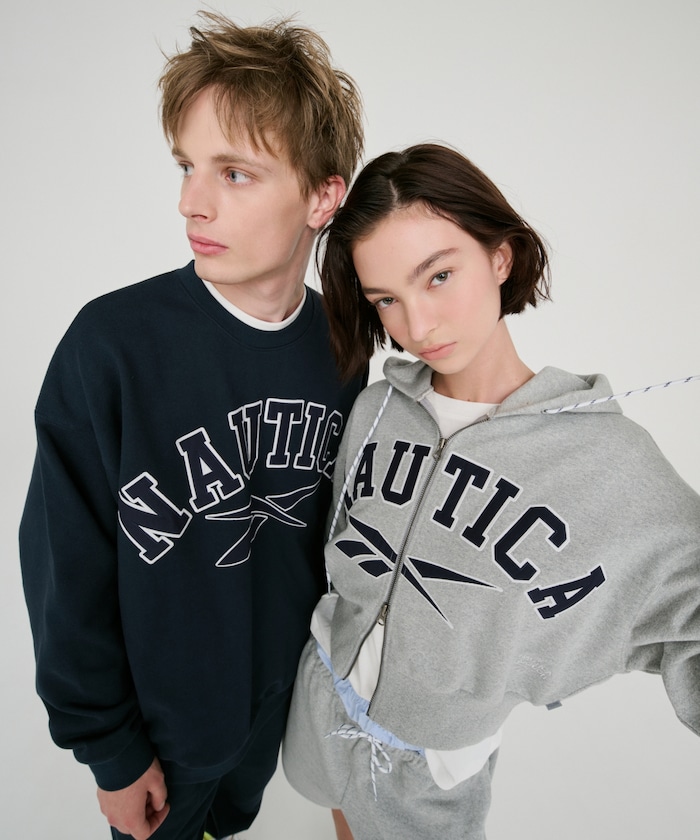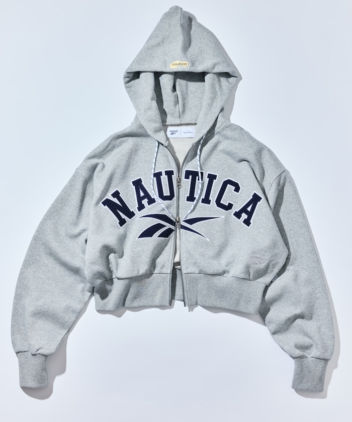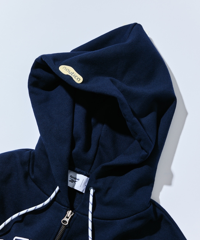 NAUTICA의 대표 아치 로고 와펜에 Reebok 로고를 더한 특별 사양 풀집업 파커