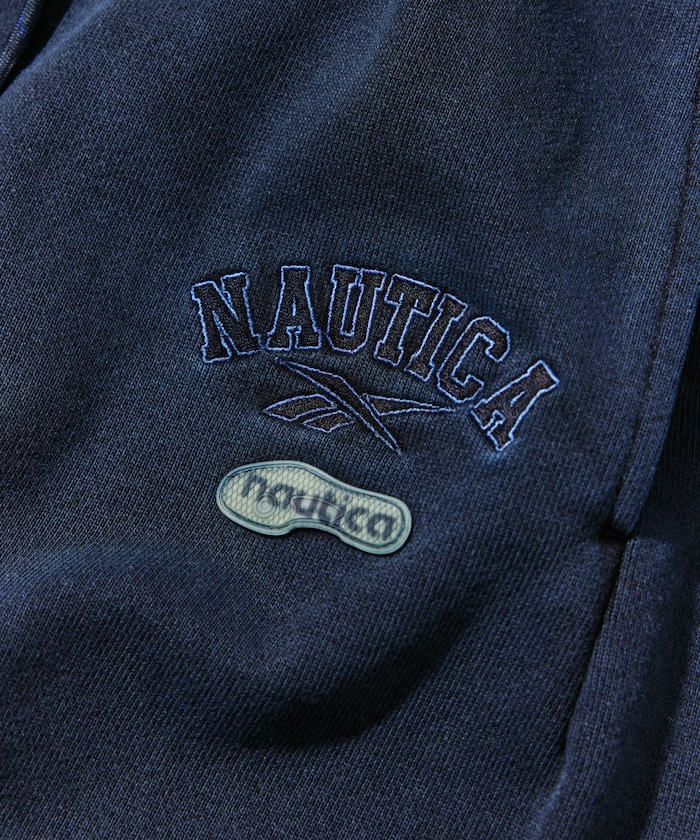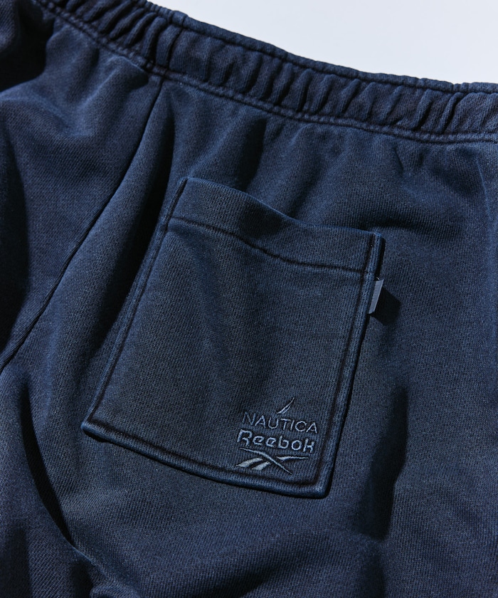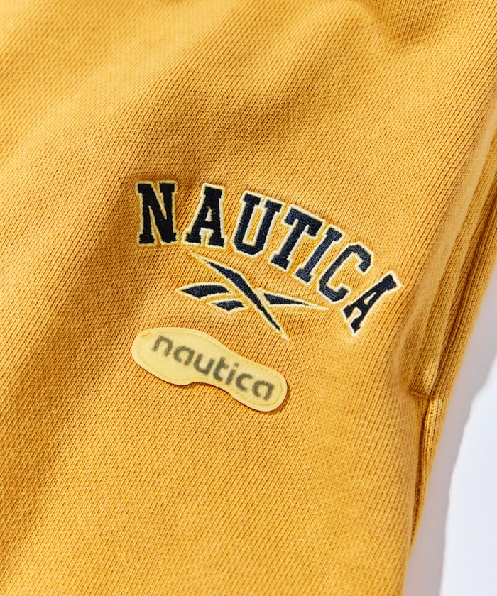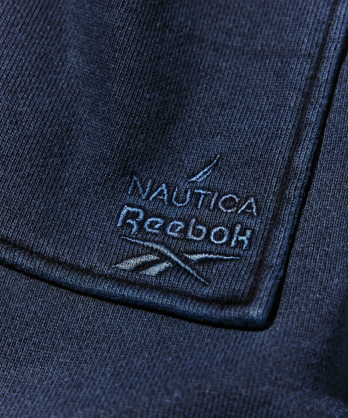 NAUTICA의 대표 아치 로고 와펜에 Reebok 로고를 더한 특별 아치 로고 디자인의 팬츠.