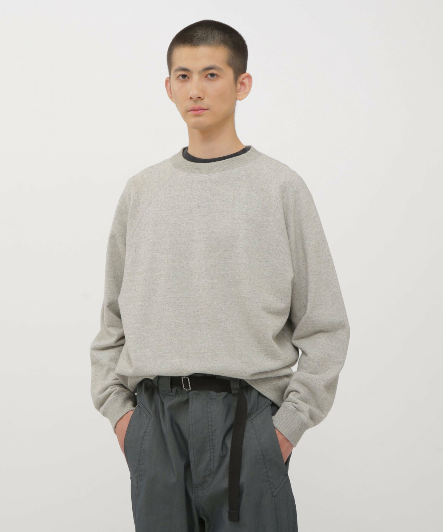 생산 과정에서 발생하는 재단 잔여물을 재활용한 업사이클 코튼으로 제작한 티셔츠입니다. 빈티지 스웨트를 참고한 라그랑 슬리브 컷과, 컴팩트한 기장감과 여유 있는 몸판이 조화를 이루는 실루엣으로 디자인되었습니다. 뒷면에는 MHL 로고 스탬프가 있어, 착용과 세탁을 반복할수록 자연스러운 빈티지 경년 변화를 즐길 수 있습니다.