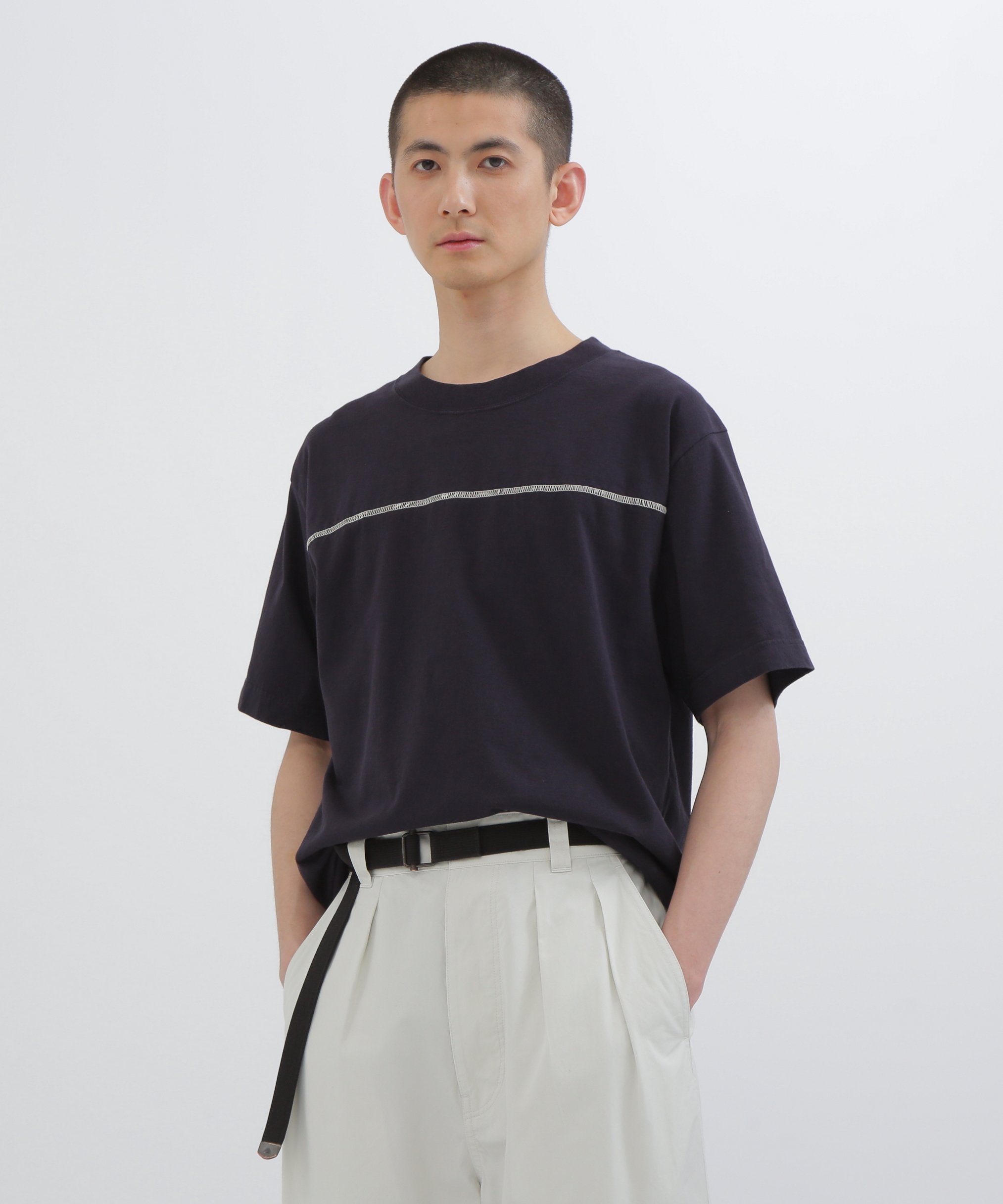 앞면에는 빈티지 티셔츠를 연상시키는 절개 디테일과 배색 이중 스티치를 넣어 디자인에 포인트를 주었습니다.