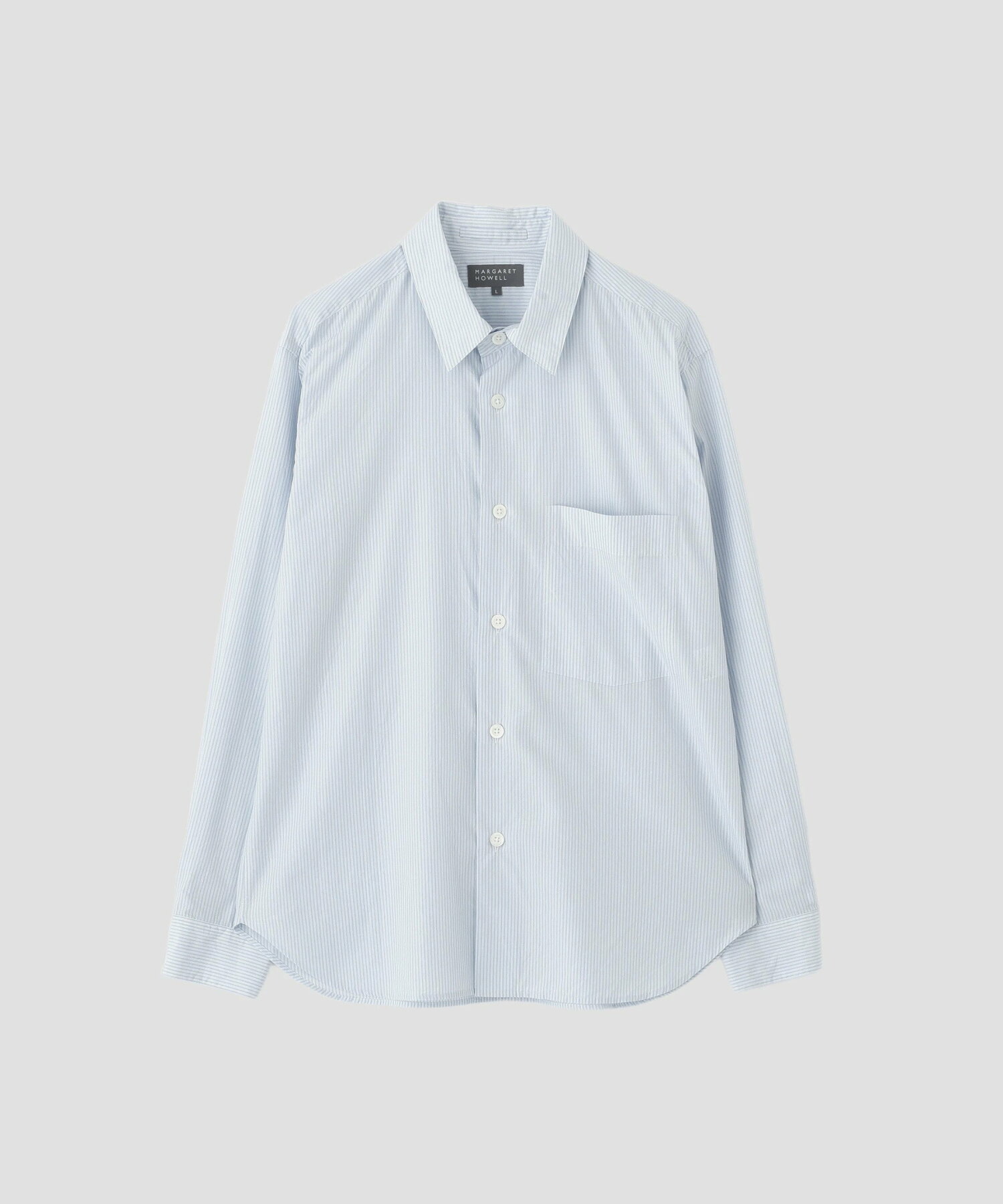 고급 코튼에 실크를 블렌딩한 섬세하고 매끄러운 질감의 스트라이프 셔츠입니다. 마가렛 호웰 셔츠 컬렉션 중 가장 기본이 되는 클래식한 실루엣을 기반으로 제작되었으며, 군더더기 없는 디자인으로 다양한 스타일에 자연스럽게 어우러집니다.
