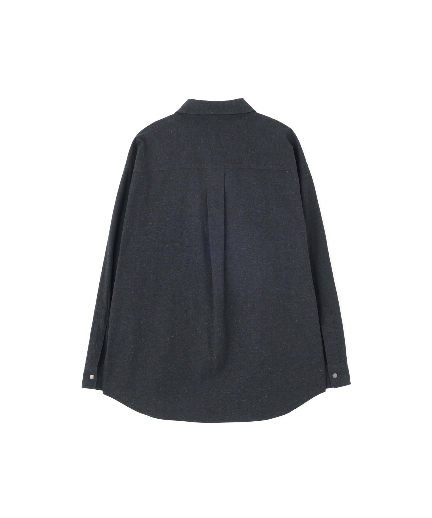 웨스턴 셔츠를 연상케 하는 스냅 버튼 플래킷과 플랩 포켓, 그리고 워크웨어 감성을 살린 나무 소재 칼라 버튼, 백 요크, 이중 소매 설계 등의 디테일이 있습니다.