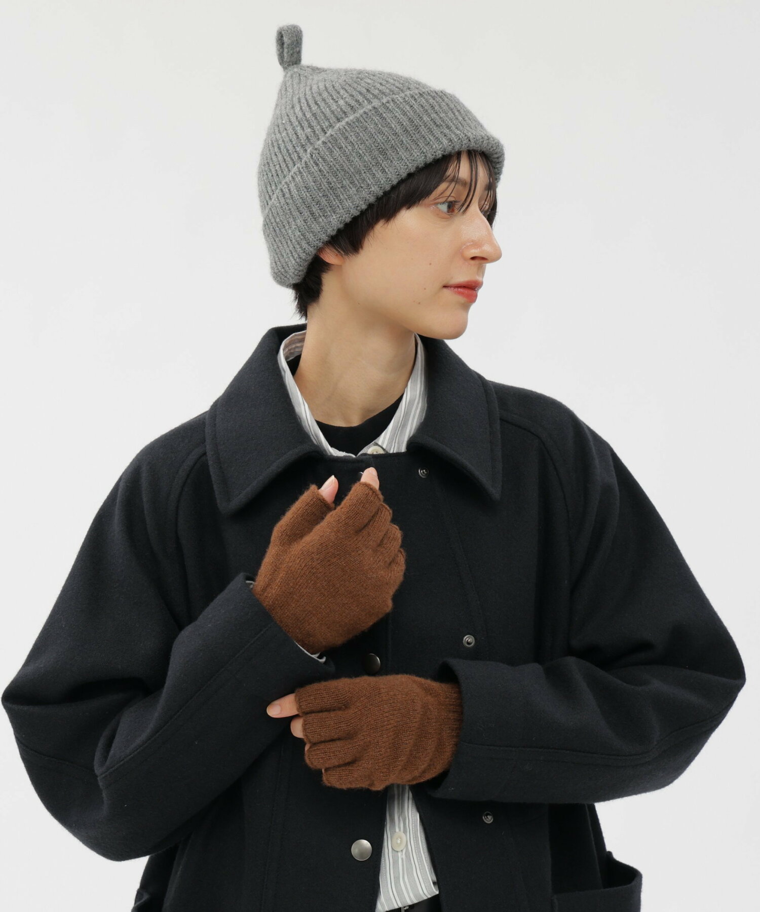스코틀랜드산 램즈울로 짜낸 핑거리스 니트 장갑입니다. 자연스러운 색감과 미니멀한 디자인의 조화가 돋보이며, MHL 특유의 담백한 분위기를 느낄 수 있는 아이템입니다.