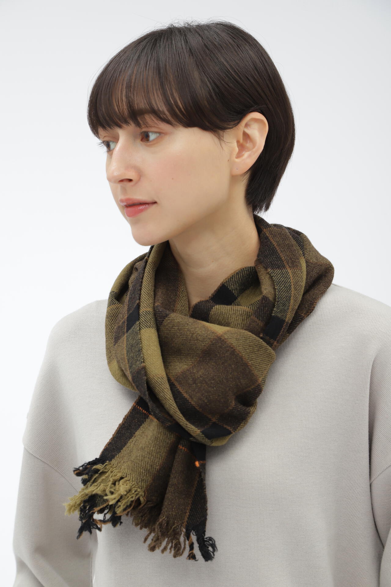 울 소재의 원사를 장인이 하나하나 정성스럽게 짠 스카프. 다양한 색상의 체크 패턴과 컬러입니다.