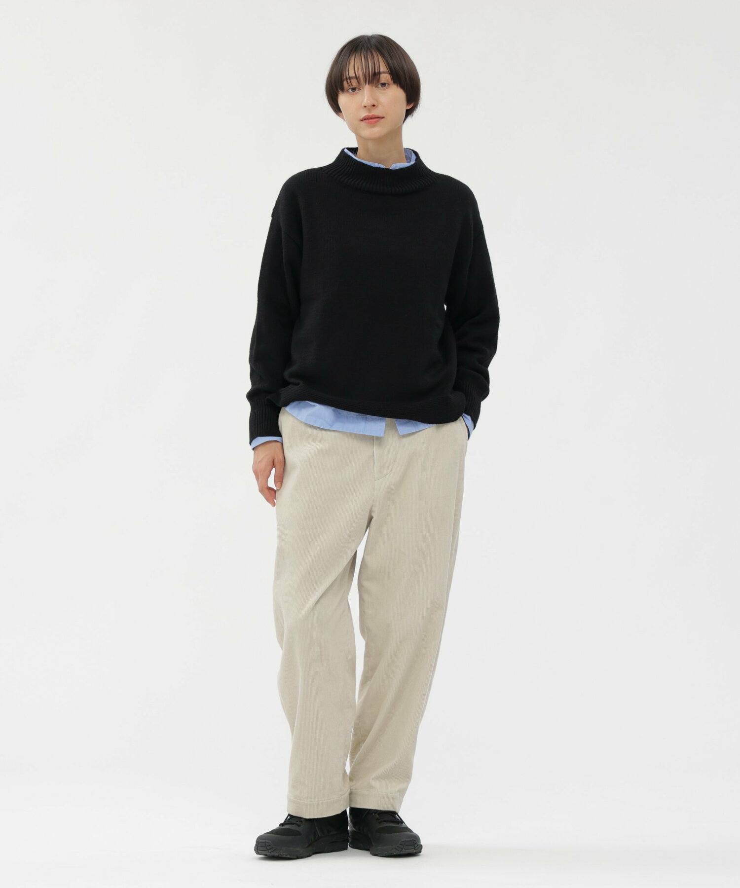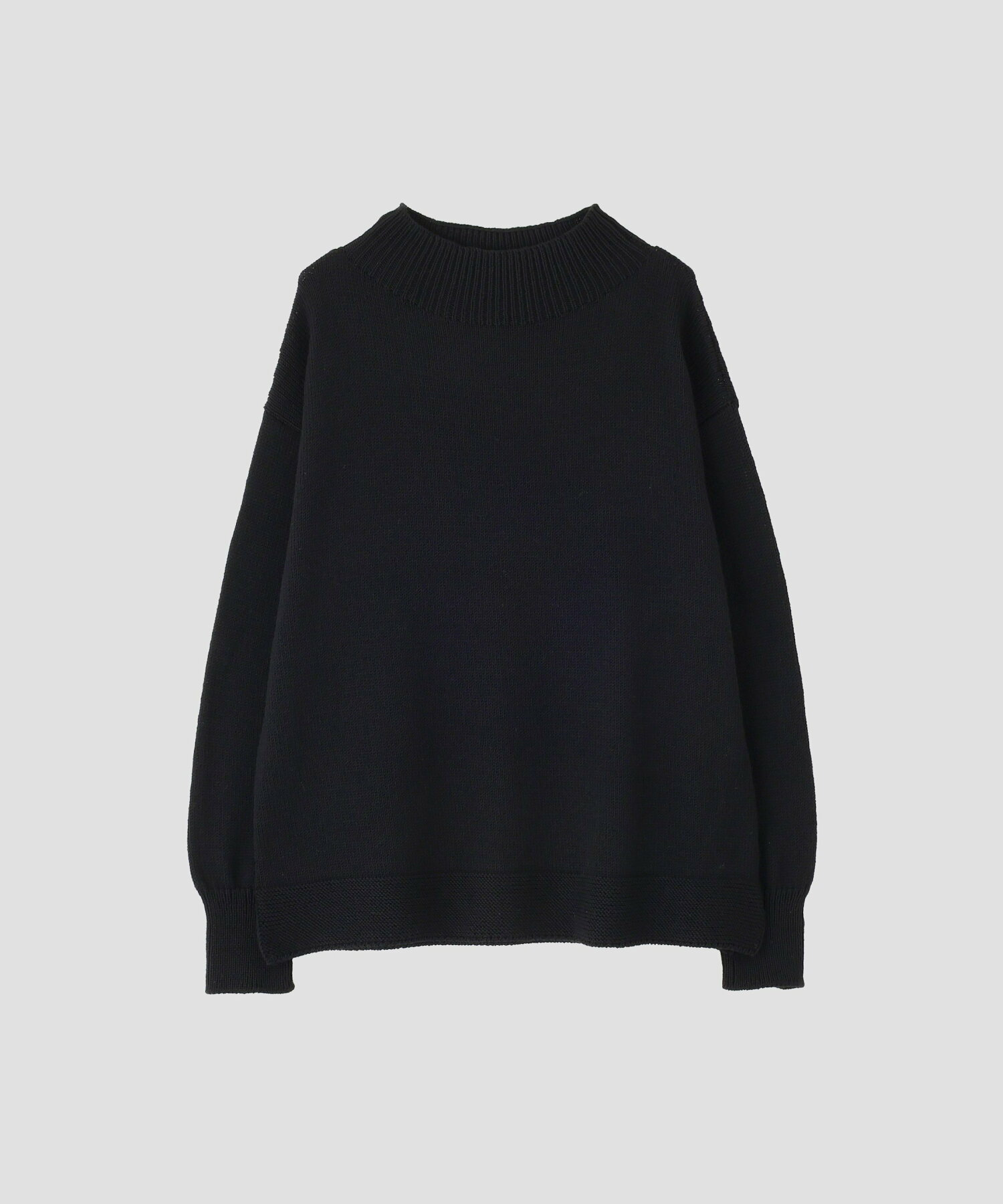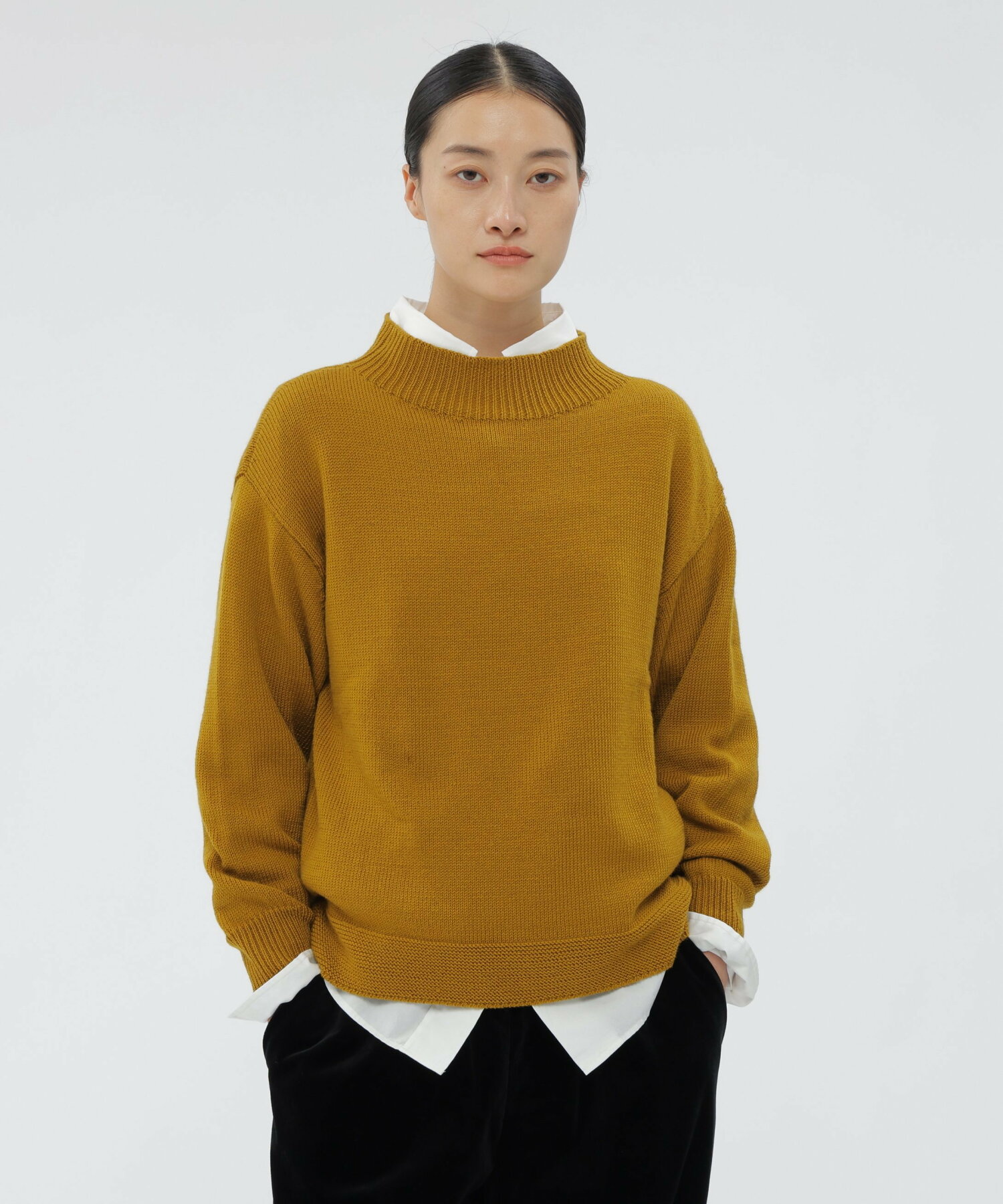 심플한 하이넥 디자인에 밑단은 전통적인 건지 스웨터를 연상시키는 가터 짜임이며 어깨와 몸통 실루엣을 깔끔하게 정리해 균형 잡힌 착용감을 제공합니다.