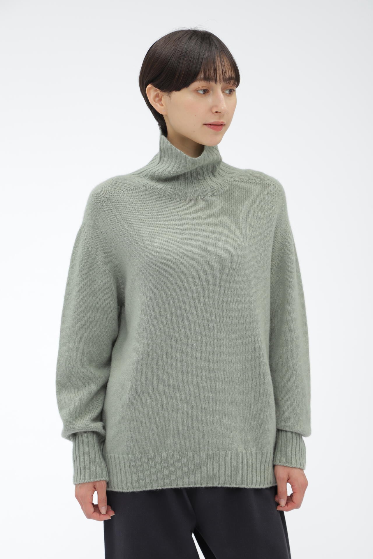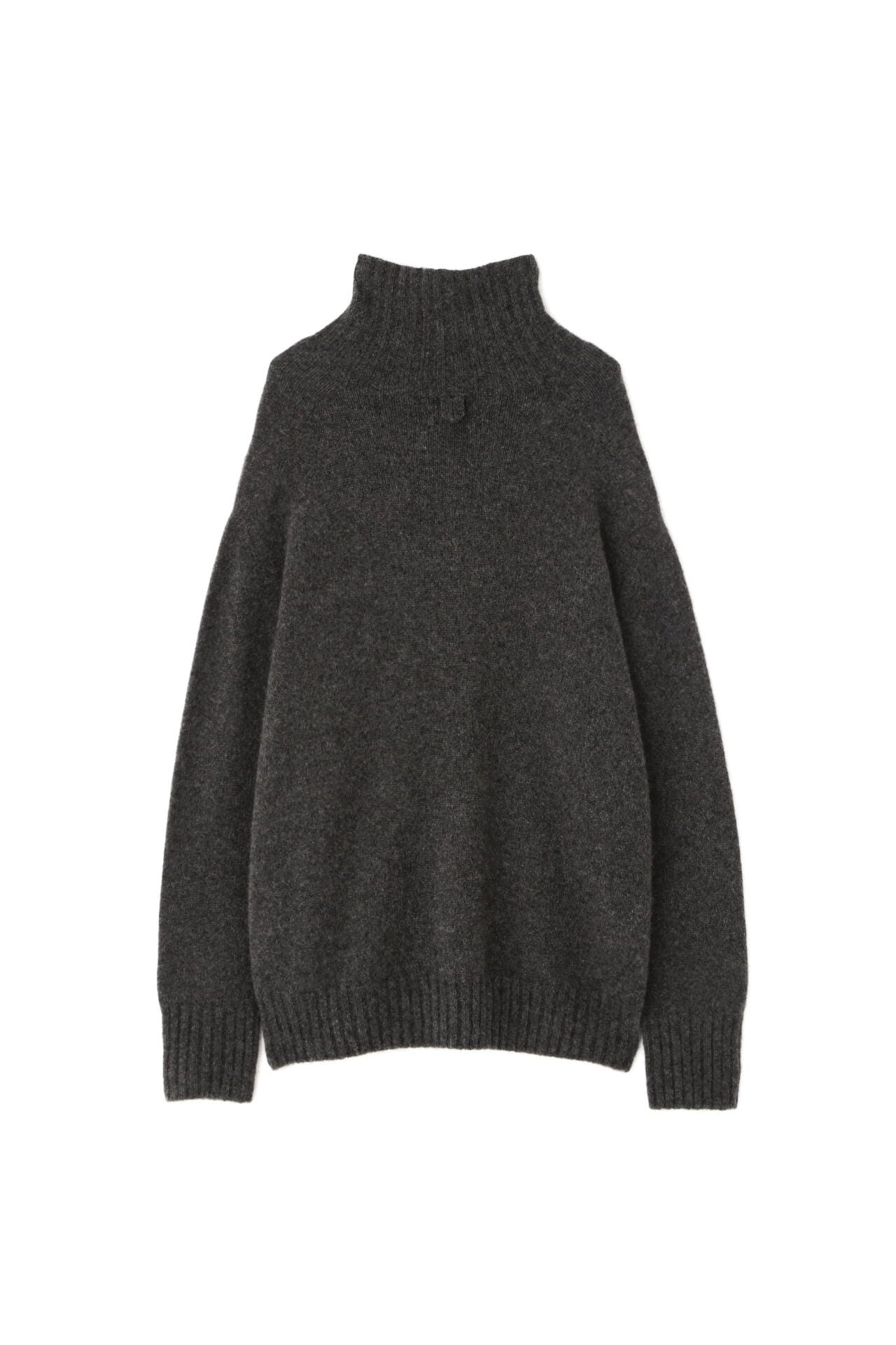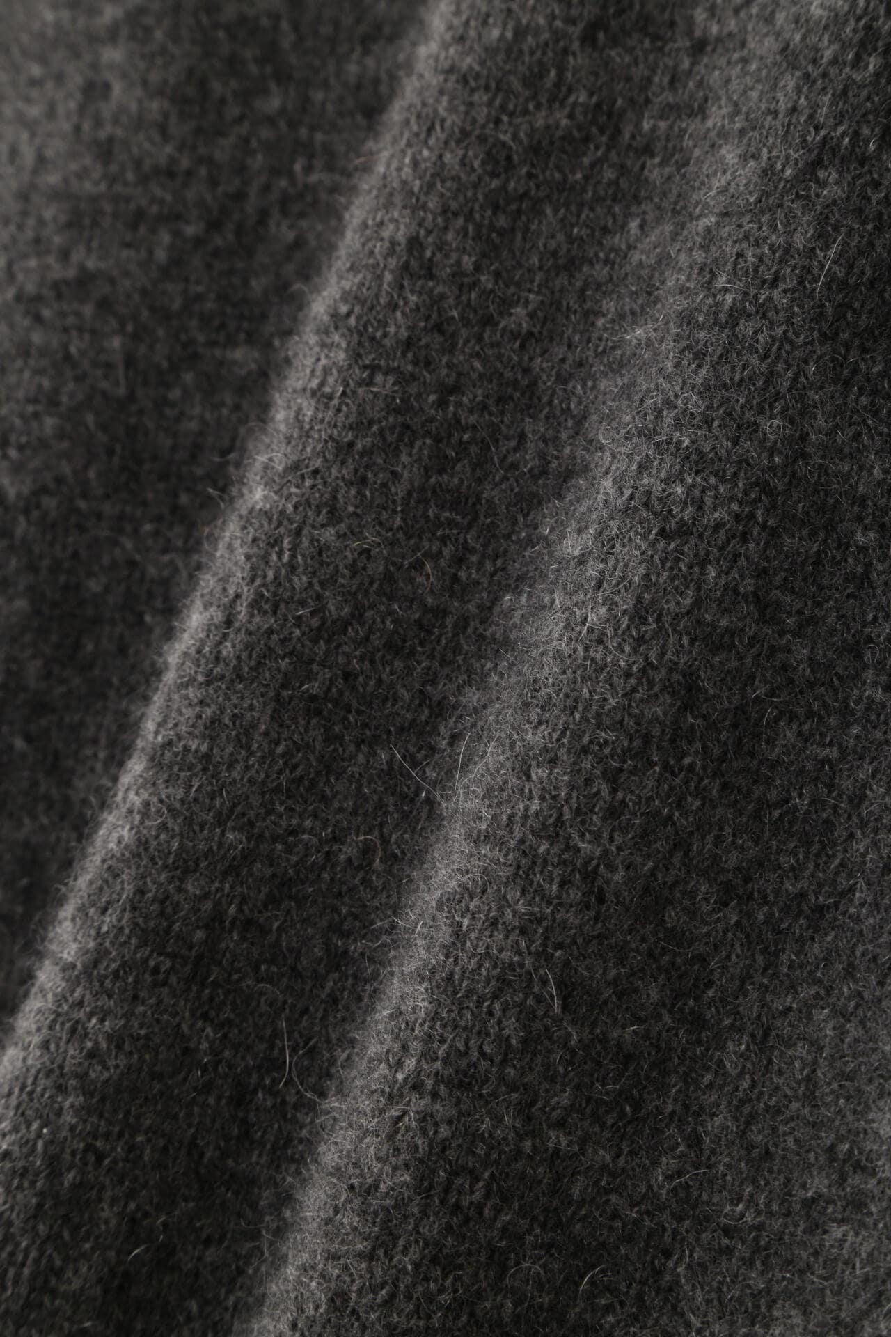 캐시미어 소재의 니트. 가볍고 부드러운 질감과 실크같은 광택을 가지고 있습니다. 긴 길이로 중간 힙을 커버합니다.