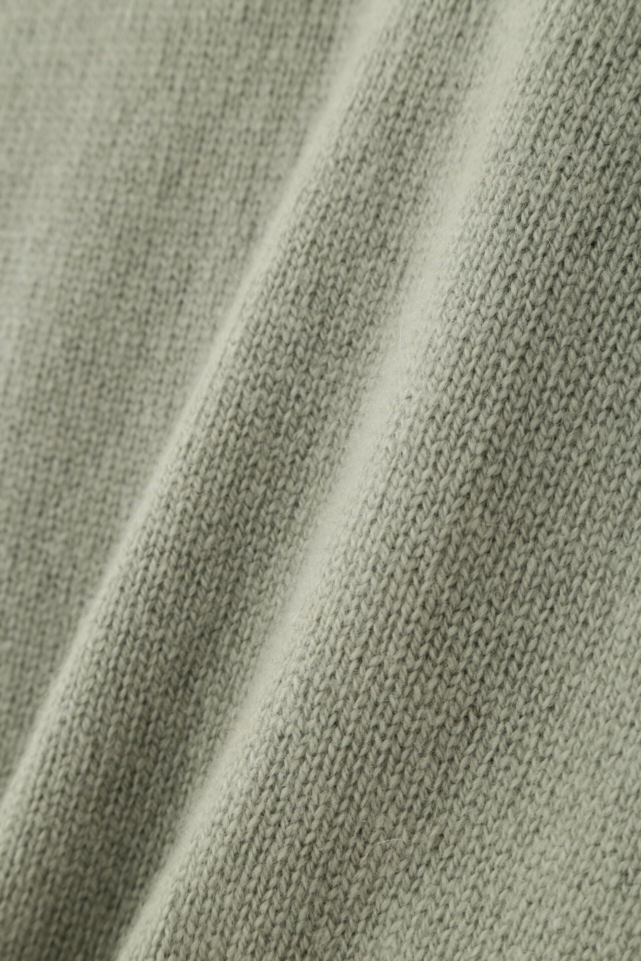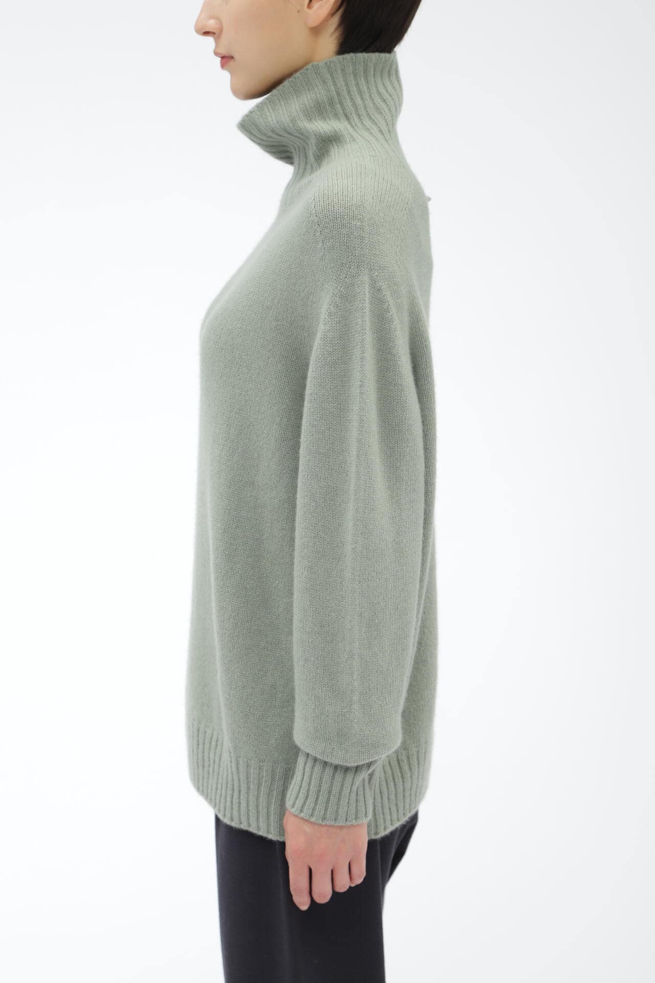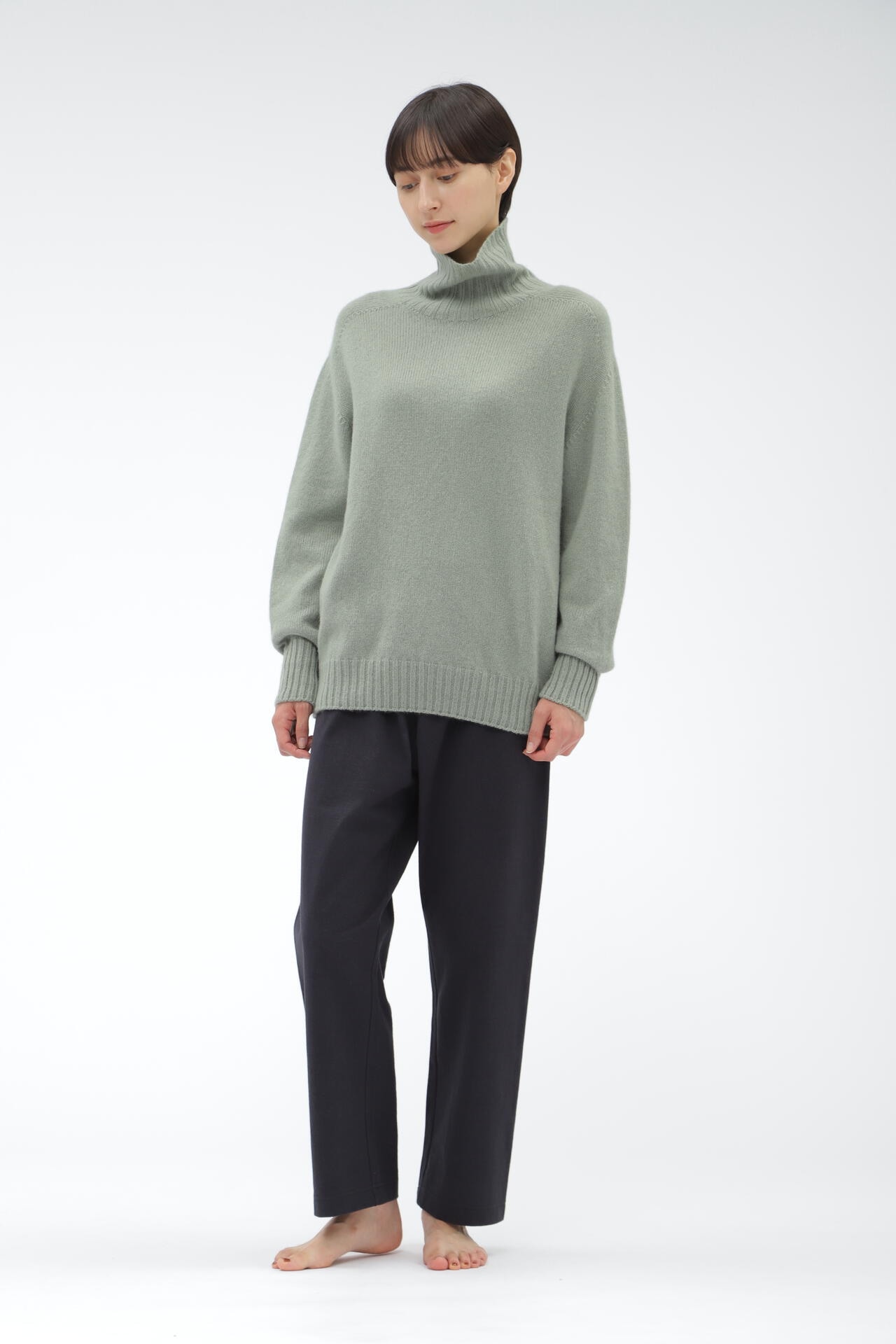 캐시미어 소재의 니트. 가볍고 부드러운 질감과 실크같은 광택을 가지고 있습니다. 긴 길이로 중간 힙을 커버합니다.