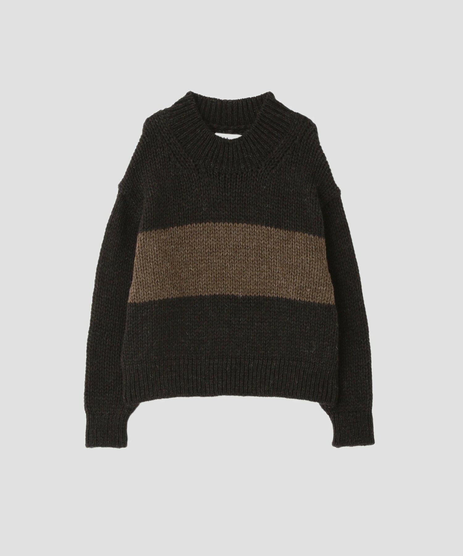 에보니 컬러의 바디에 브라운 스트라이프를 그래픽적으로 더한 로게이지 니트 는,