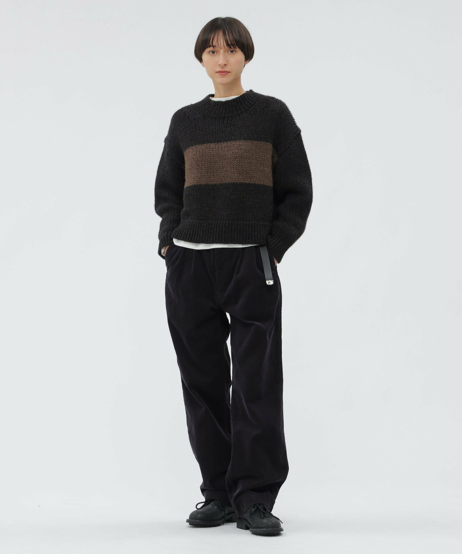 핸드니트 같은 따뜻한 분위기를 지니면서도 루즈핏과 컴팩트한 길이감 의 조화가 신선한 균형을 이룹니다.