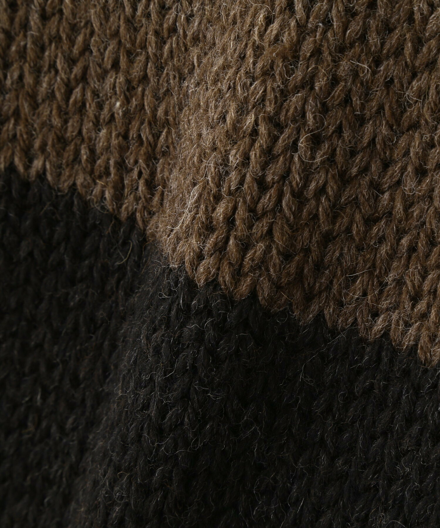 양모 본래의 색을 그대로 살린 무염색 브라운 과 블랙을 혼합해 방적한 에보니 컬러를 사용한 니트