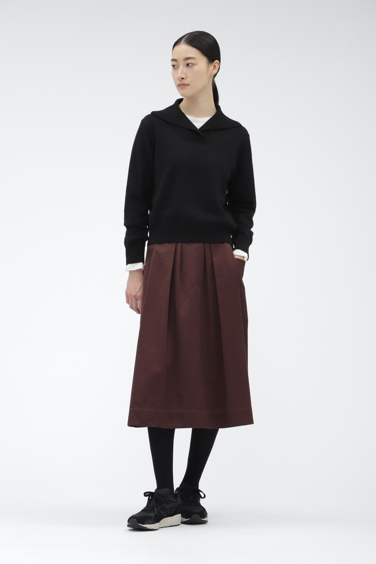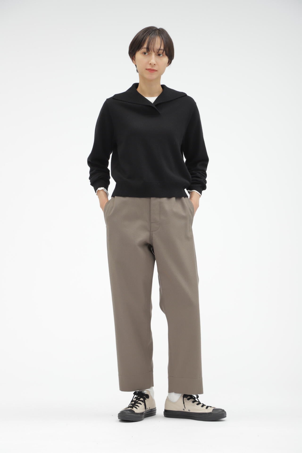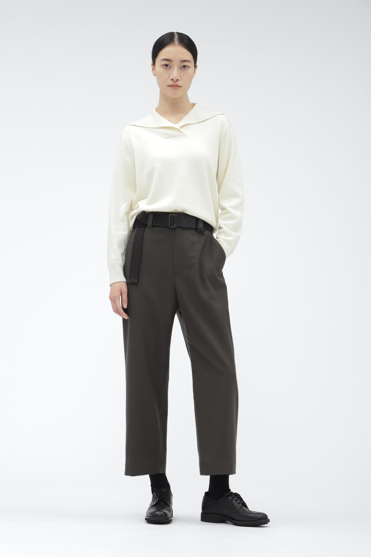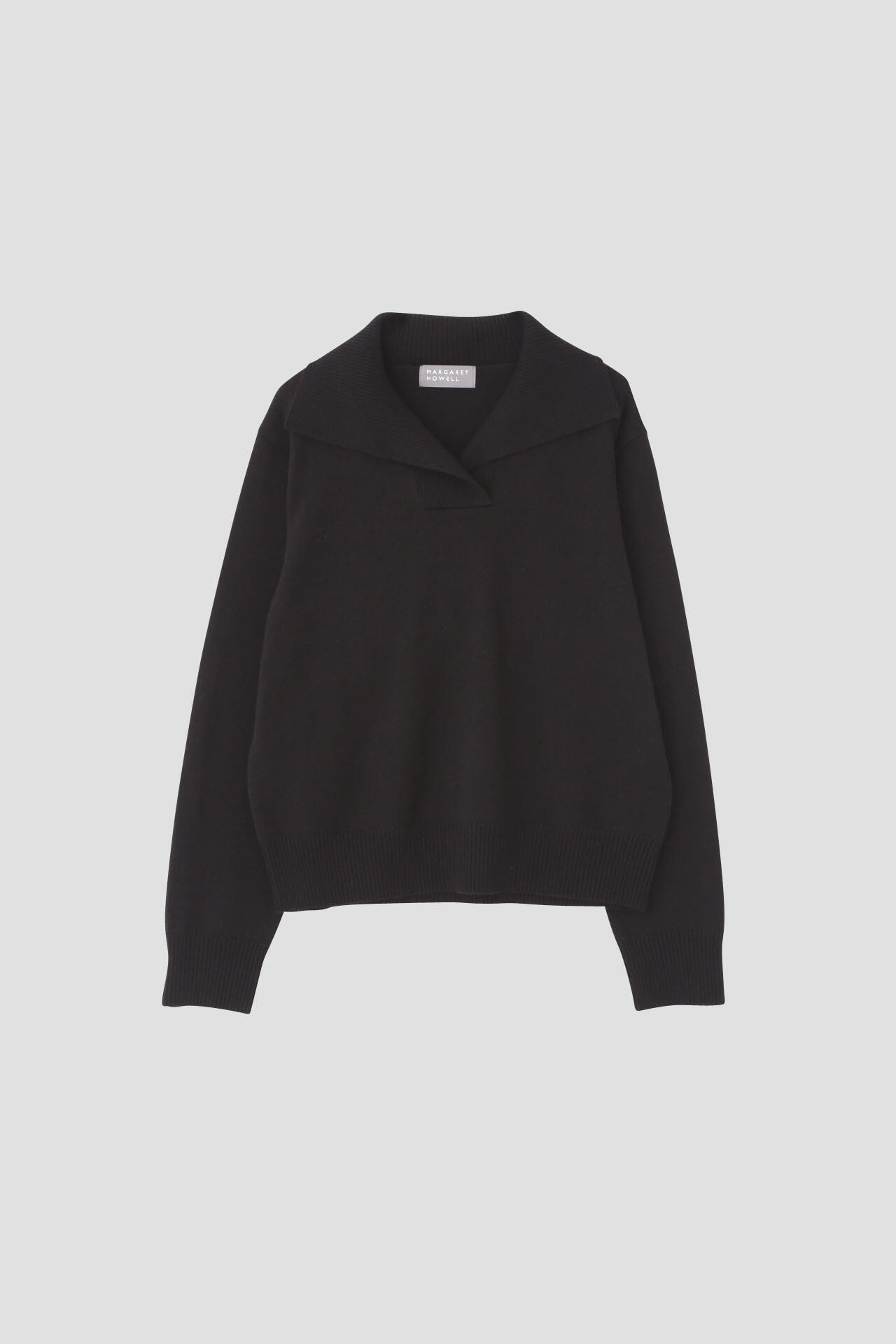 울 소재의 세일러 칼라 니트. 오픈 넥 디테일이 스포티한 인상을 줍니다.