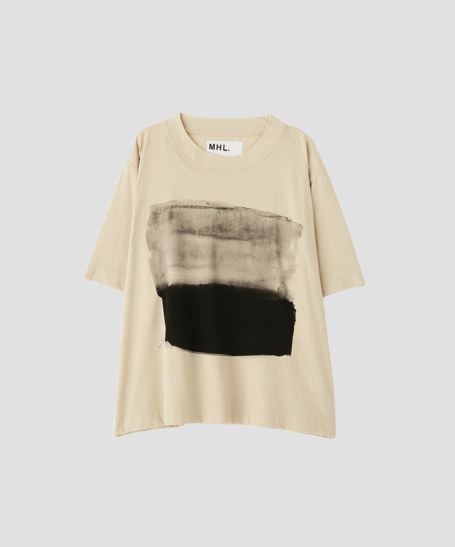 수채화로 그린 블록 스트라이프 무늬를 실크스크린 기법으로 표현한 프린트 디자인이 특징입니다.