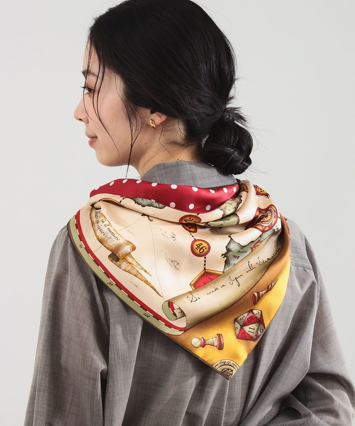 65cm 정사각형 스카프를 대각선으로 잘라 두 가지 패턴을 양면으로 즐길 수 있는 삼각형 스카프