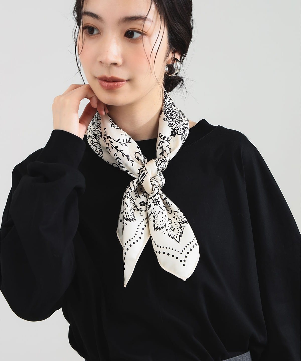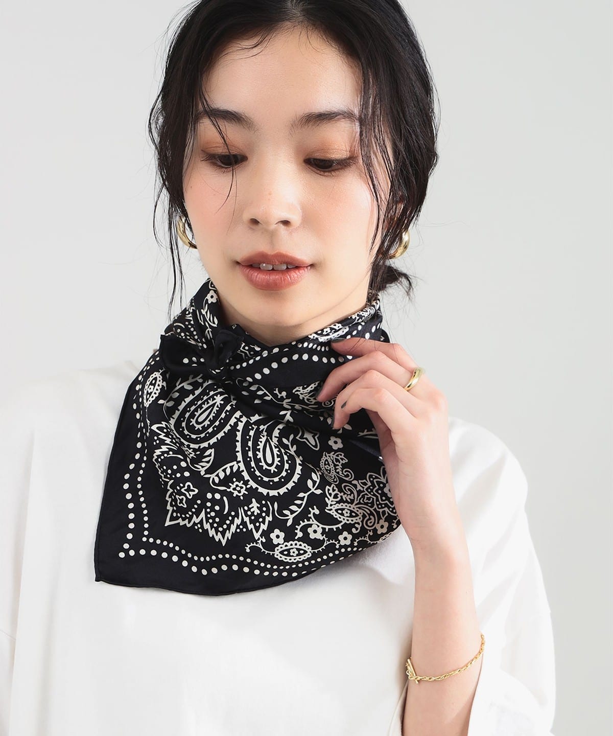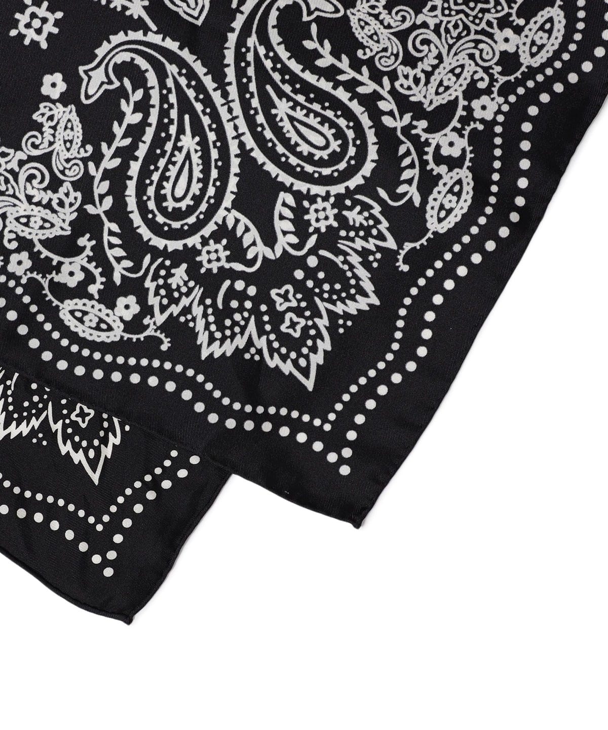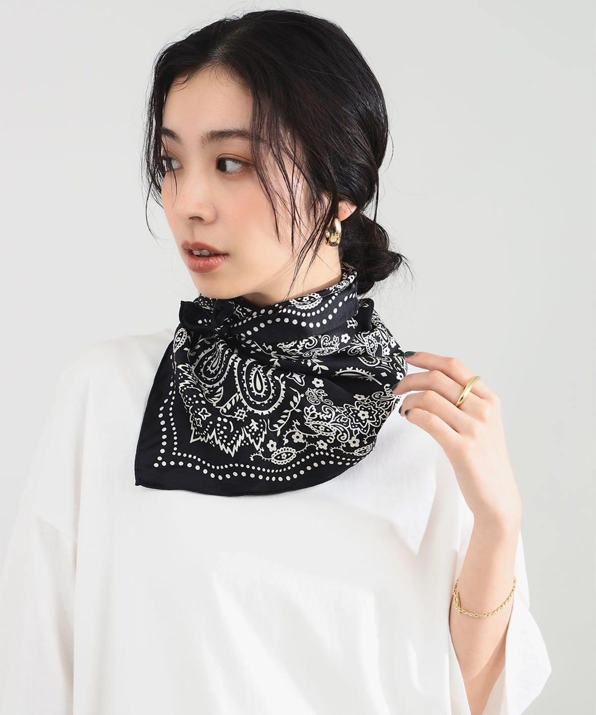 페이즐리 패턴을 모티브로 한 섬세한 터치의 반다나 스타일 스카프 입니다.