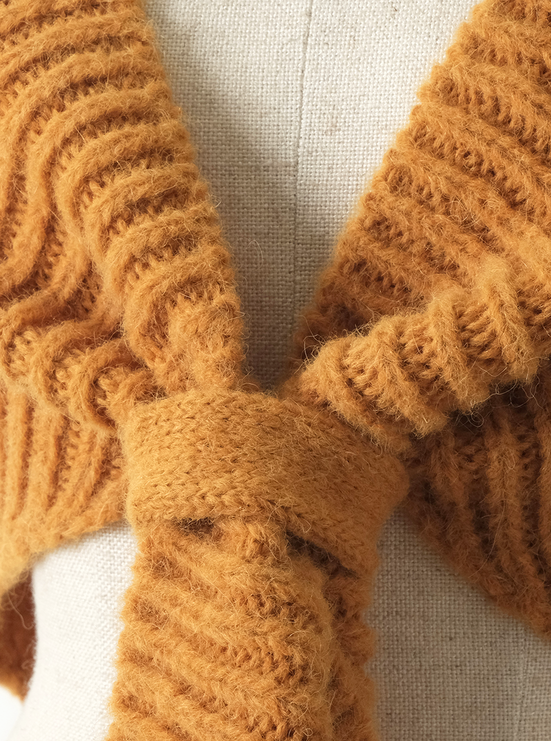 부드러운 질감이 특징인 파인 알파카에, 메리노울을 중심으로 한 기모사를 여러 가닥 함께 사용해 로우게이지로 편직한 스톨입니다. 실 자체가 가진 자연스러운 볼륨 덕분에 독특한 입체감이 살아 있으며, 내추럴한 짜임도 포인트입니다. 파인 알파카 특유의 가벼운 착용감과 높은 보온성을 동시에 갖춰, 겨울철 데일리로 활용하기 좋은 아이템입니다.