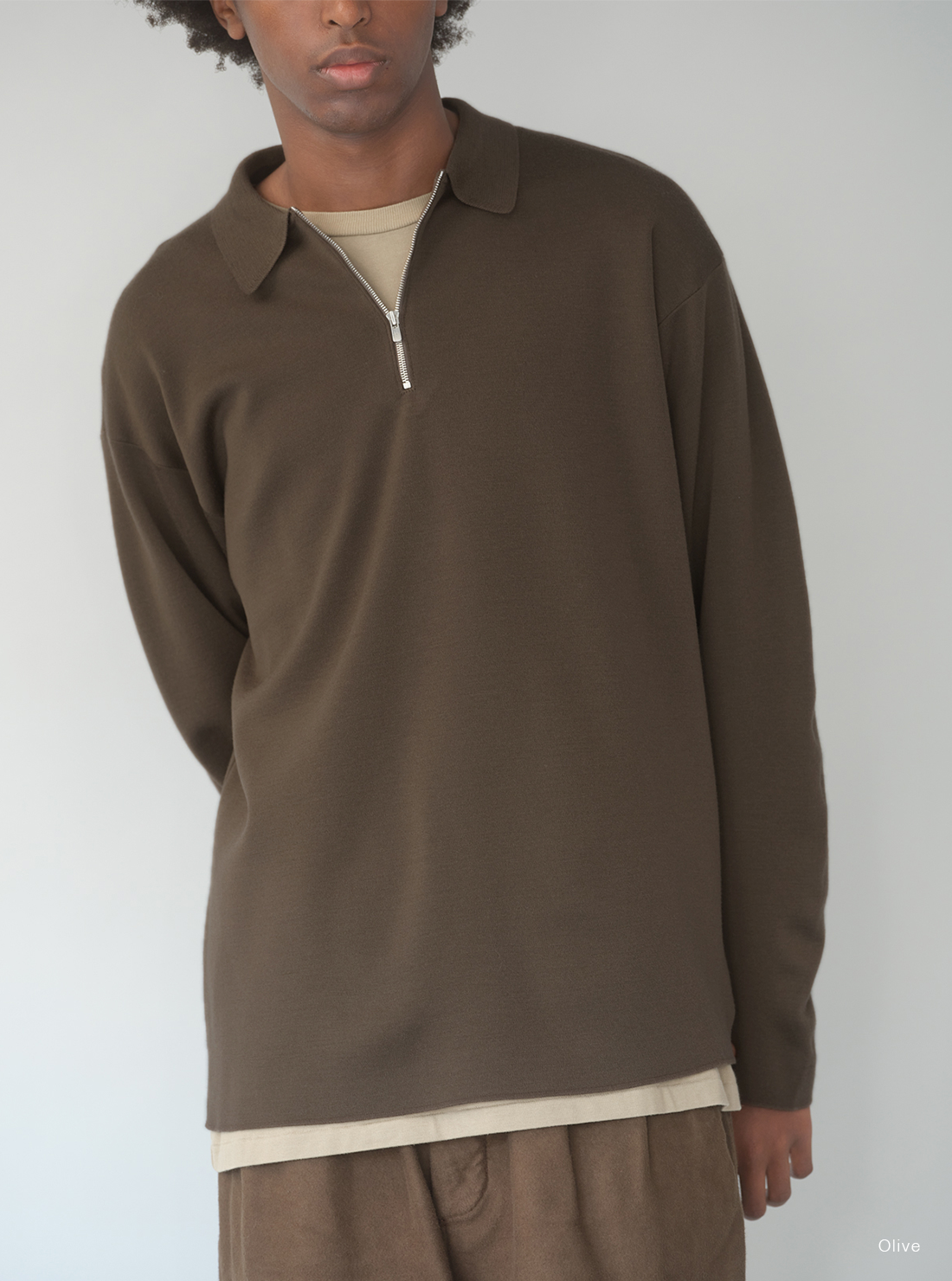 바토너 32G SMOOTH WOOL POLO HALF ZIP