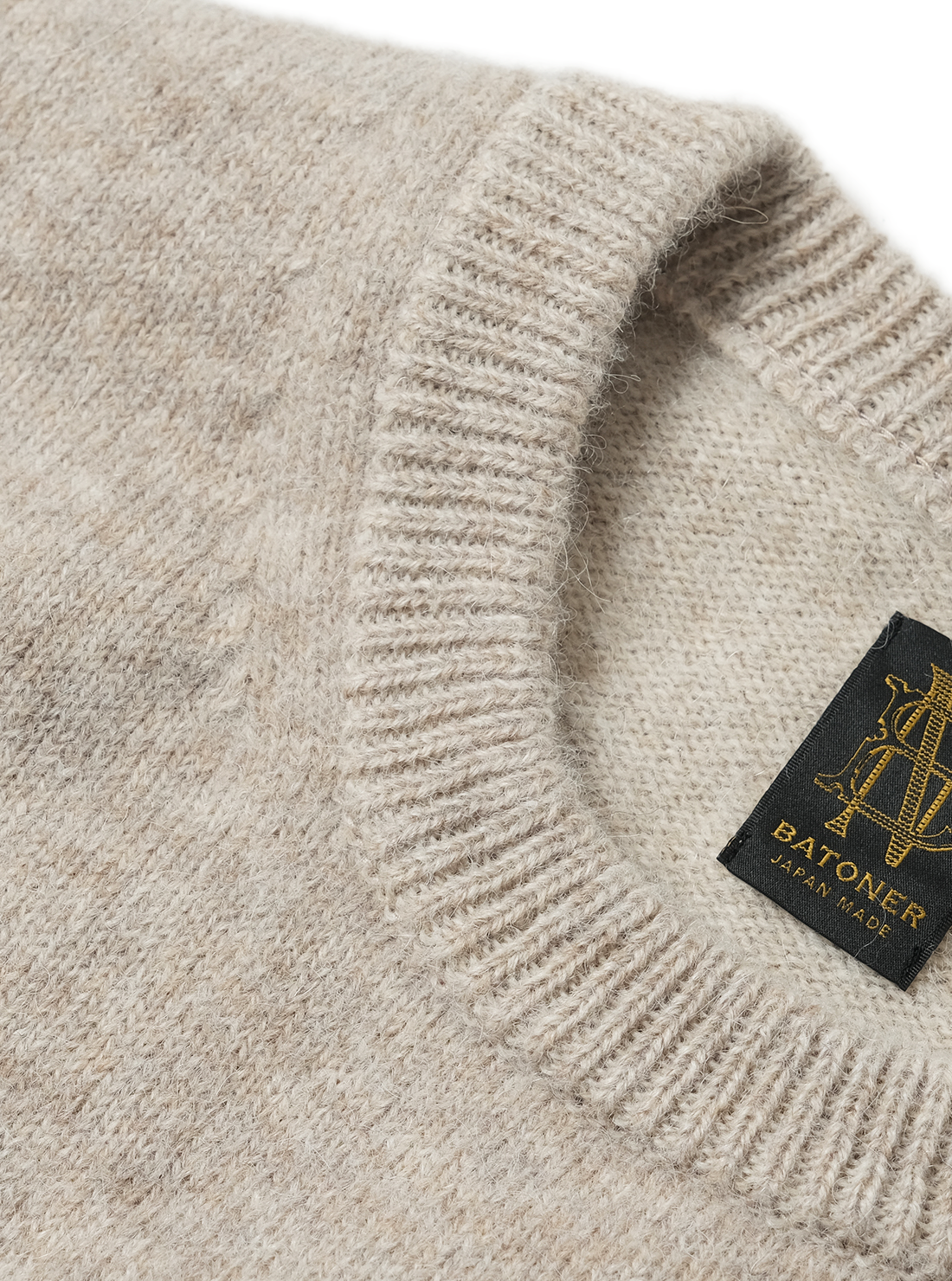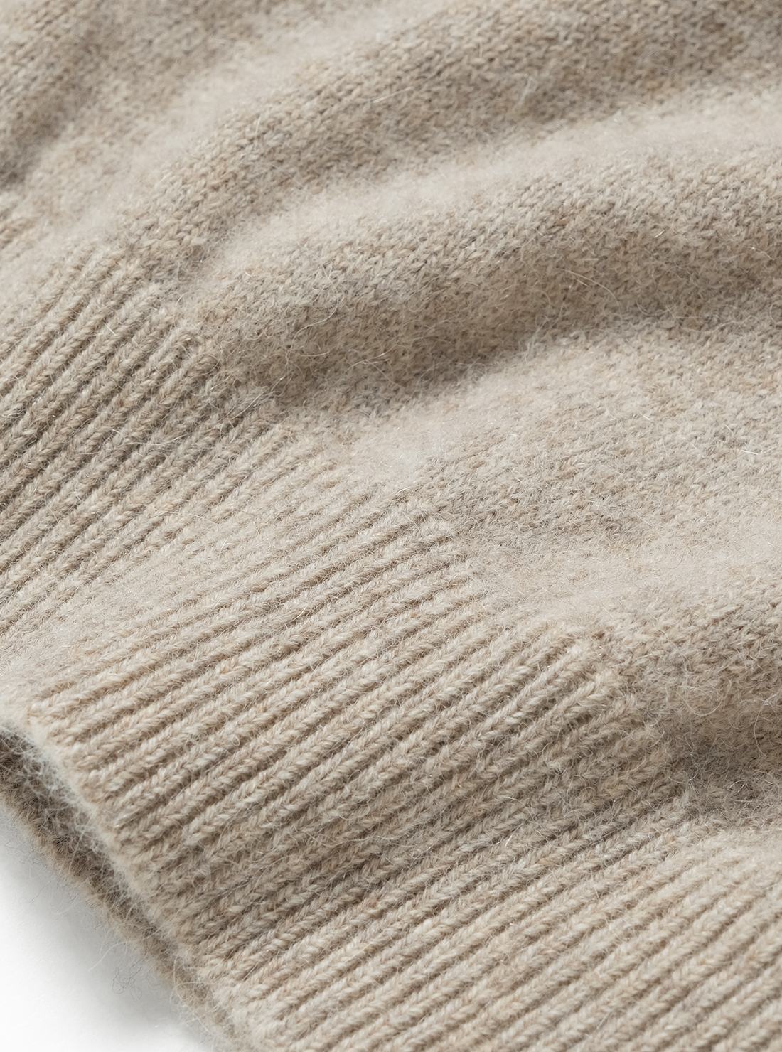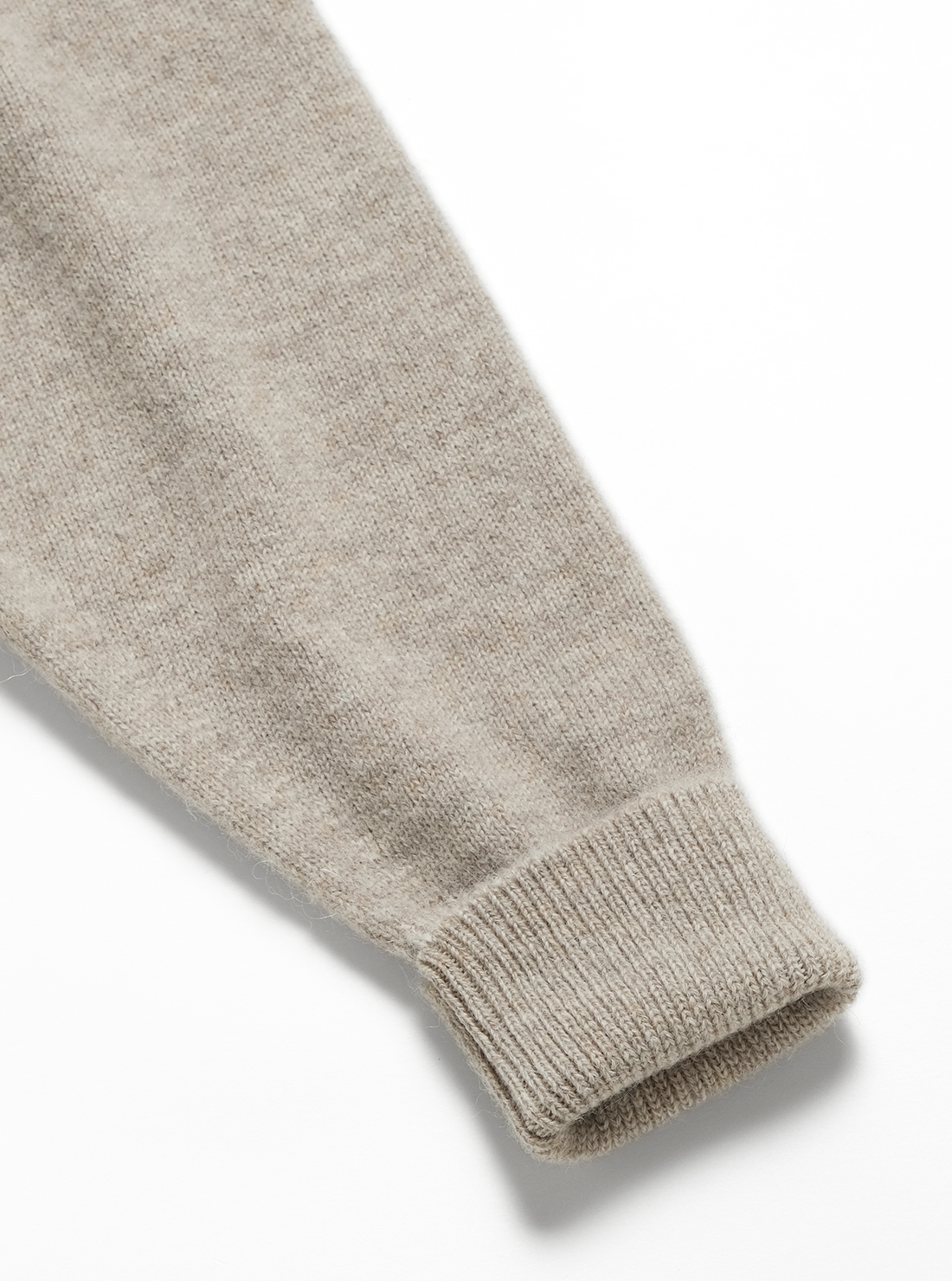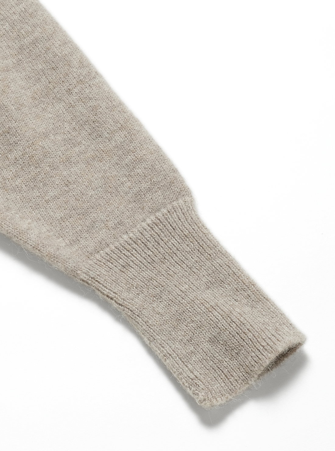 베이비 알파카 특유의 포근함과 가벼운 공기감으로 따뜻하게 착용할 수 있으며, 소매 리브는 길게 디자인되어 자연스럽게 접어 입을 수도 있습니다.