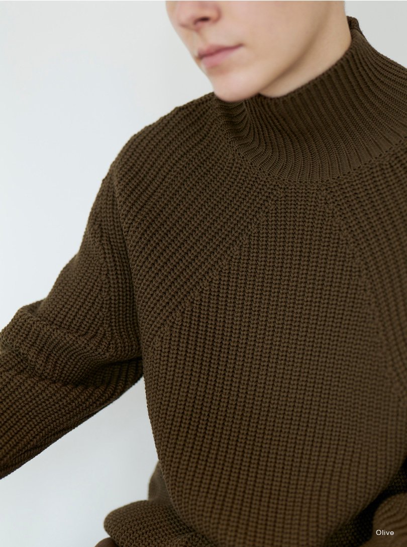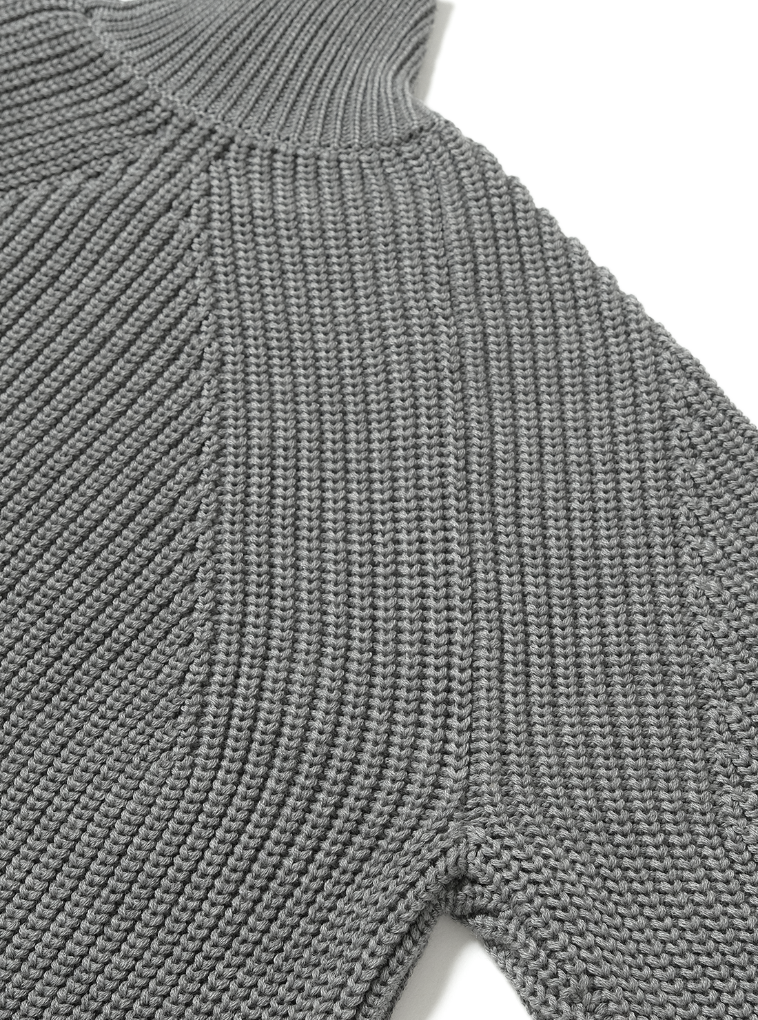 솔리드 울이라는 원사를 사용하여 쉽게 처지지 않고 쉽게 보풀이 생기지 않는 제품입니다. 표준 실루엣, 라글란 소매 디자인입니다.