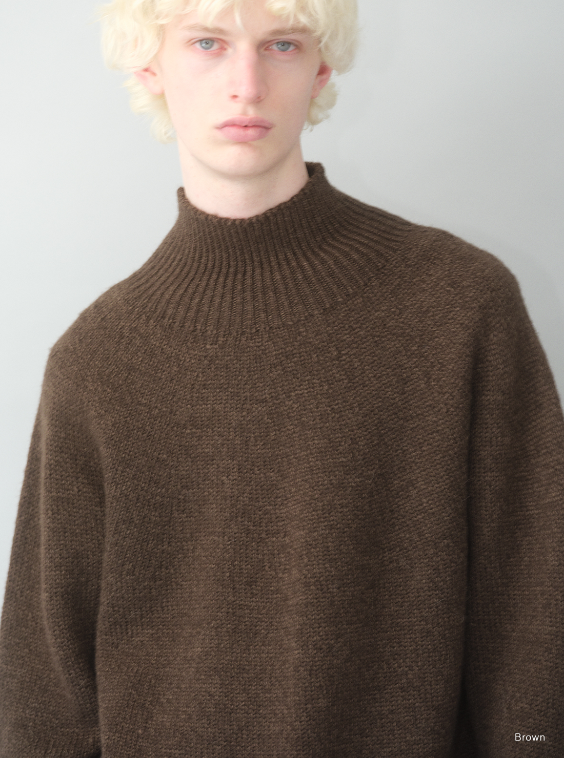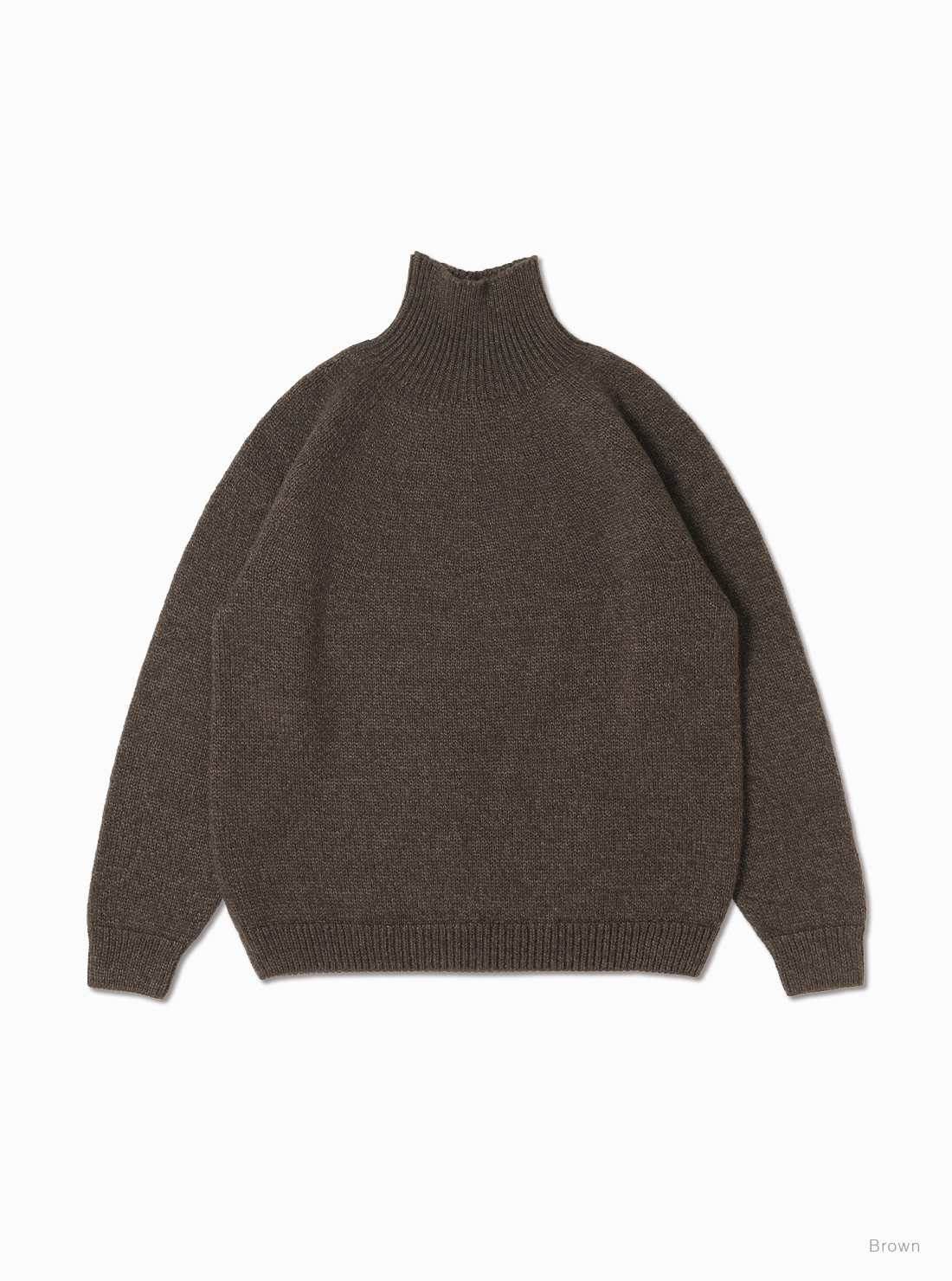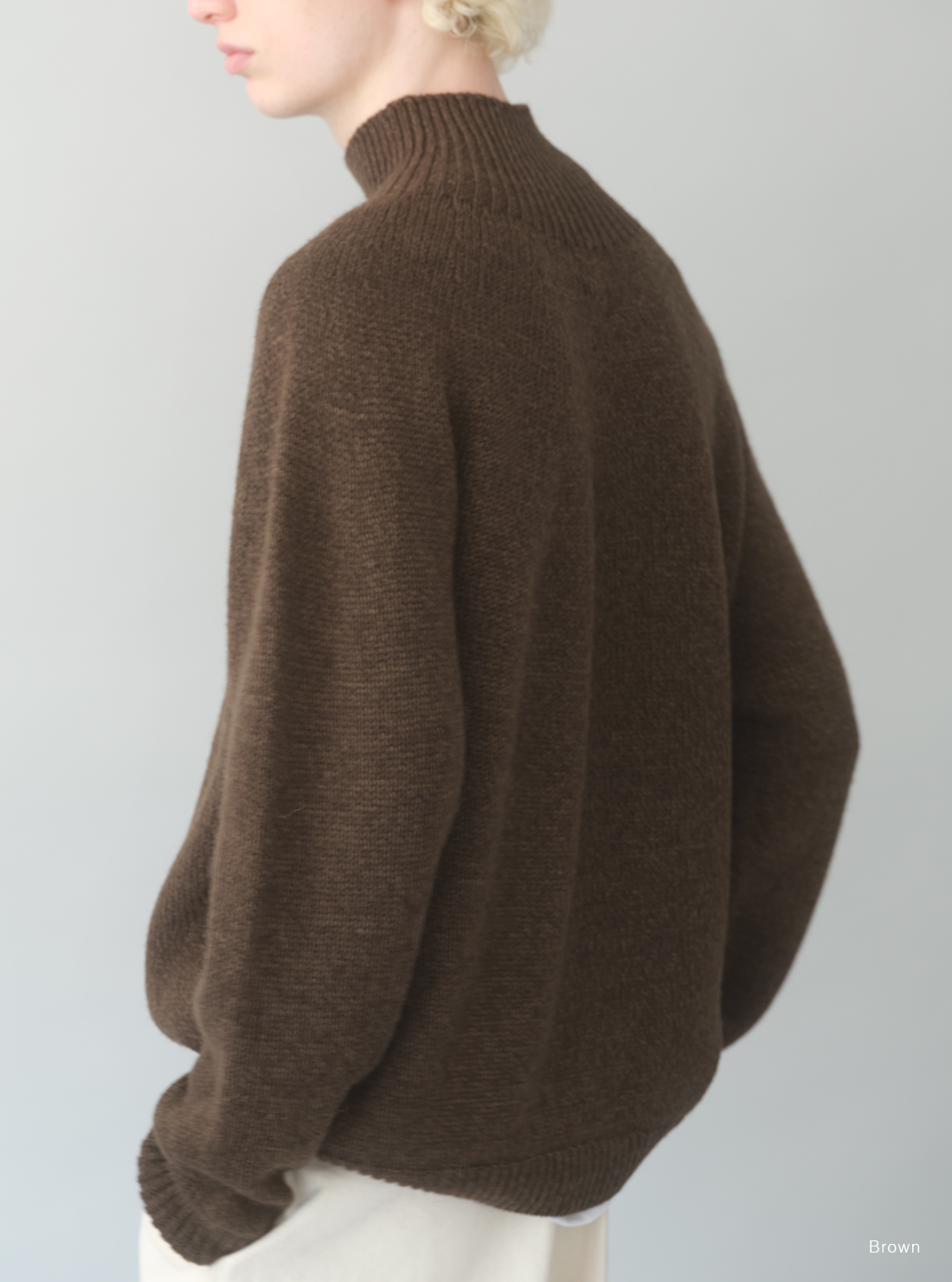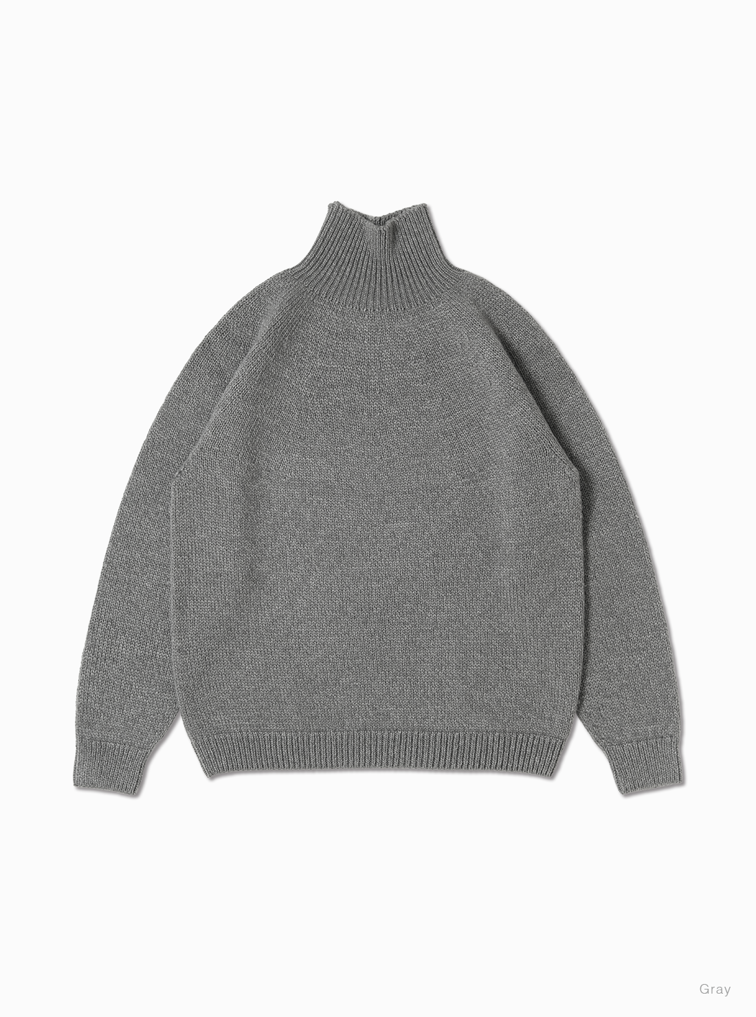 메리노울의 풍부한 볼륨감을 살리기 위해 미들 게이지로 방적한 울사에 부드러운 베이비 알파카와 은은한 윤기의 실크를 합사한 원사를 사용해 편직한 니트입니다.