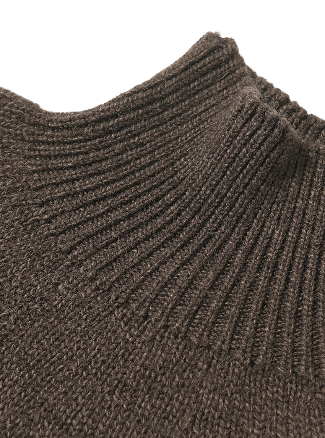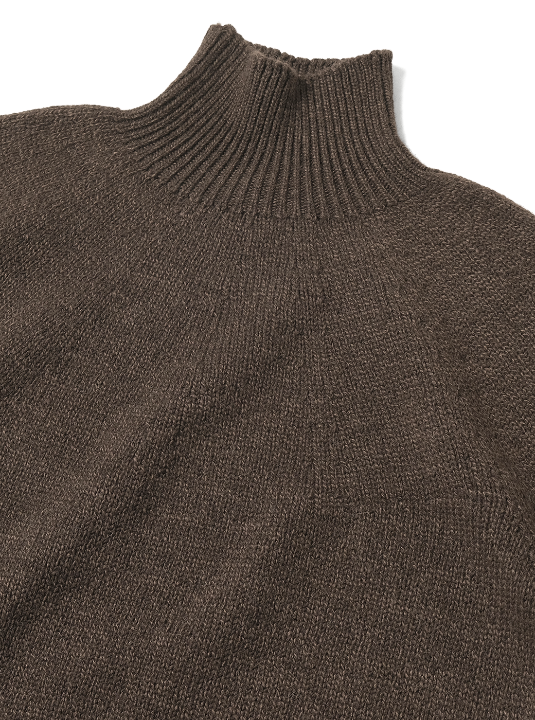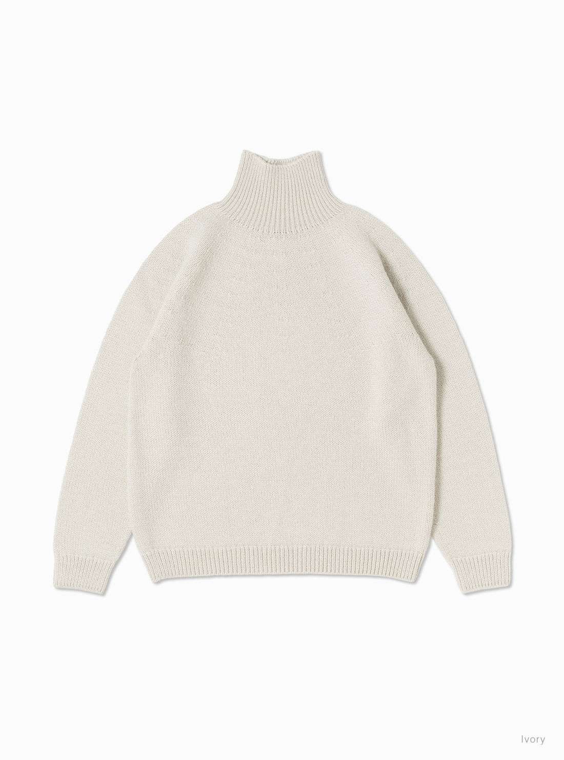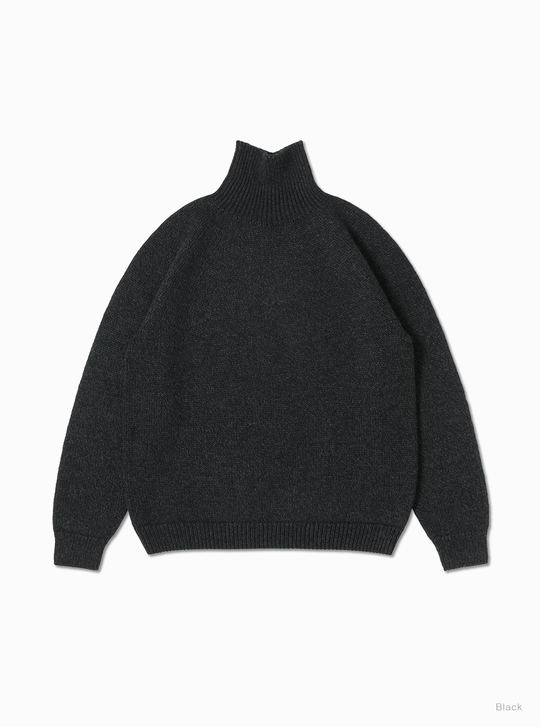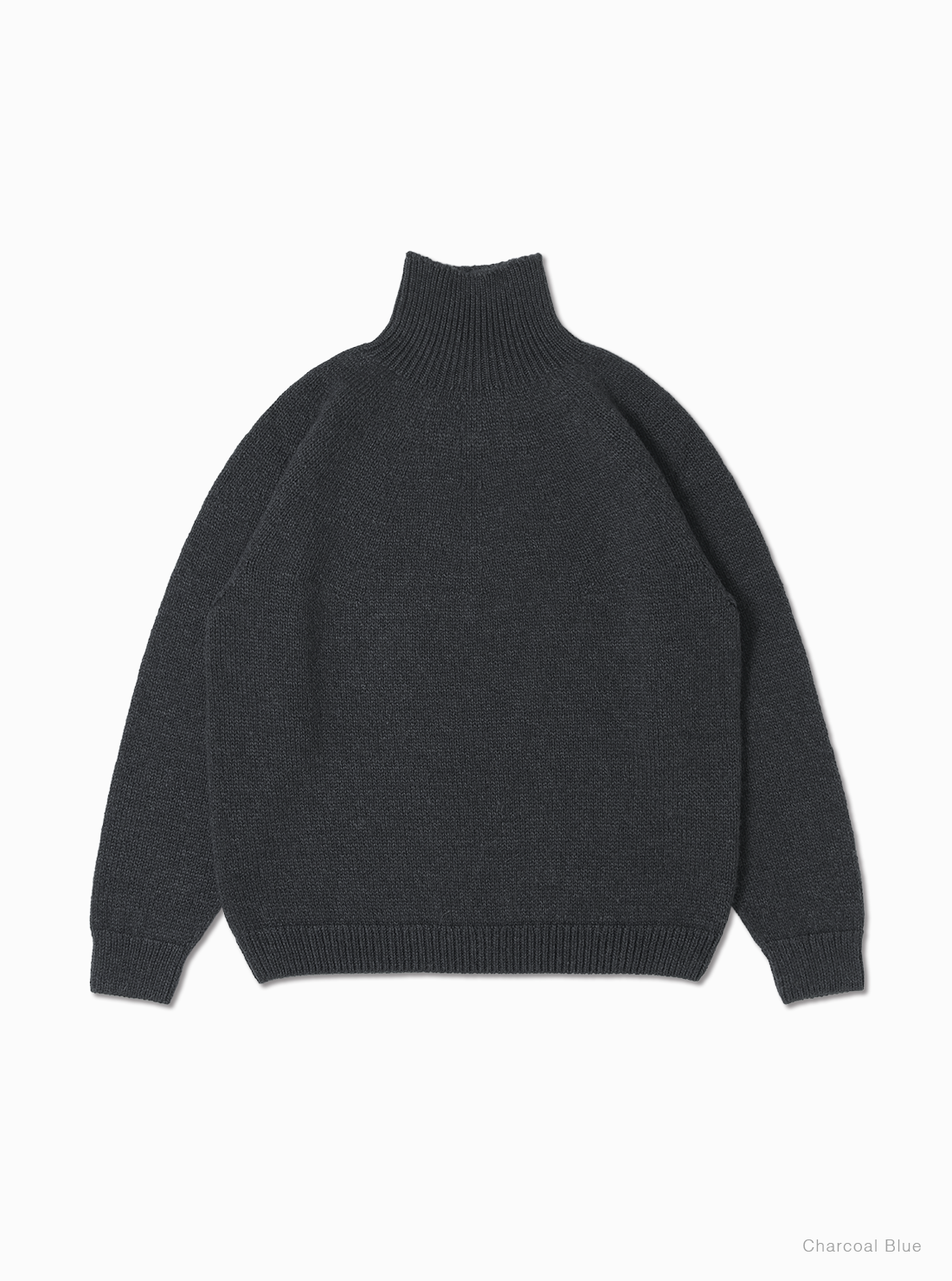 메리노울의 풍부한 볼륨감을 살리기 위해 미들 게이지로 방적한 울사에 부드러운 베이비 알파카와 은은한 윤기의 실크를 합사한 원사를 사용해 편직한 니트입니다.