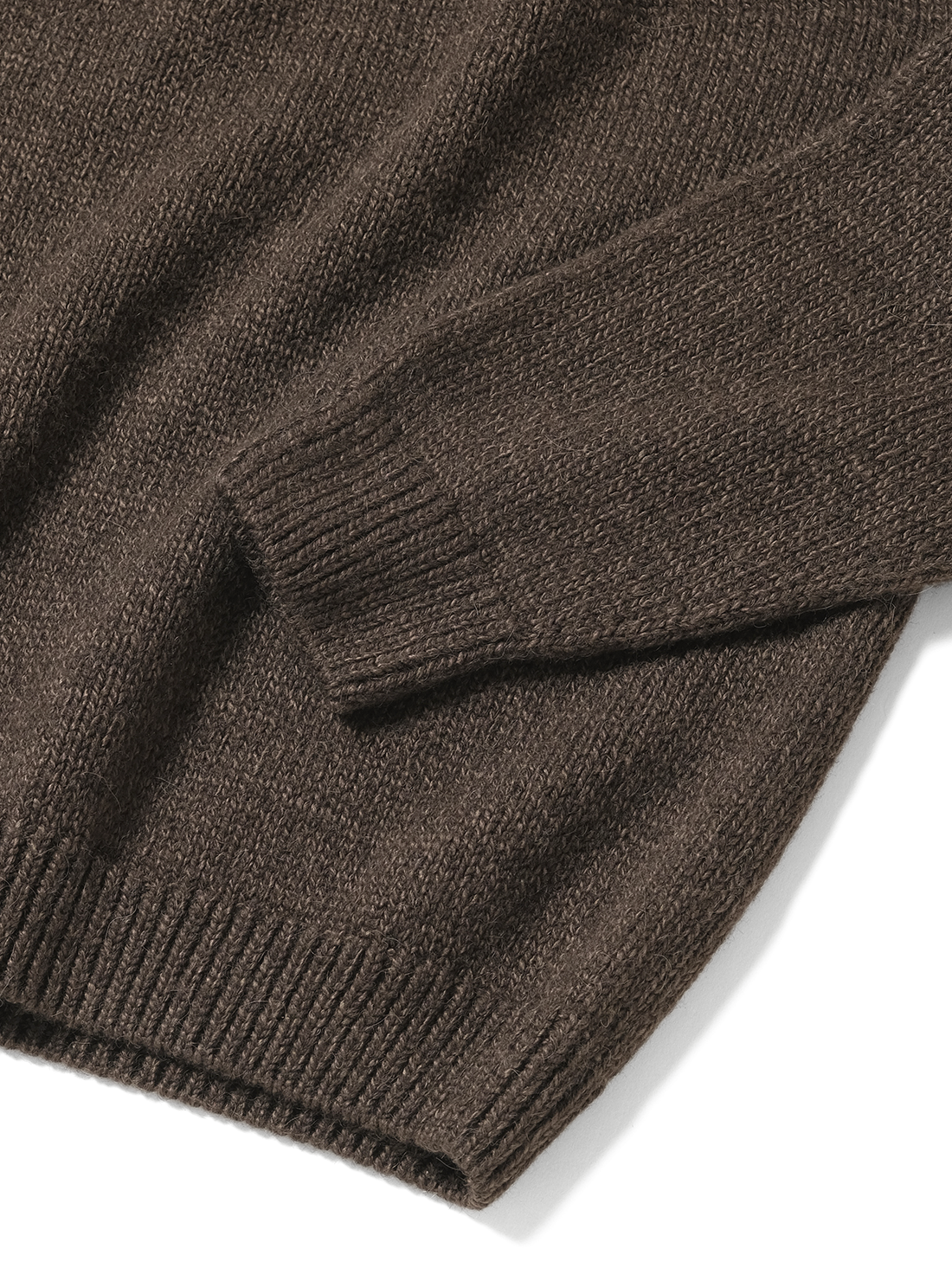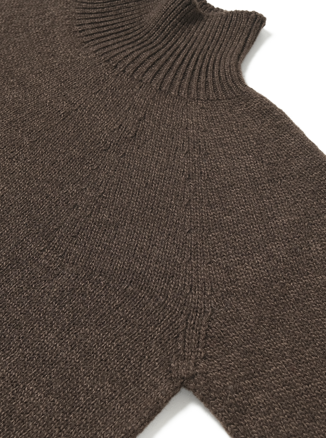 깊이 있는 멜란지 컬러가 특징이며, 몸판을 이어붙임 없이 완전히 시임리스로 제작된 구조가 포인트입니다.