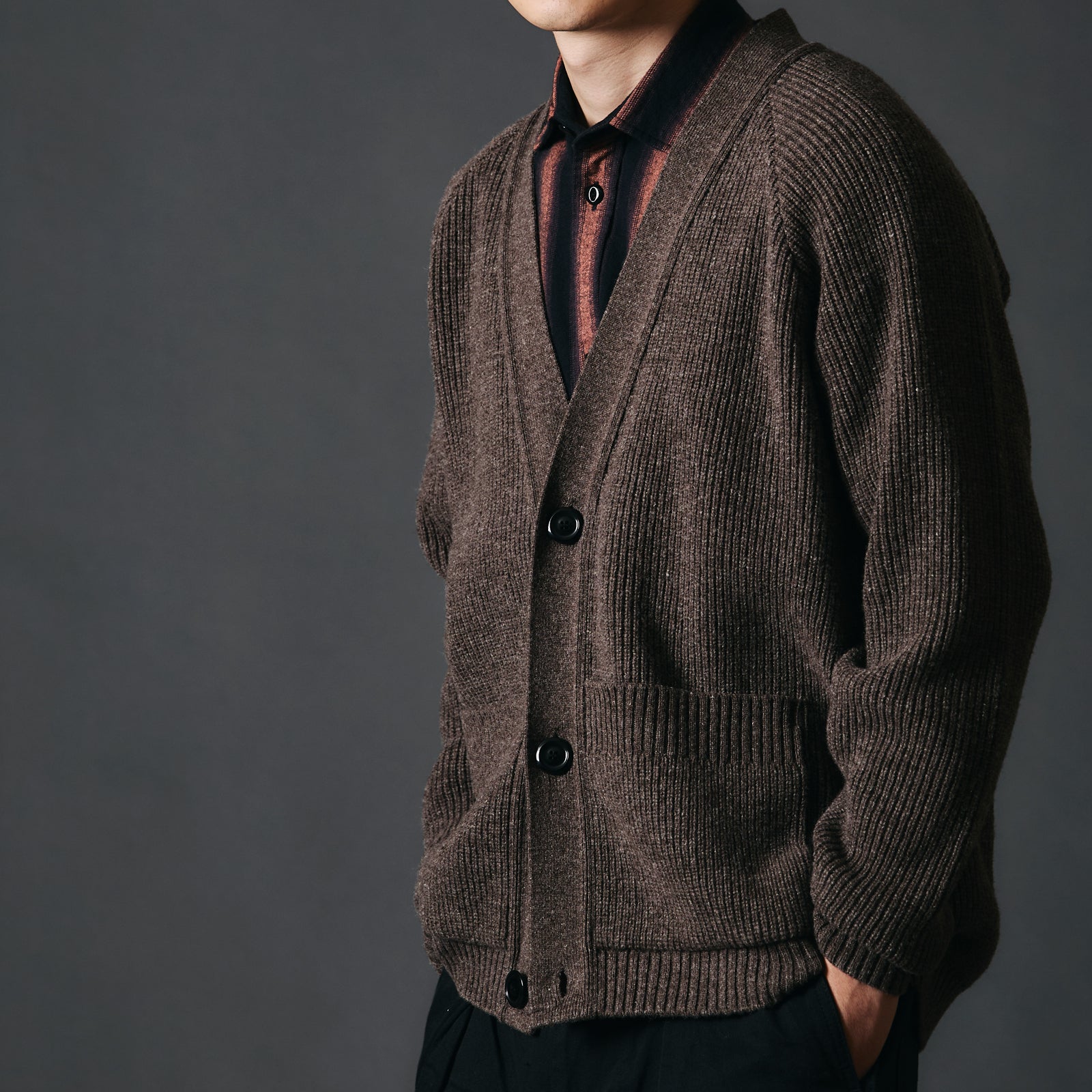 부드럽고 편안한 질감의 니트 가디건. 로우게이지에서 미들게이지 사이의 두께감이며 넥라인을 깊게 디자인 했습니다. 여유로운 실루엣으로 편안하게 입기 좋습니다. 편아게와 축융 가공으로 입체적이고 포근한 질감입니다.