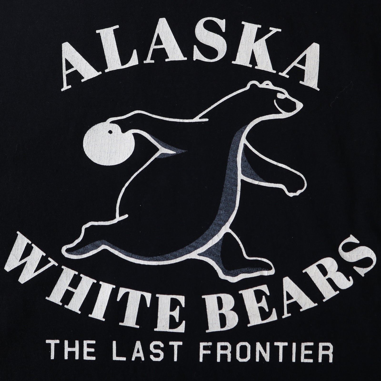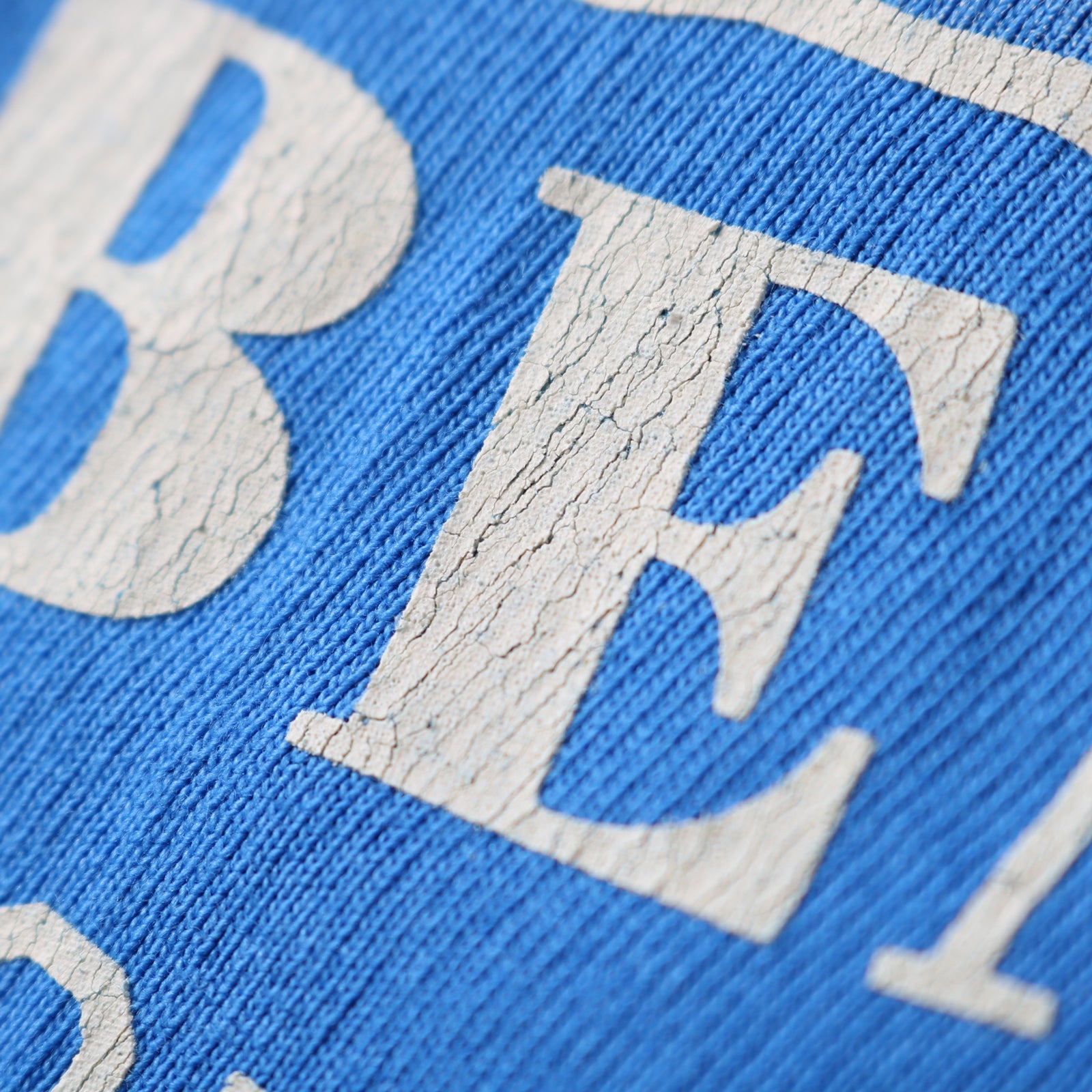 앞면 프린팅은 색상에 따라 가공되어 화이트는 워시드 프린트, 블랙과 블루는 크랙 가공 프린트입니다.