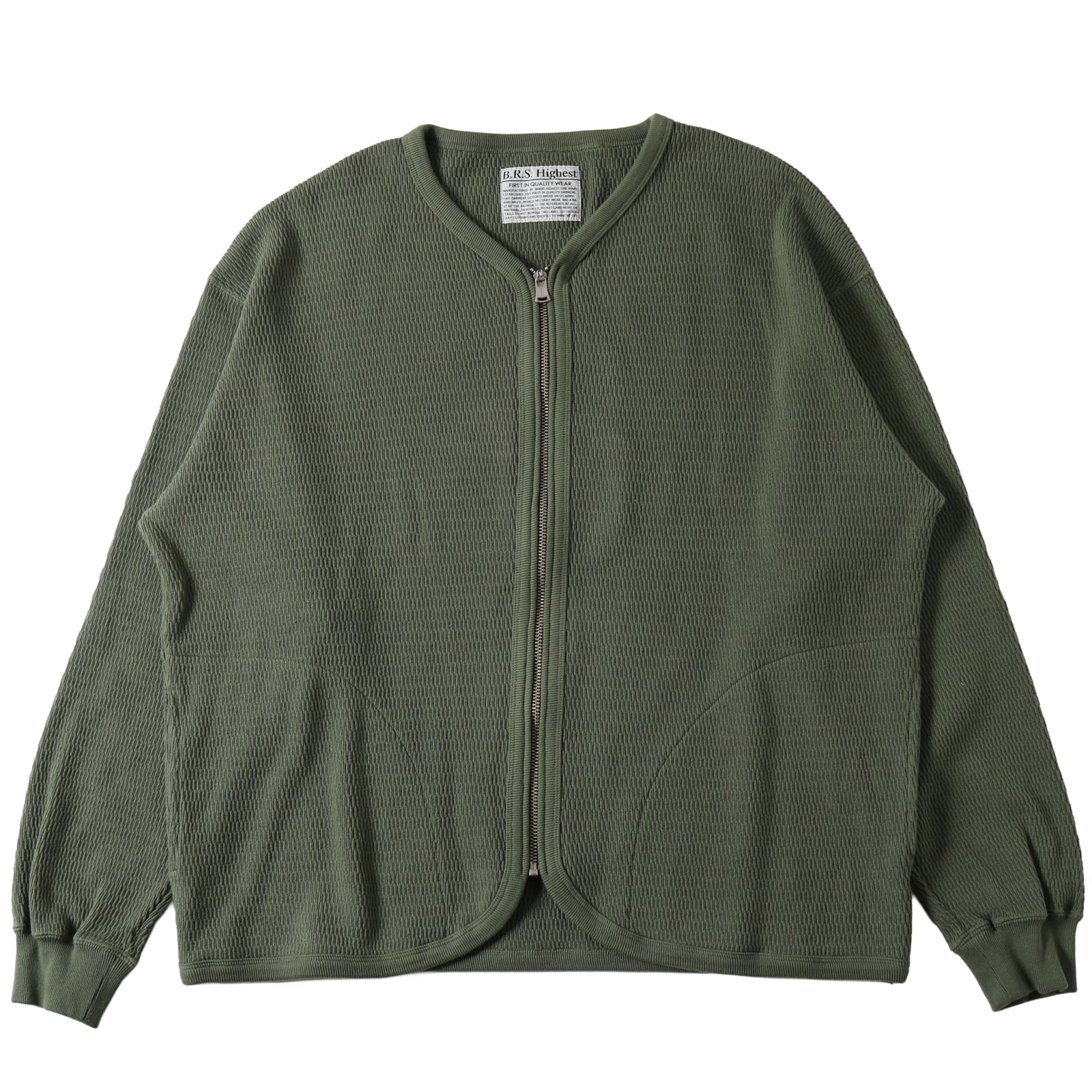 올록볼록한 질감의 써멀 소재로 보온성이 뛰어난 가디건입니다. 앞면 지퍼 플라켓과 넥 라인에 바인더 마감으로 과하지 않은 브이넥 디자인입니다.