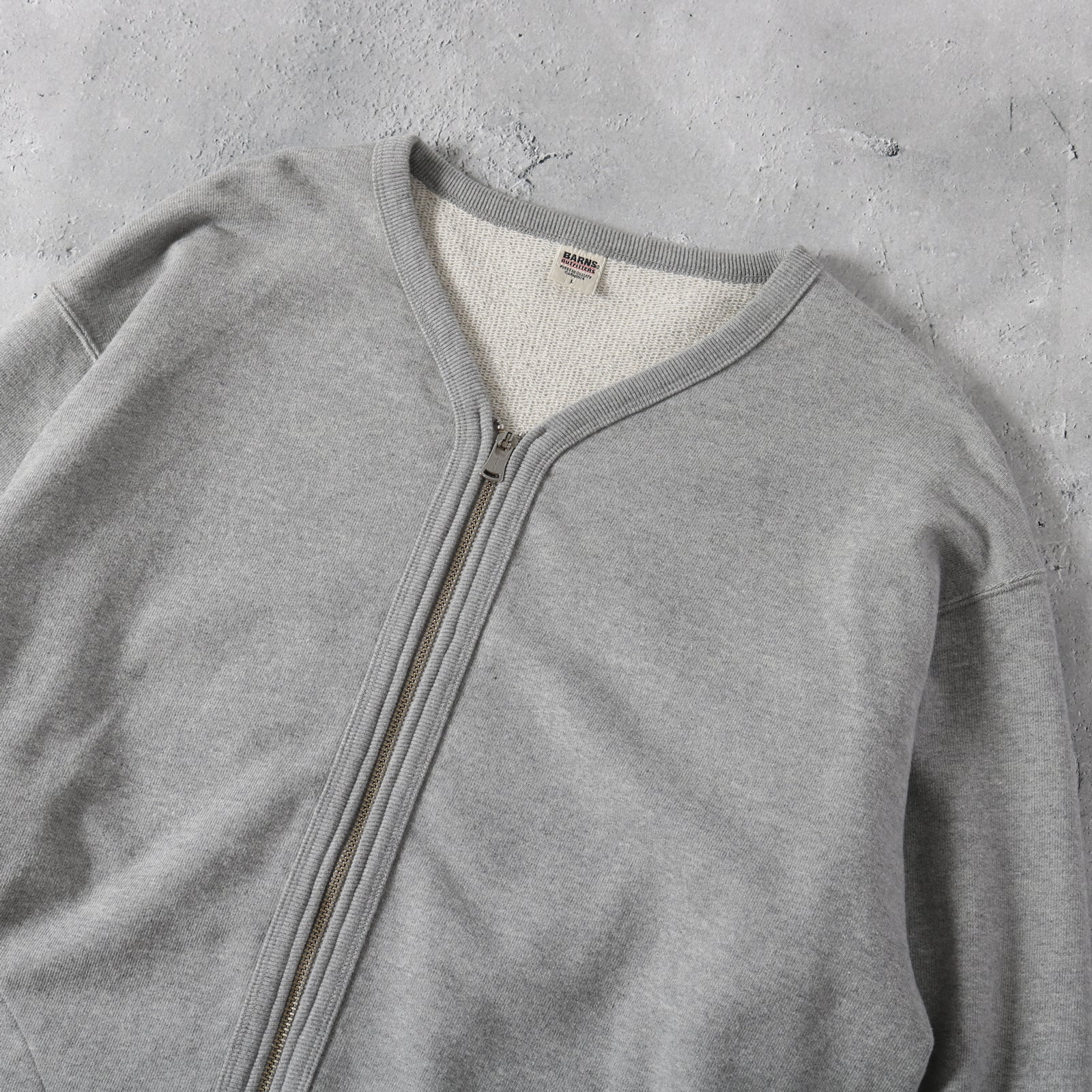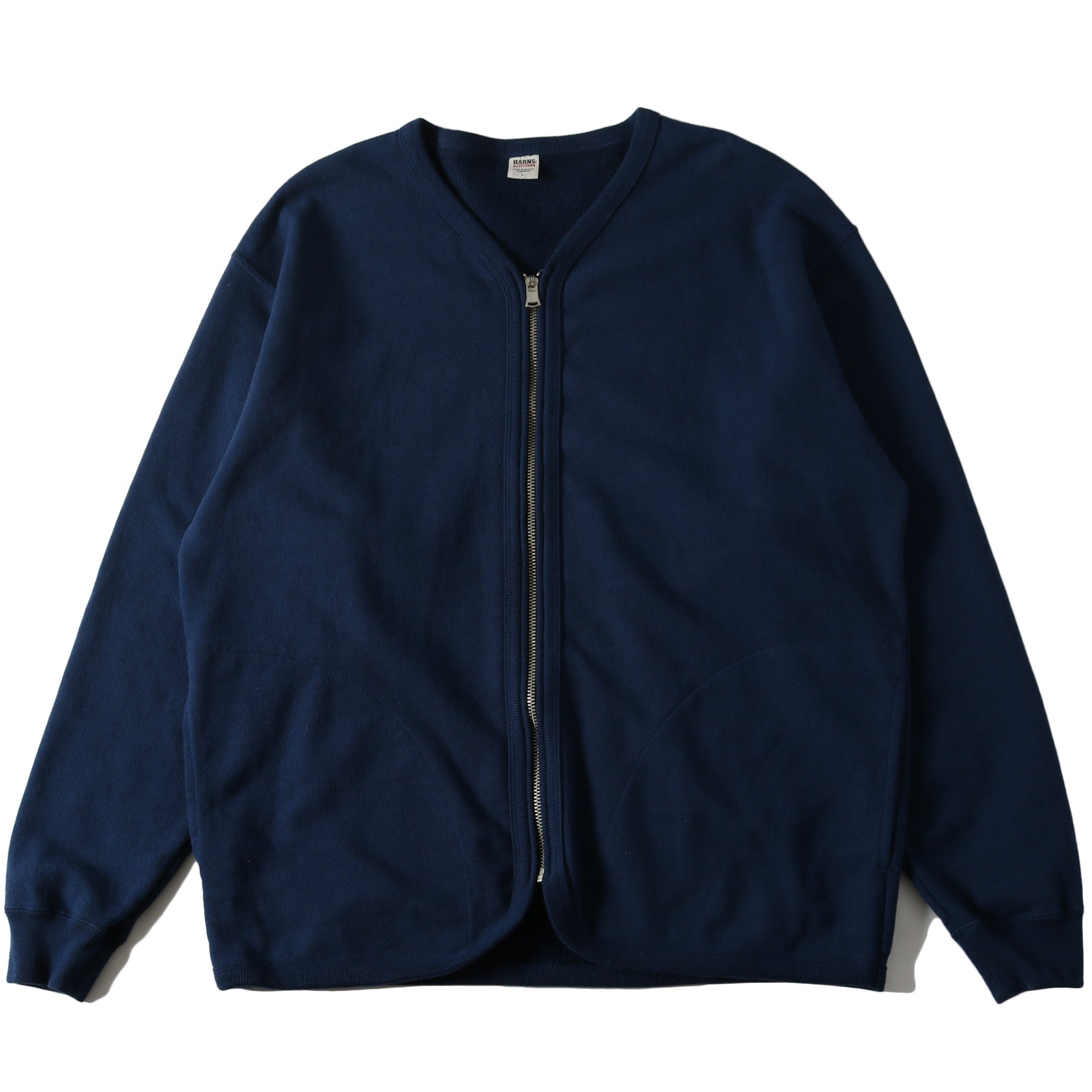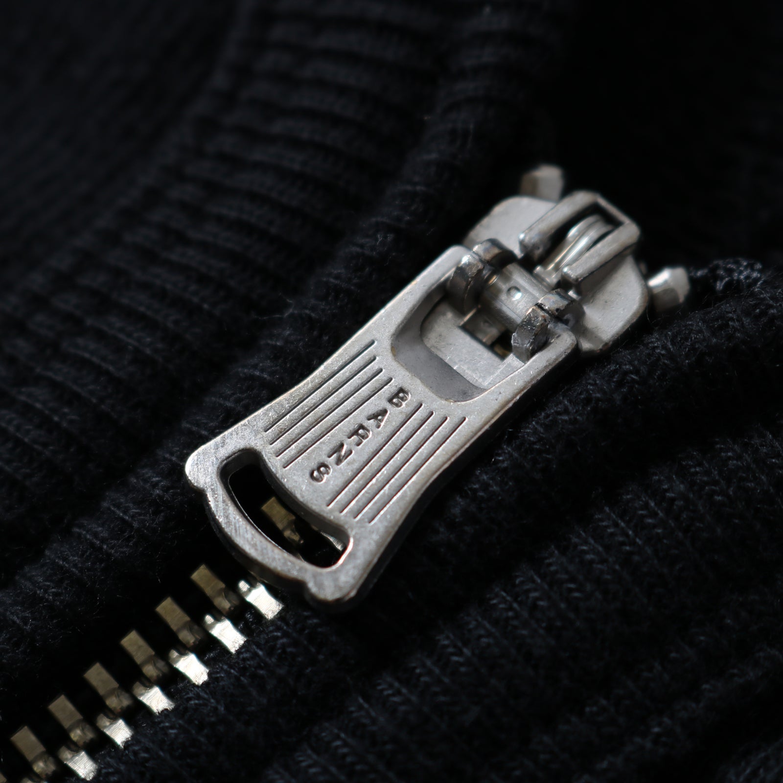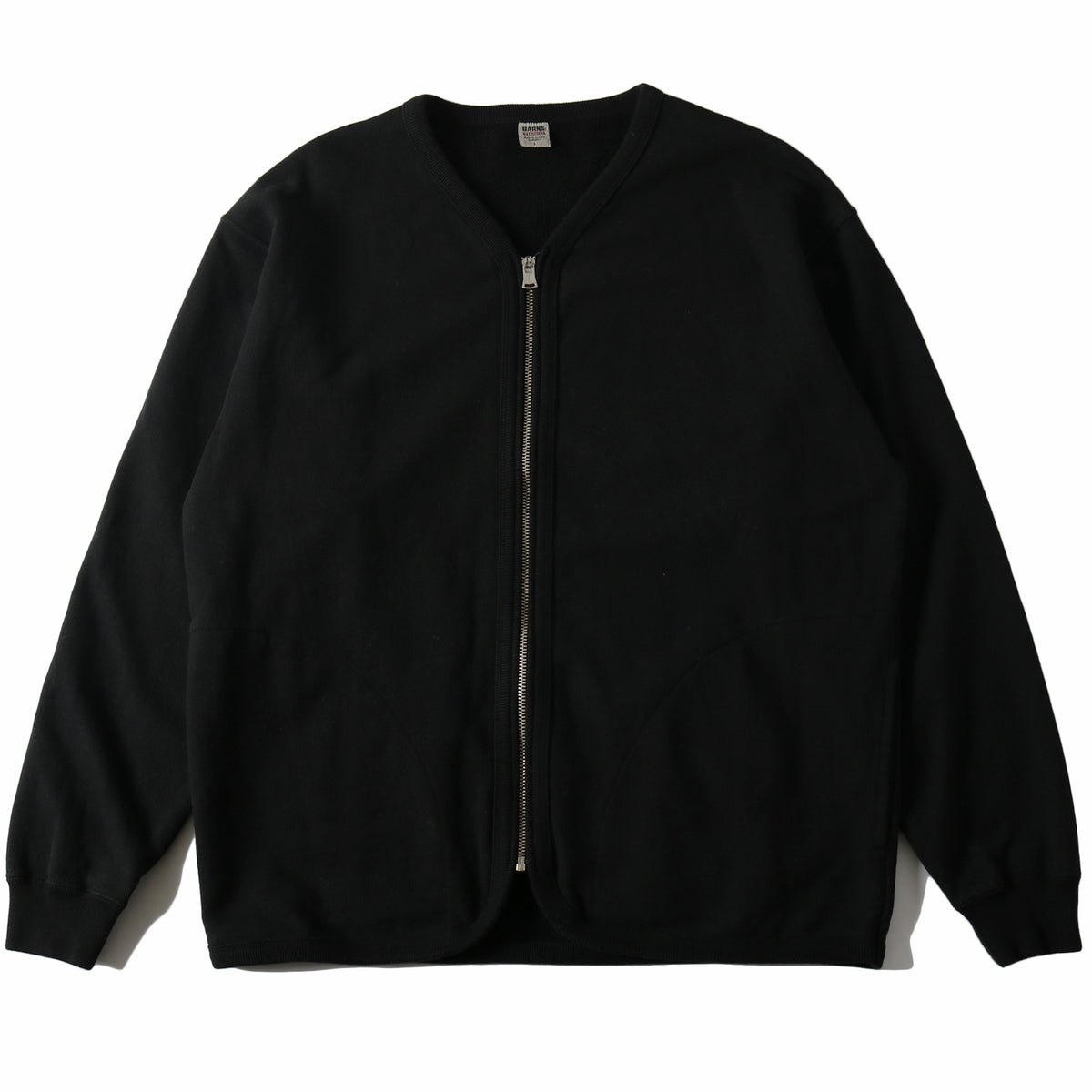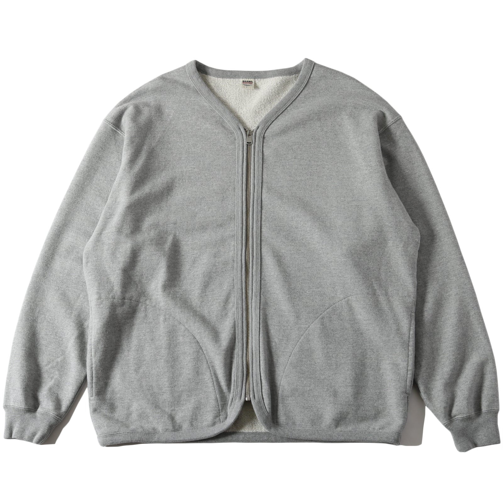 풀지퍼 디자인의 브이넥 가디건. 전면부터 옷깃에 걸쳐 바인더 리브 사양입니다.