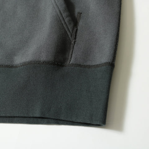 공기가 들어있는 부드러운 천을 적당한 속도와 탄력을 유지하면서 편직할 수 있는 프리미엄 편직 기계가 만들어내는 독특한 탄력이 있는 스웨트 파카. 사이드에 봉제가 없는 라운드 바디 사양입니다.