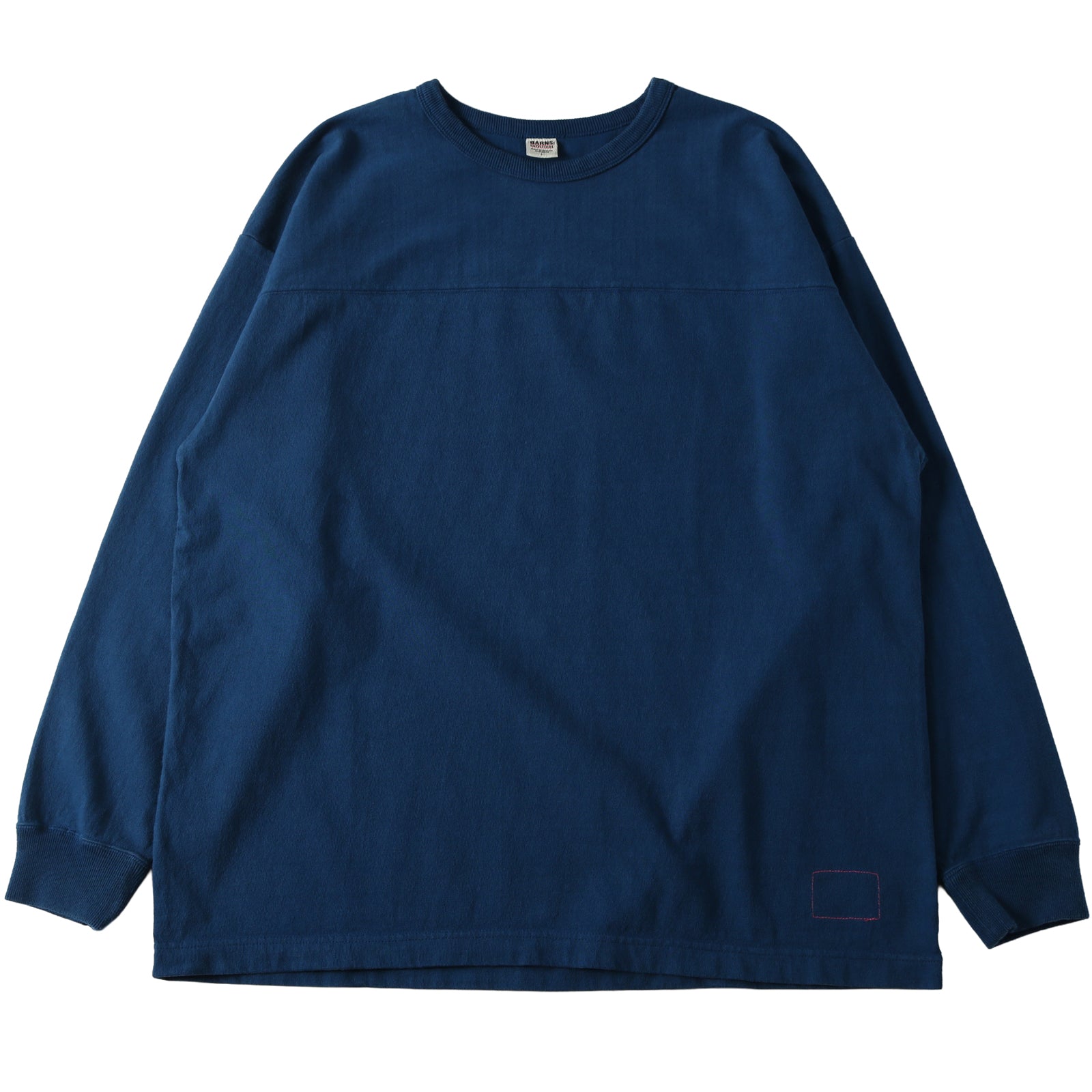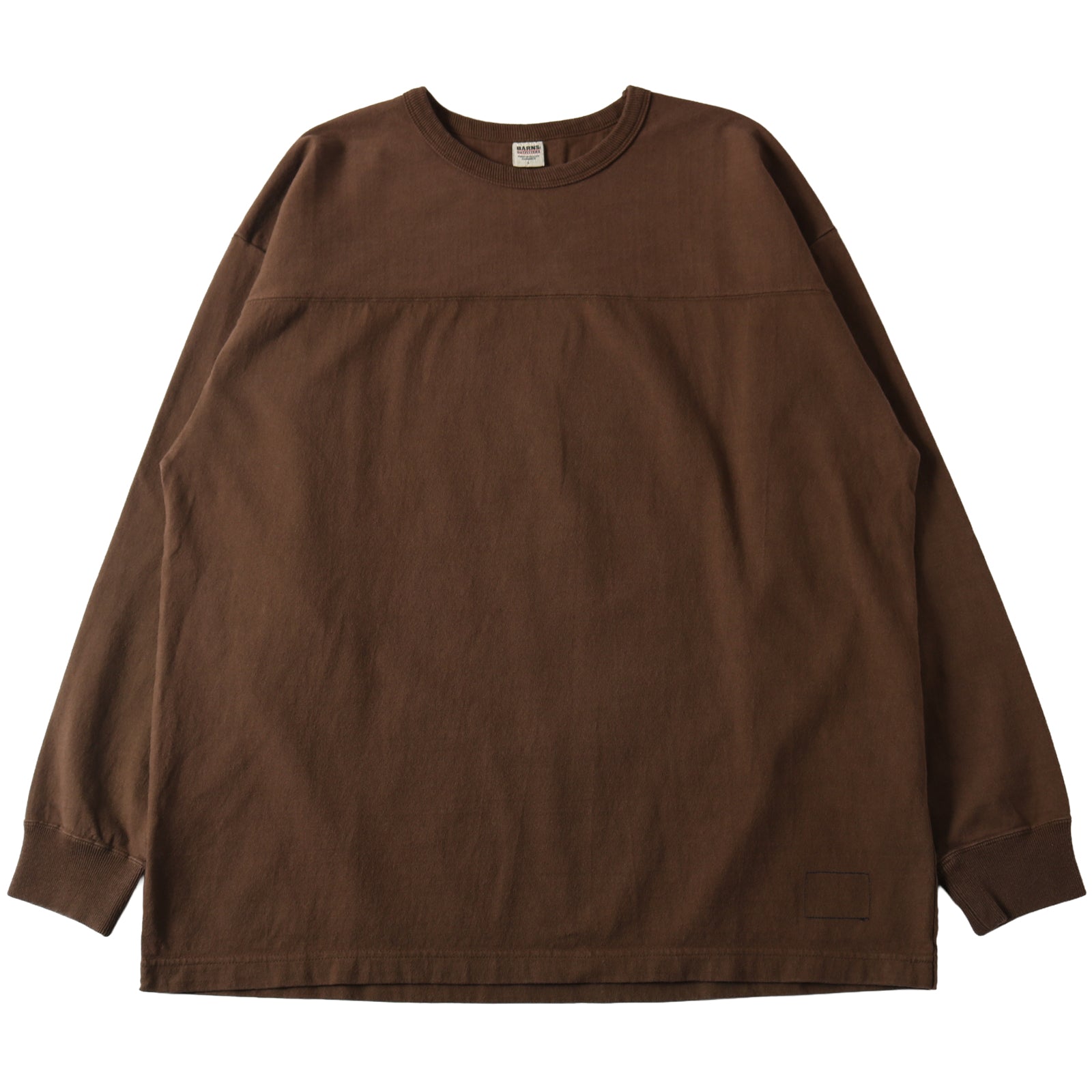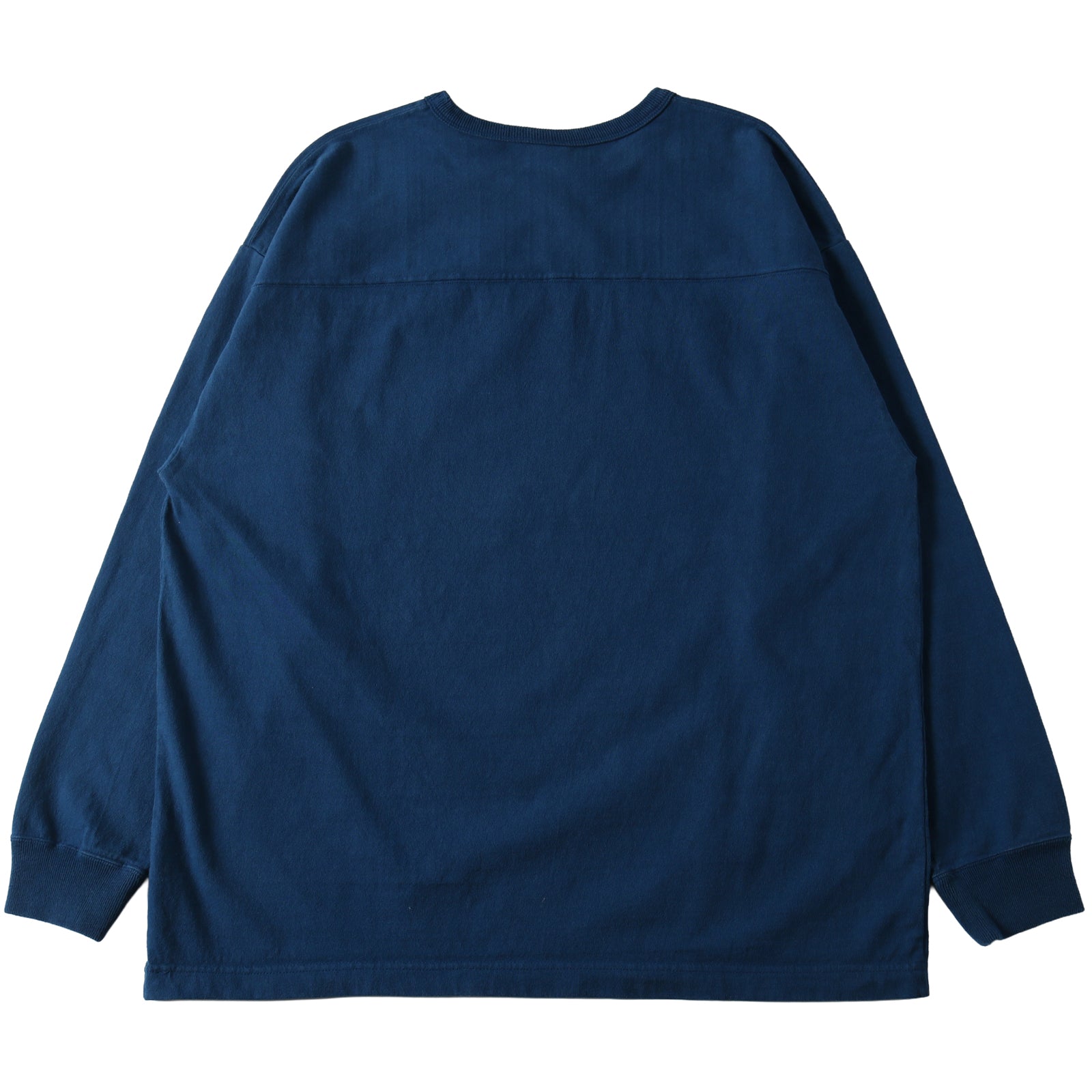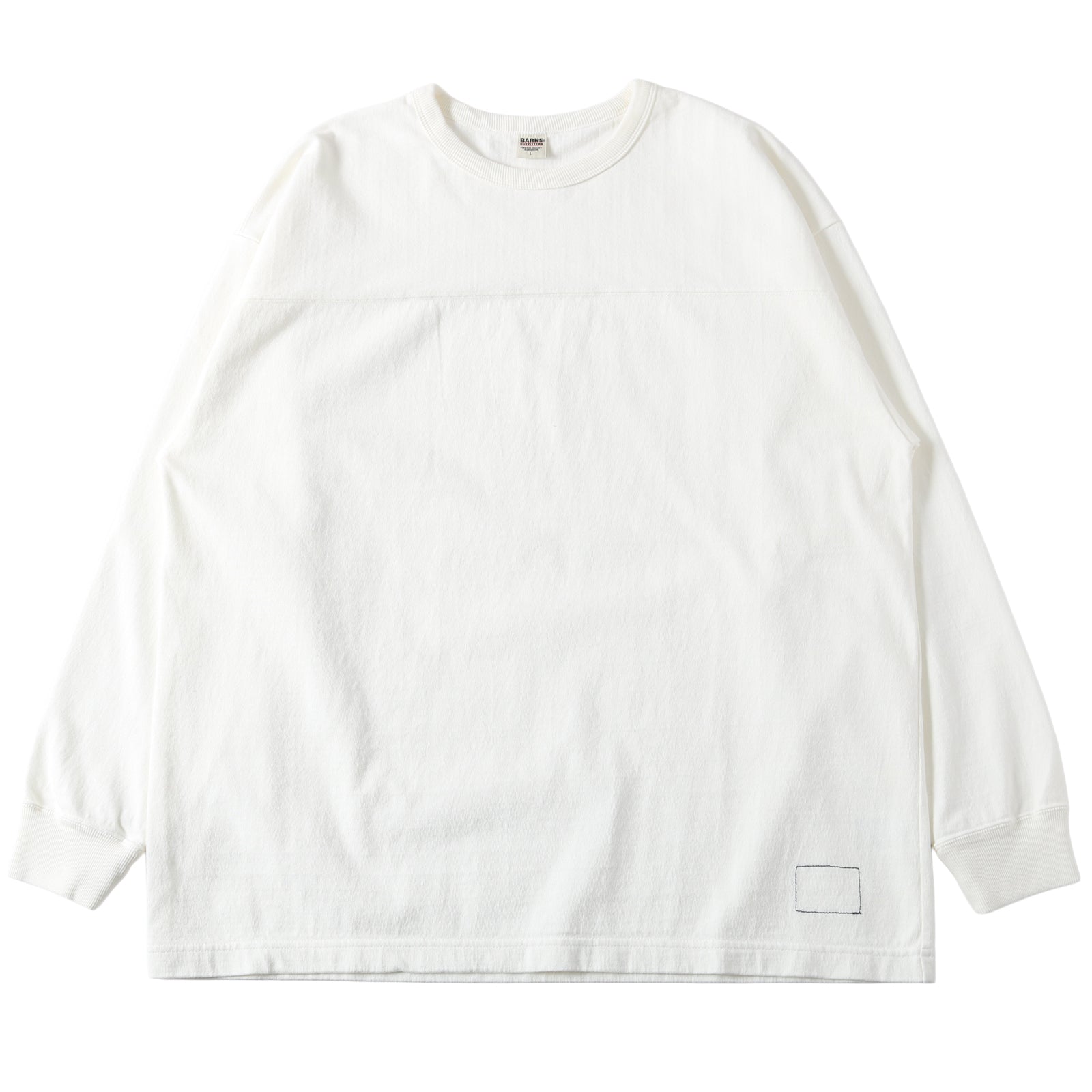 여유 있는 실루엣과 넓은 암홀로 착용감이 편안한 티. 일반 풋볼 티셔츠에서는 보기 힘든 소매 리브 디테일을 더해 간절기에도 입기 좋은 구조로 완성했습니다. 빈티지 풋볼T의 스티치만 남은 라벨 자국을 재현하여, 컬러별로 다른 스티치가 포인트로 작용합니다.